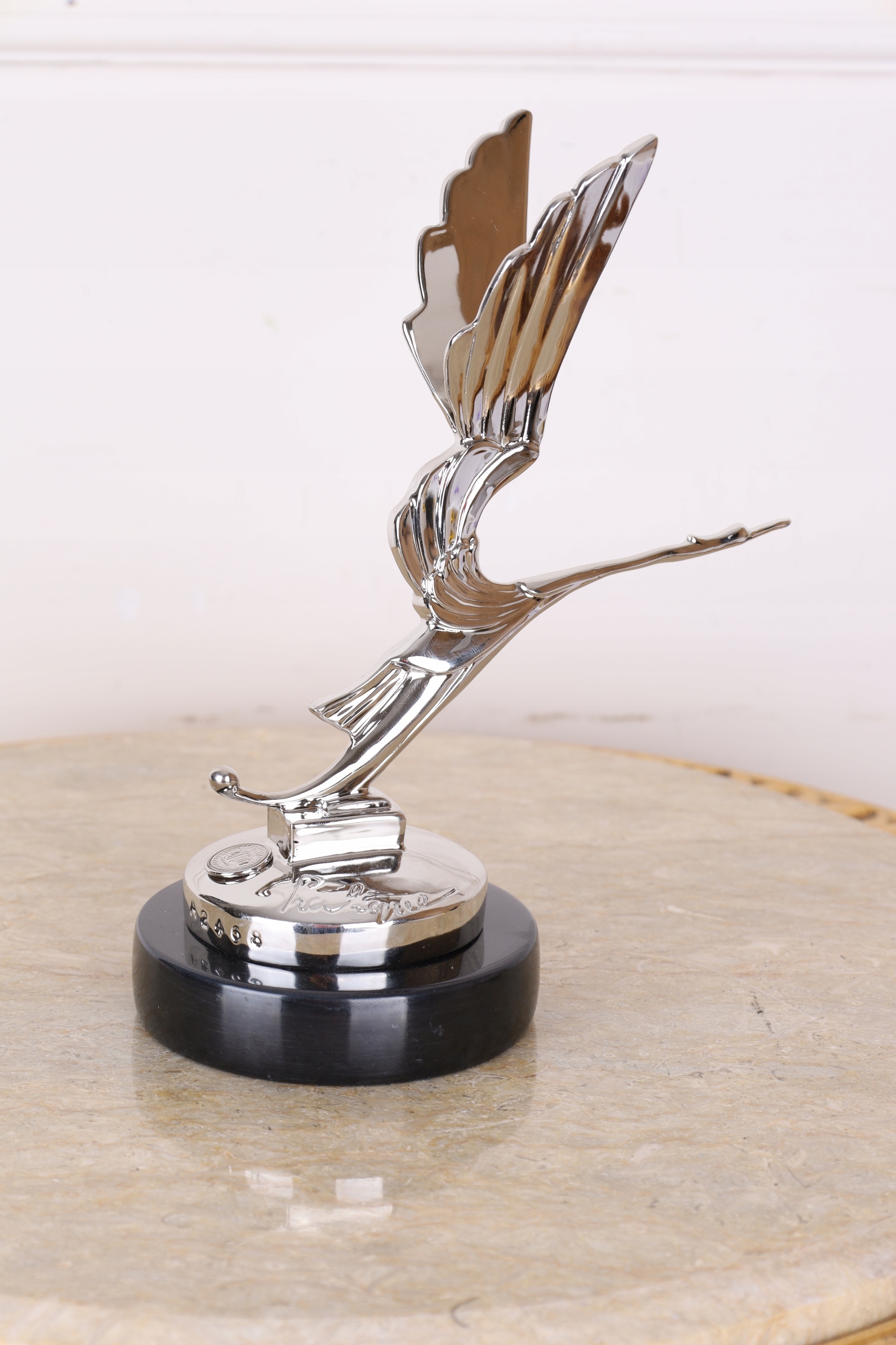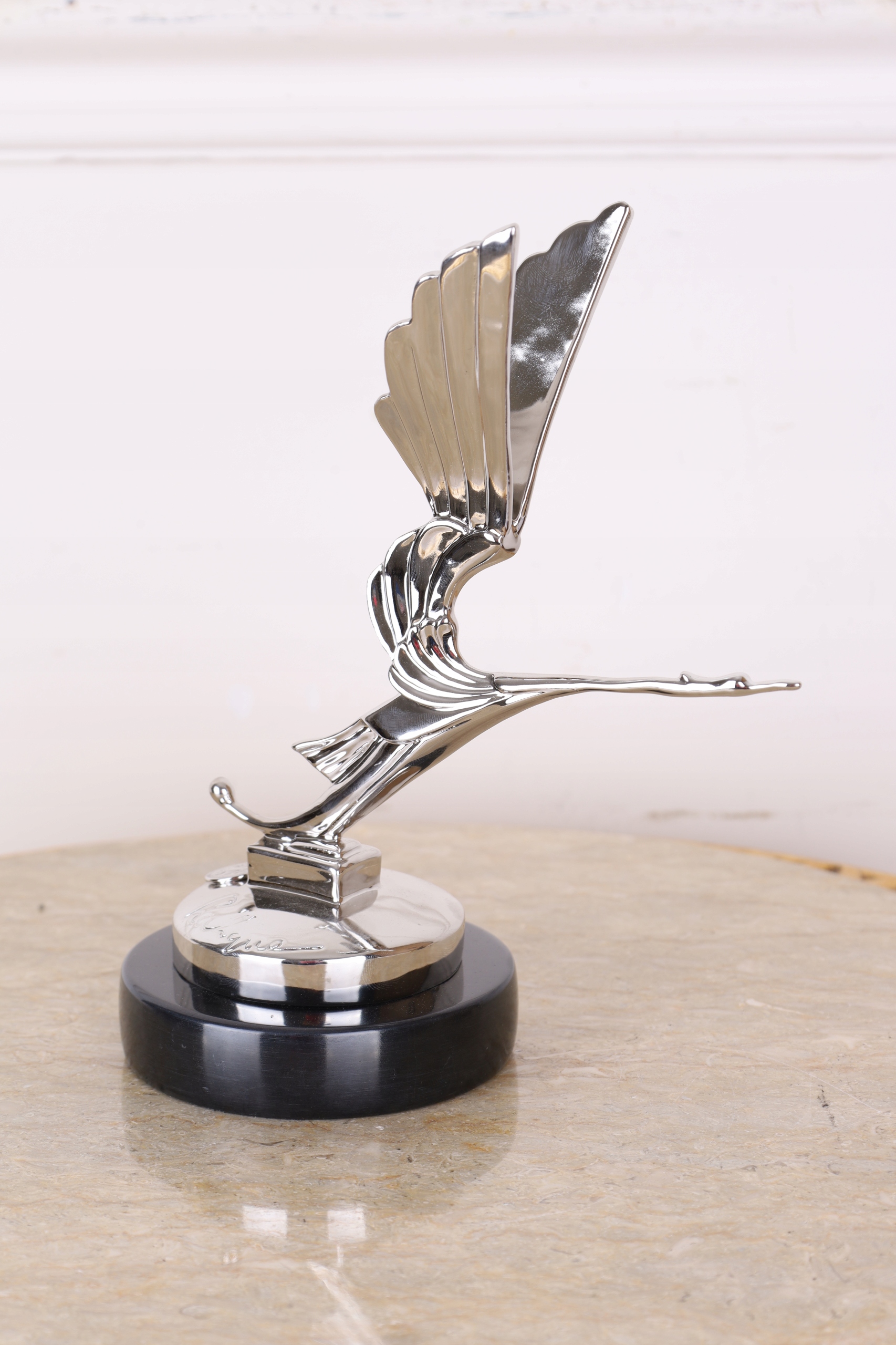 BOCIAN W LOCIE -FIGURKA z brązu SREBRNY
