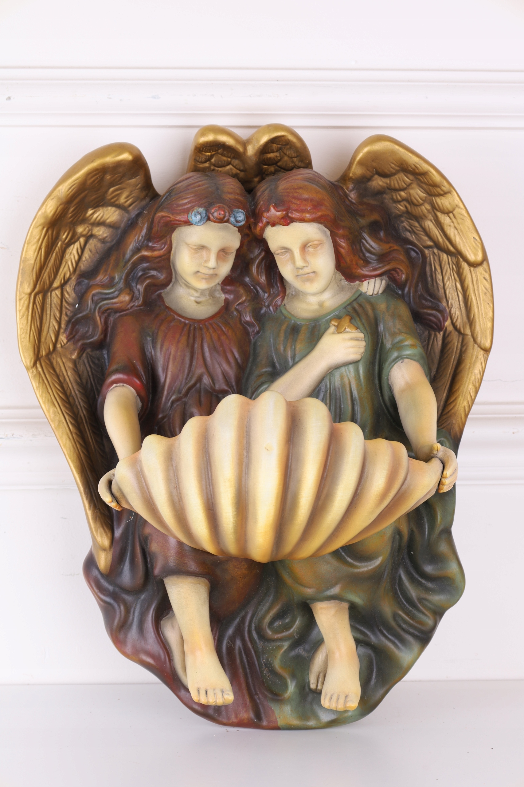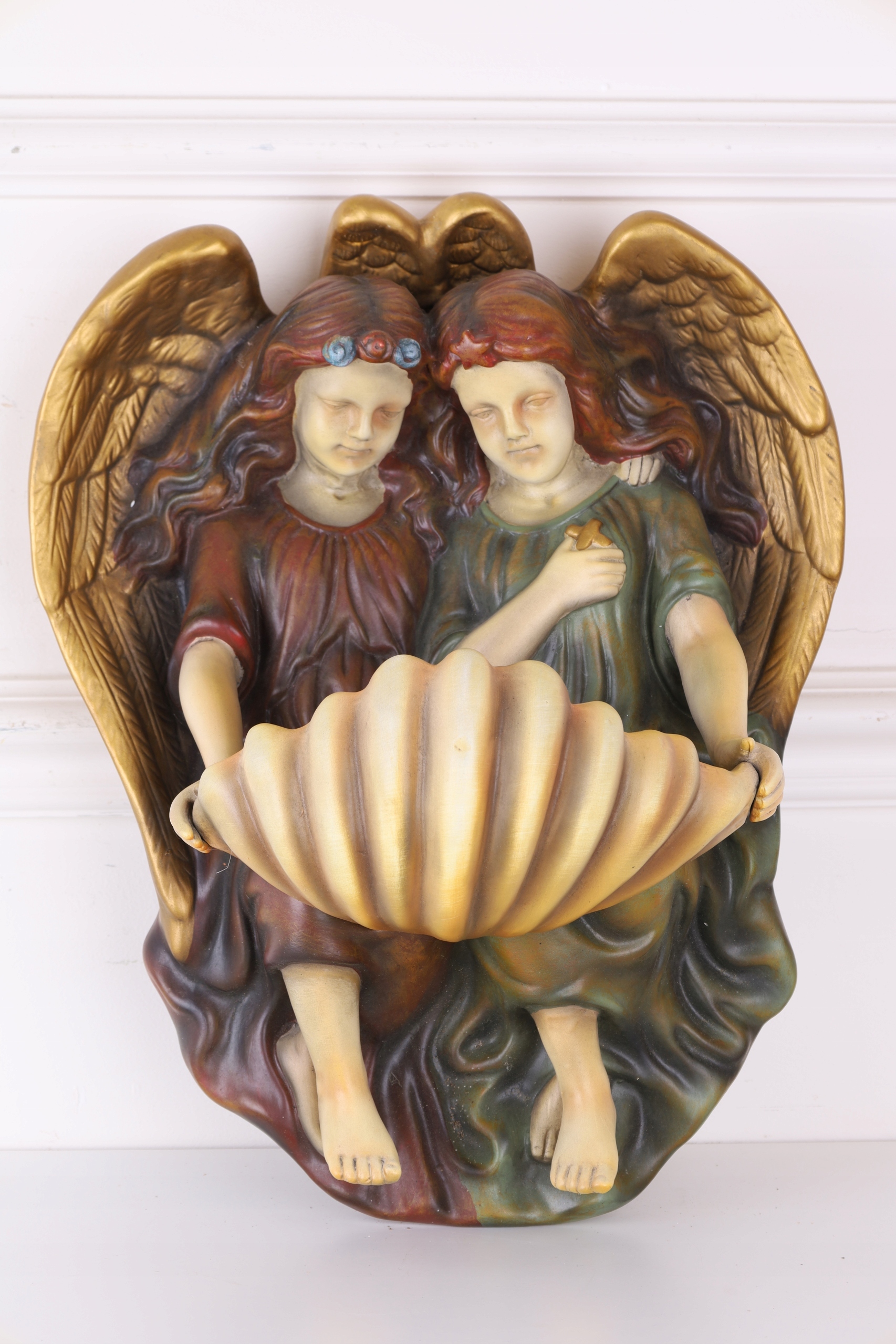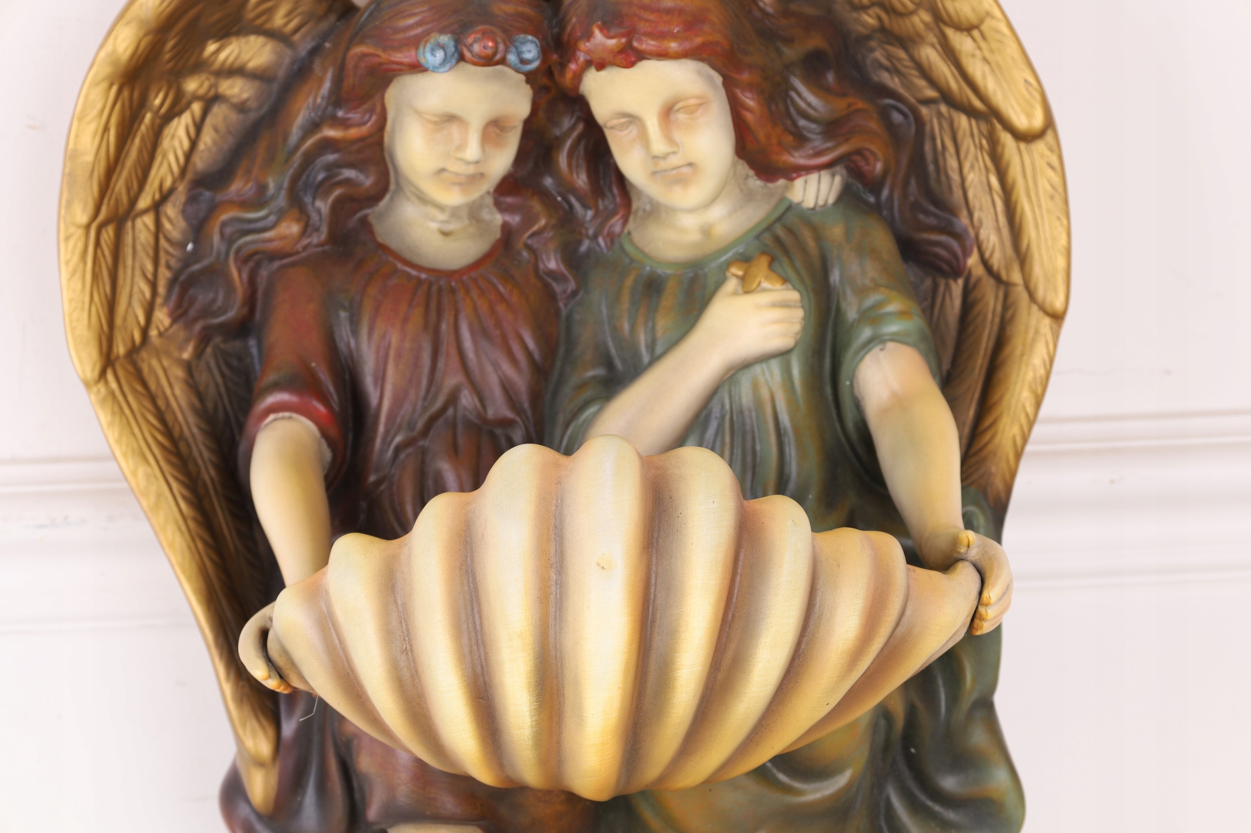 Ceramiczna KROPIELNICA Z ANIOŁKAMI Piękna Malowana