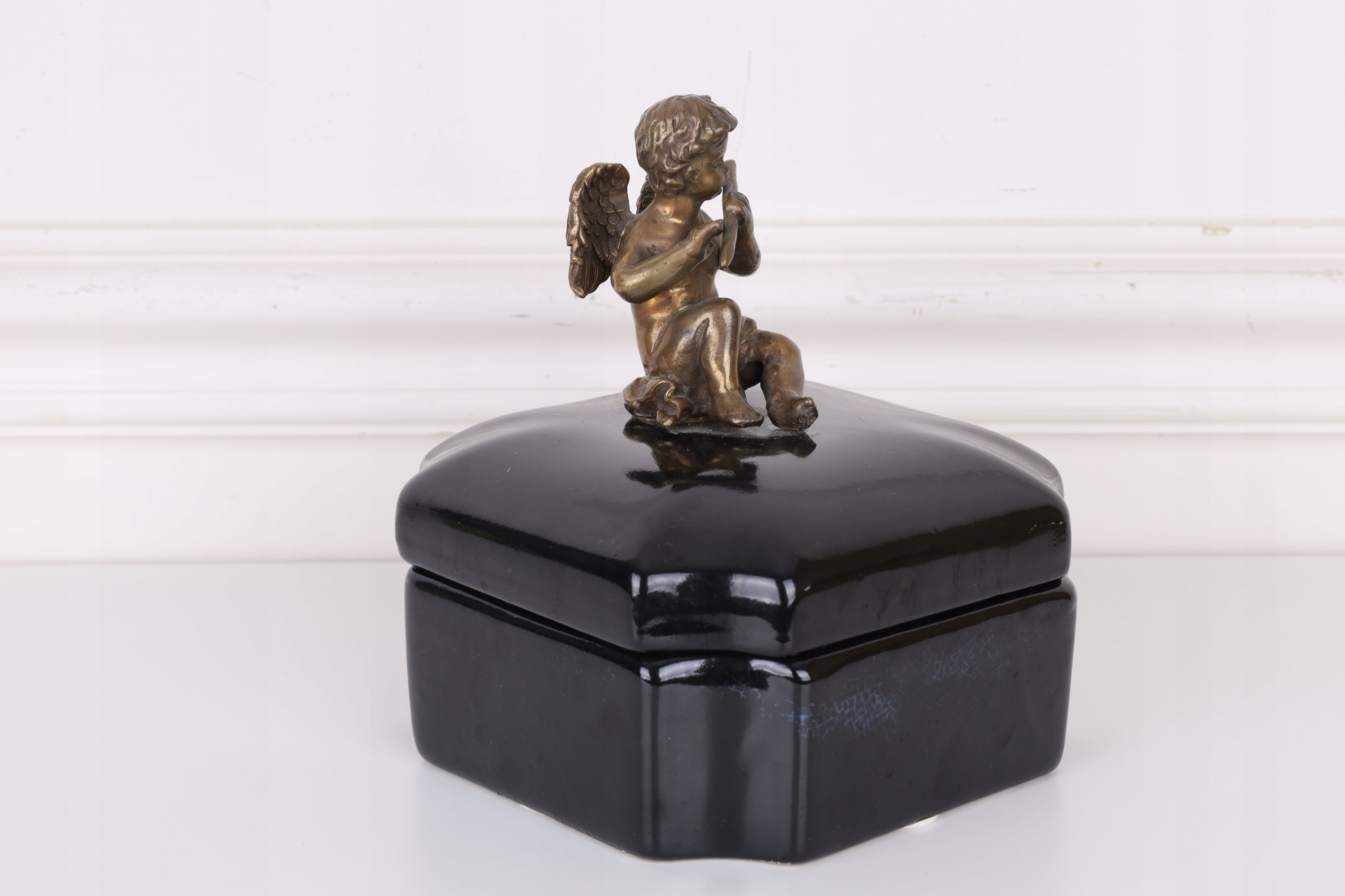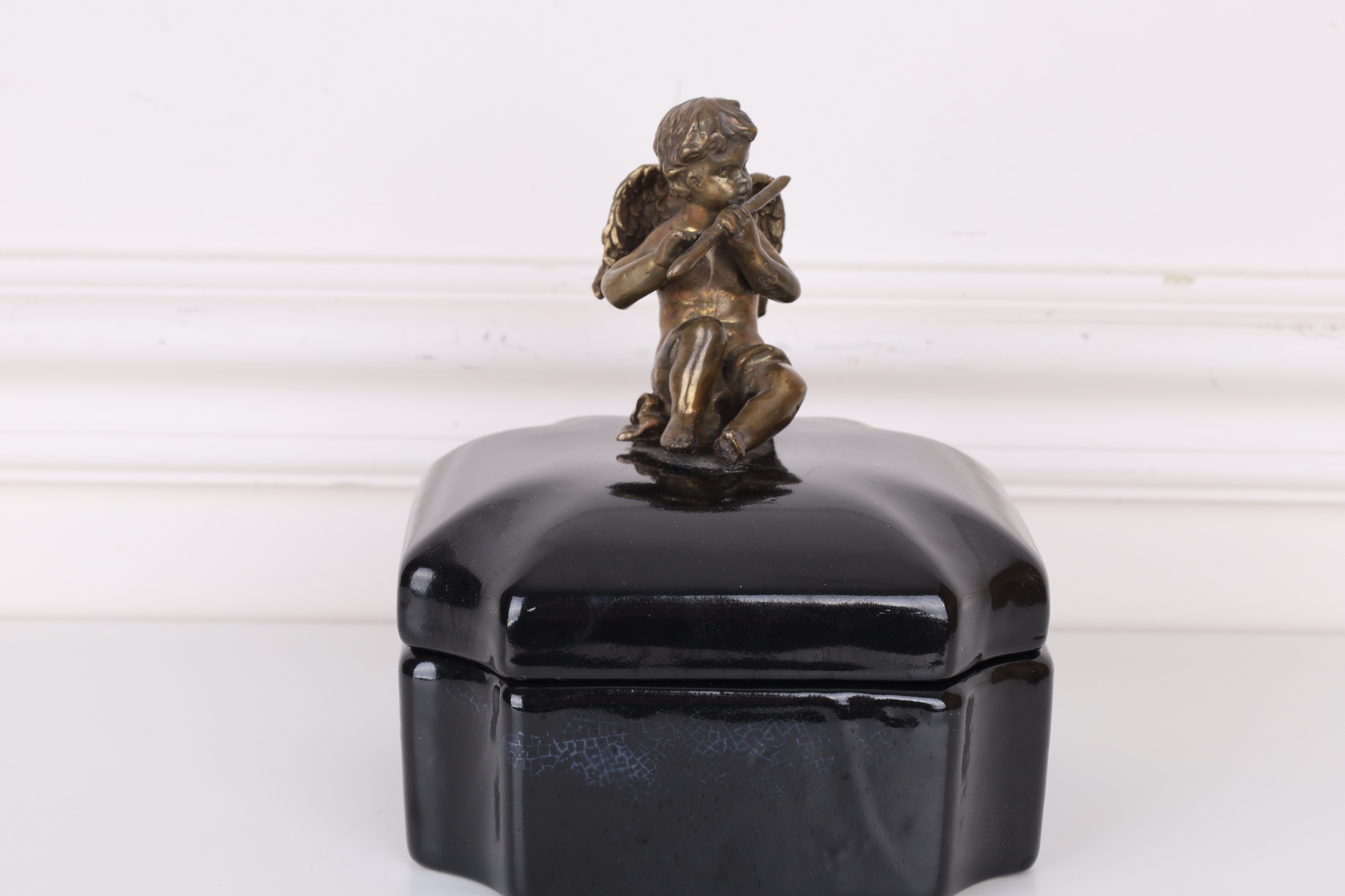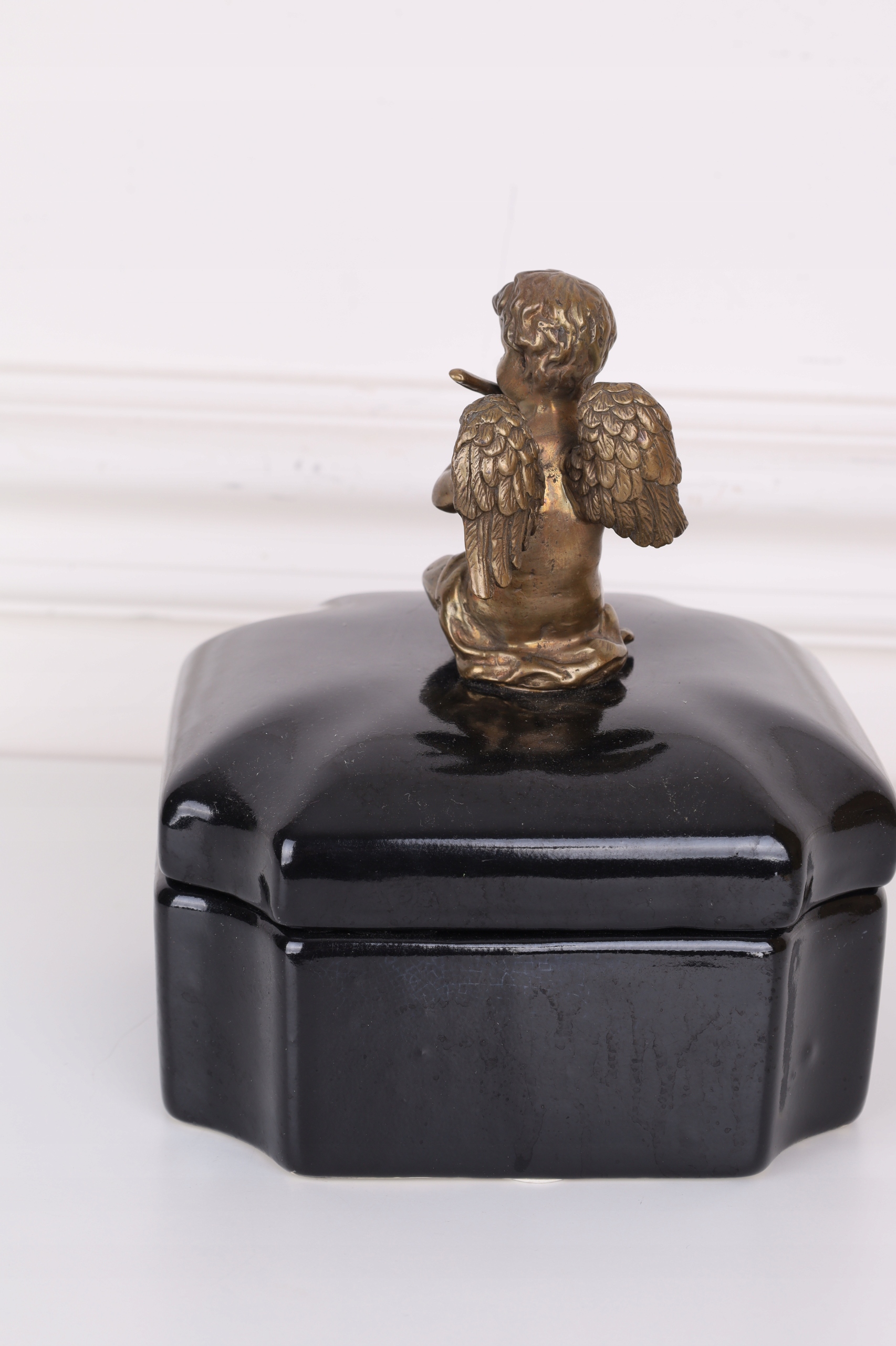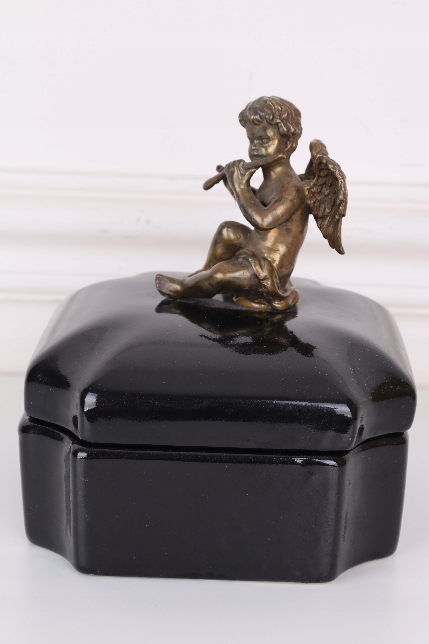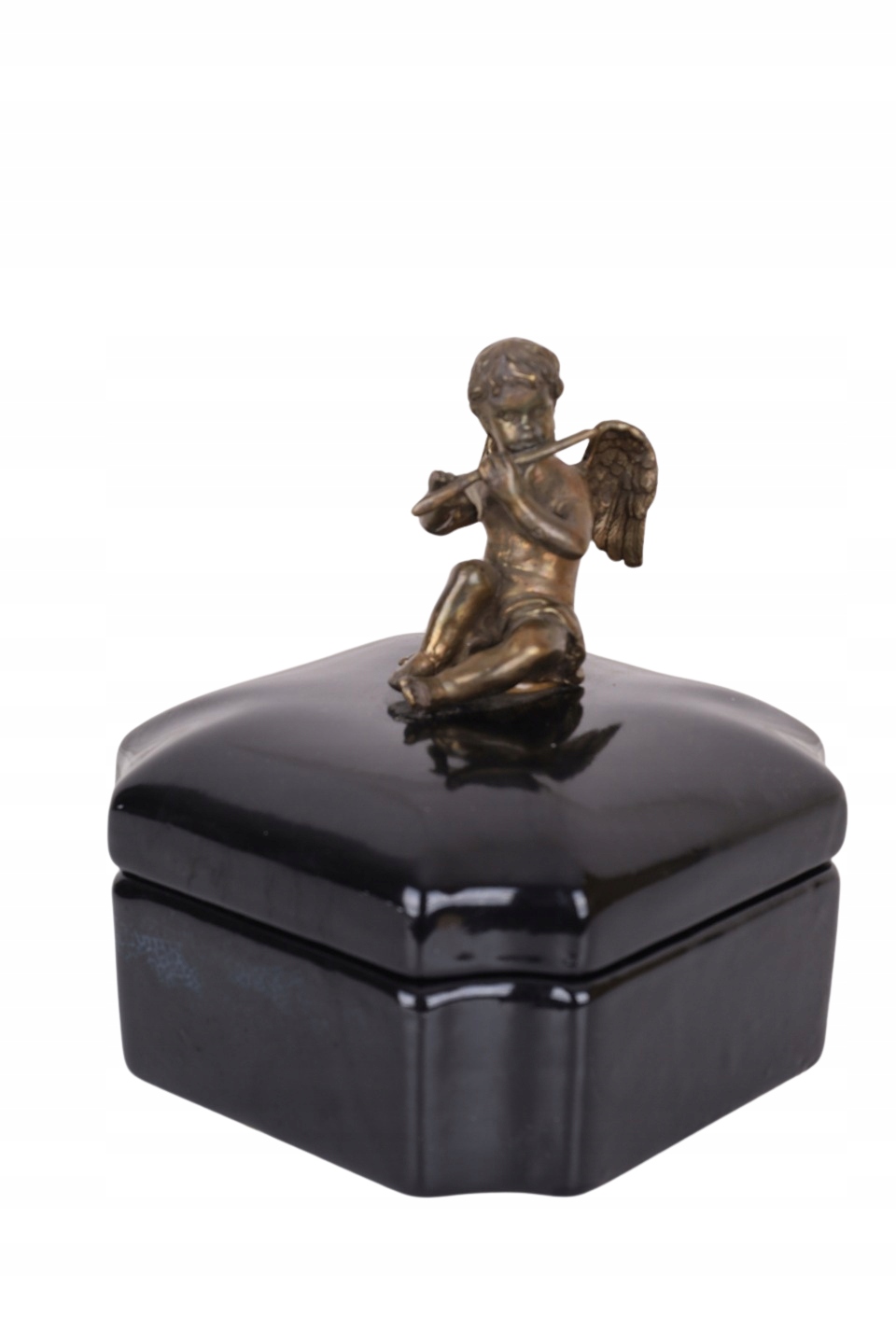 Czarna szkatuła – porcelana z brązem z aniołkiem