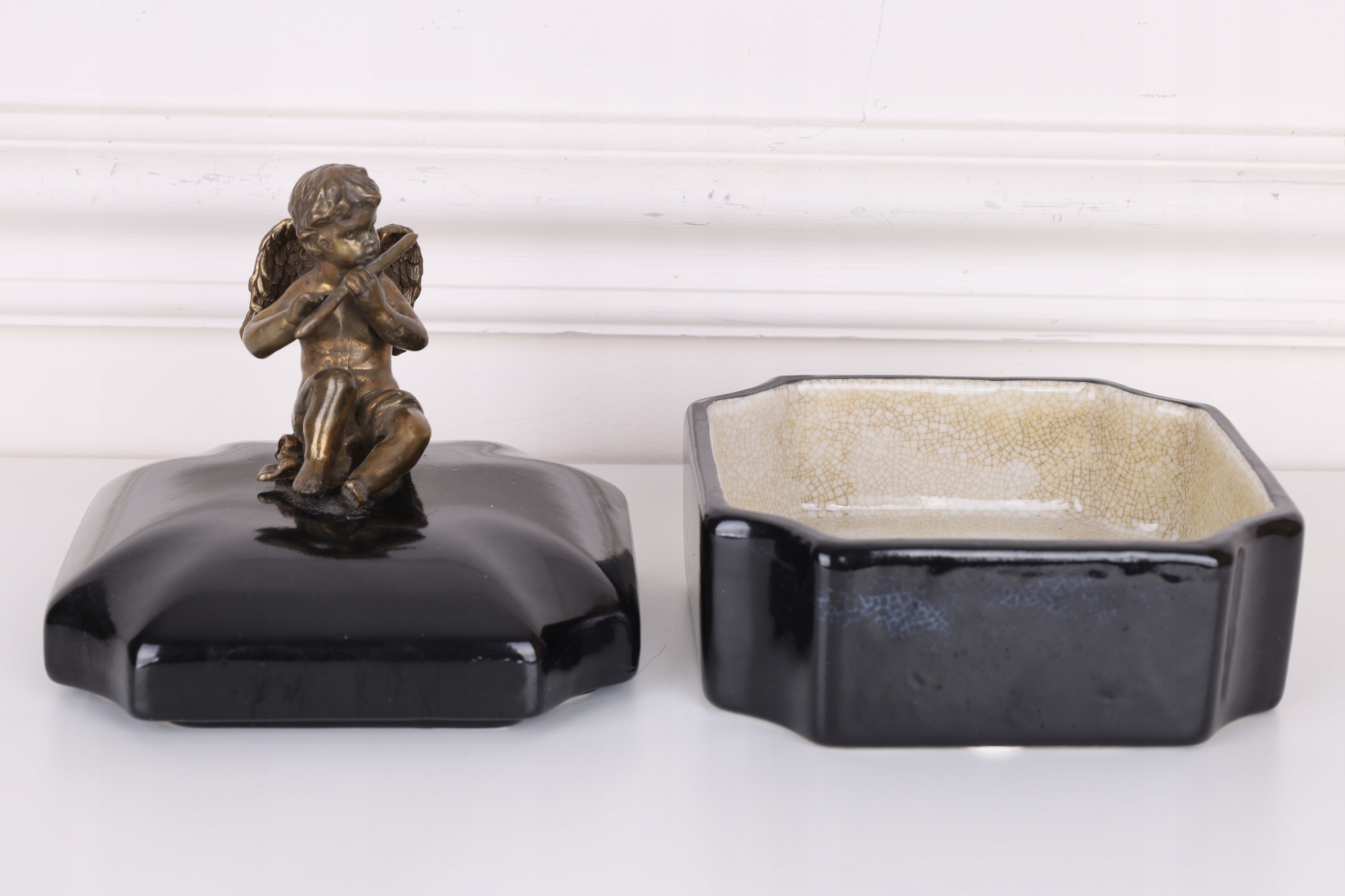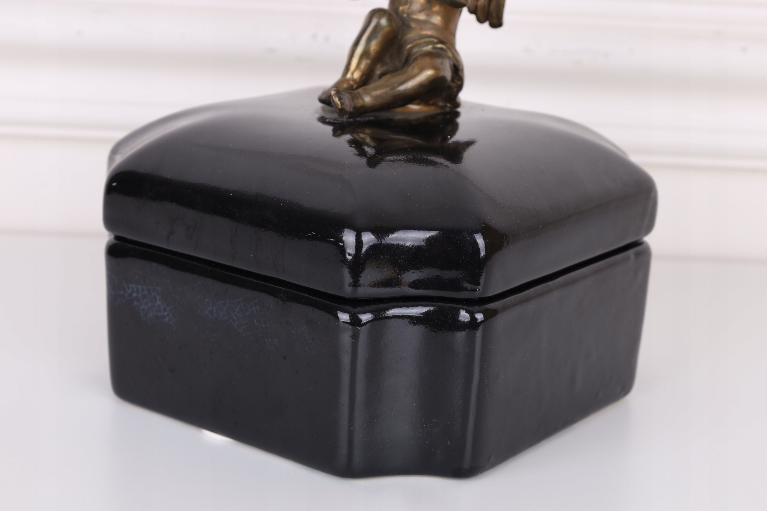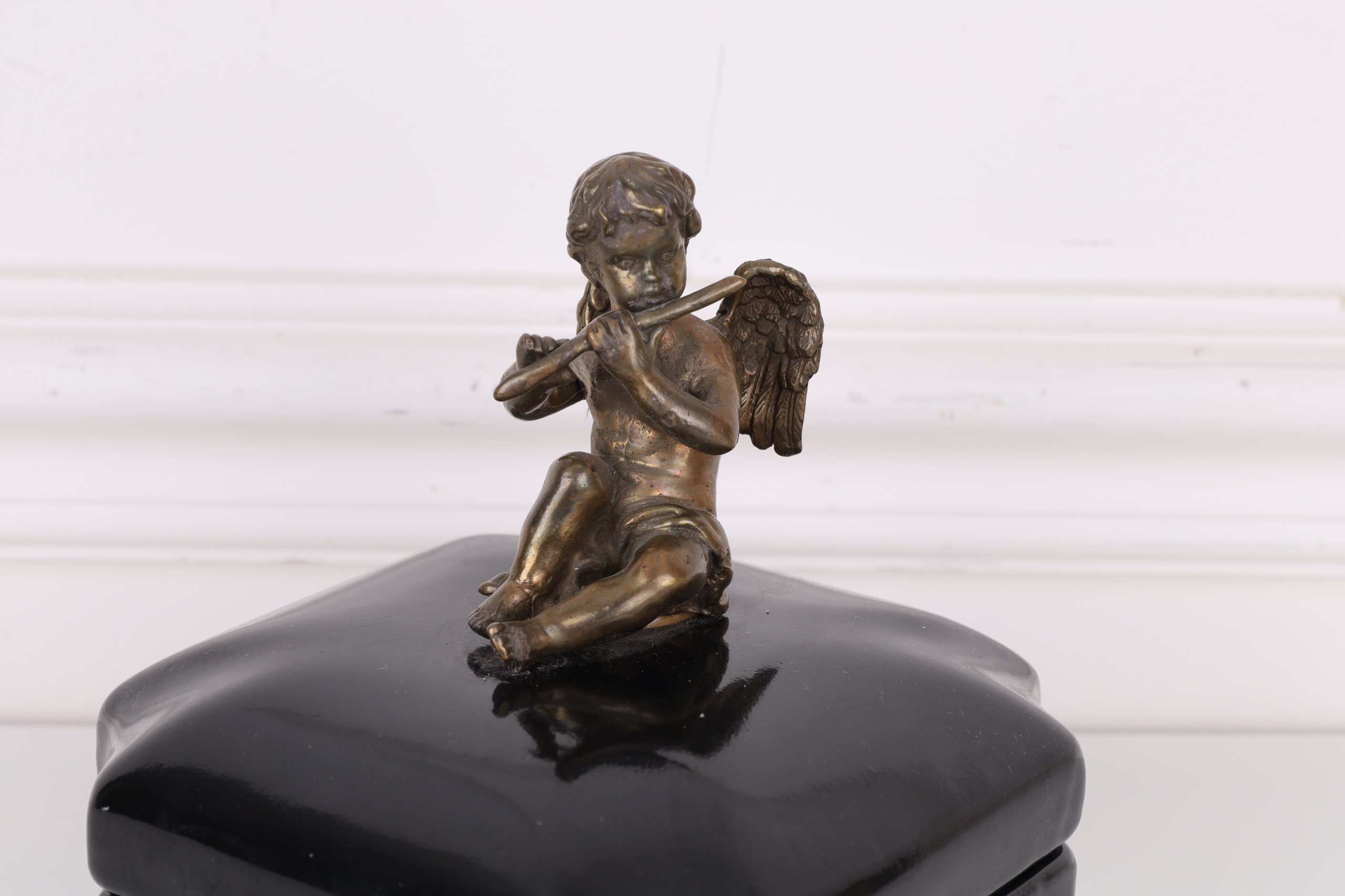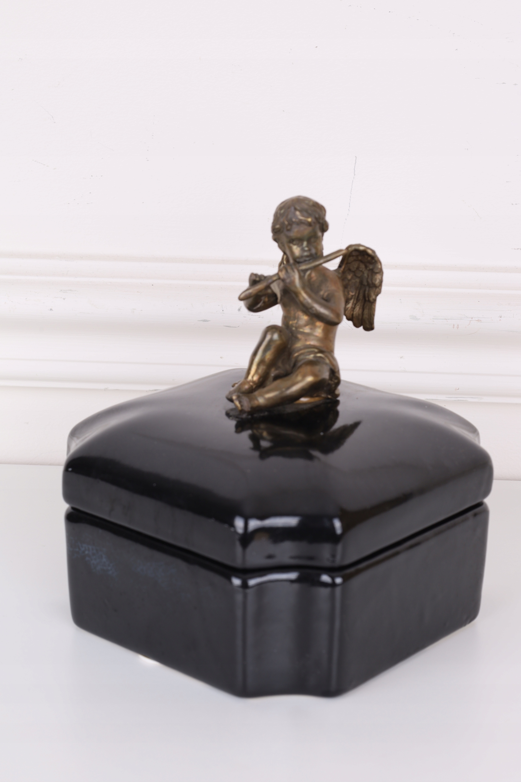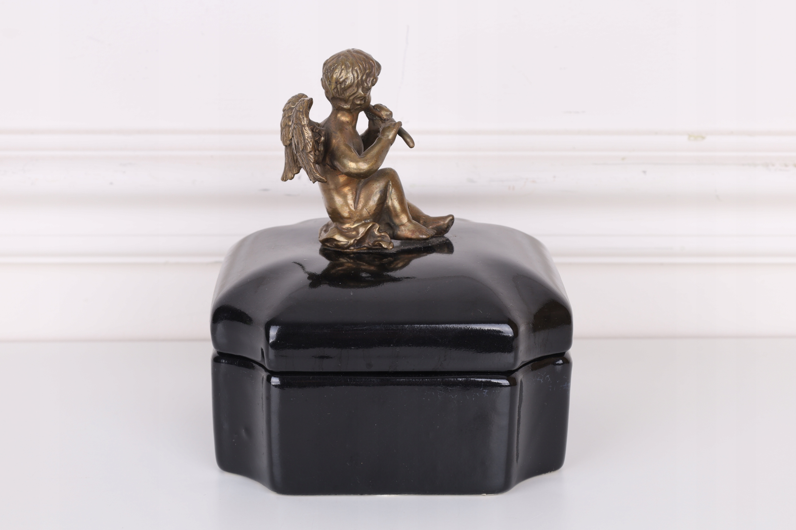 Czarna szkatuła – porcelana z brązem z aniołkiem