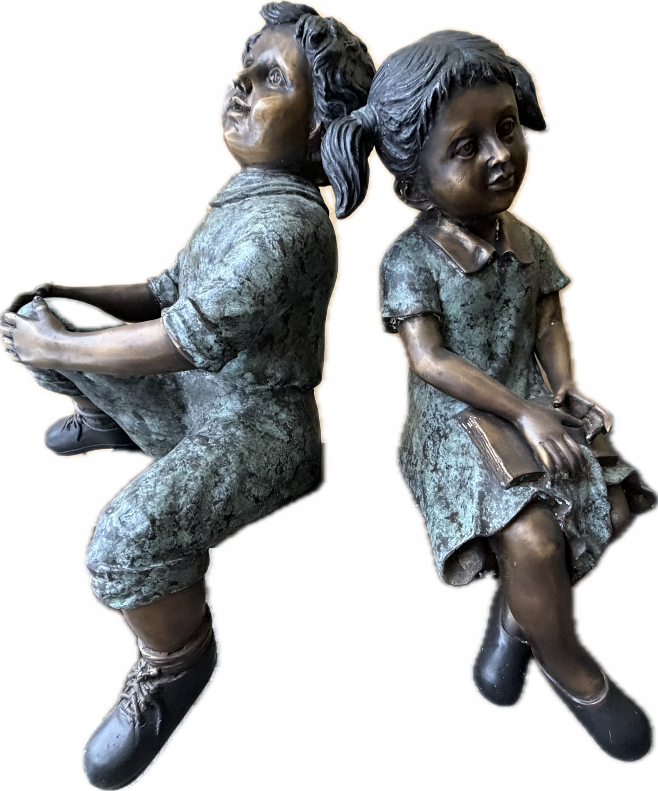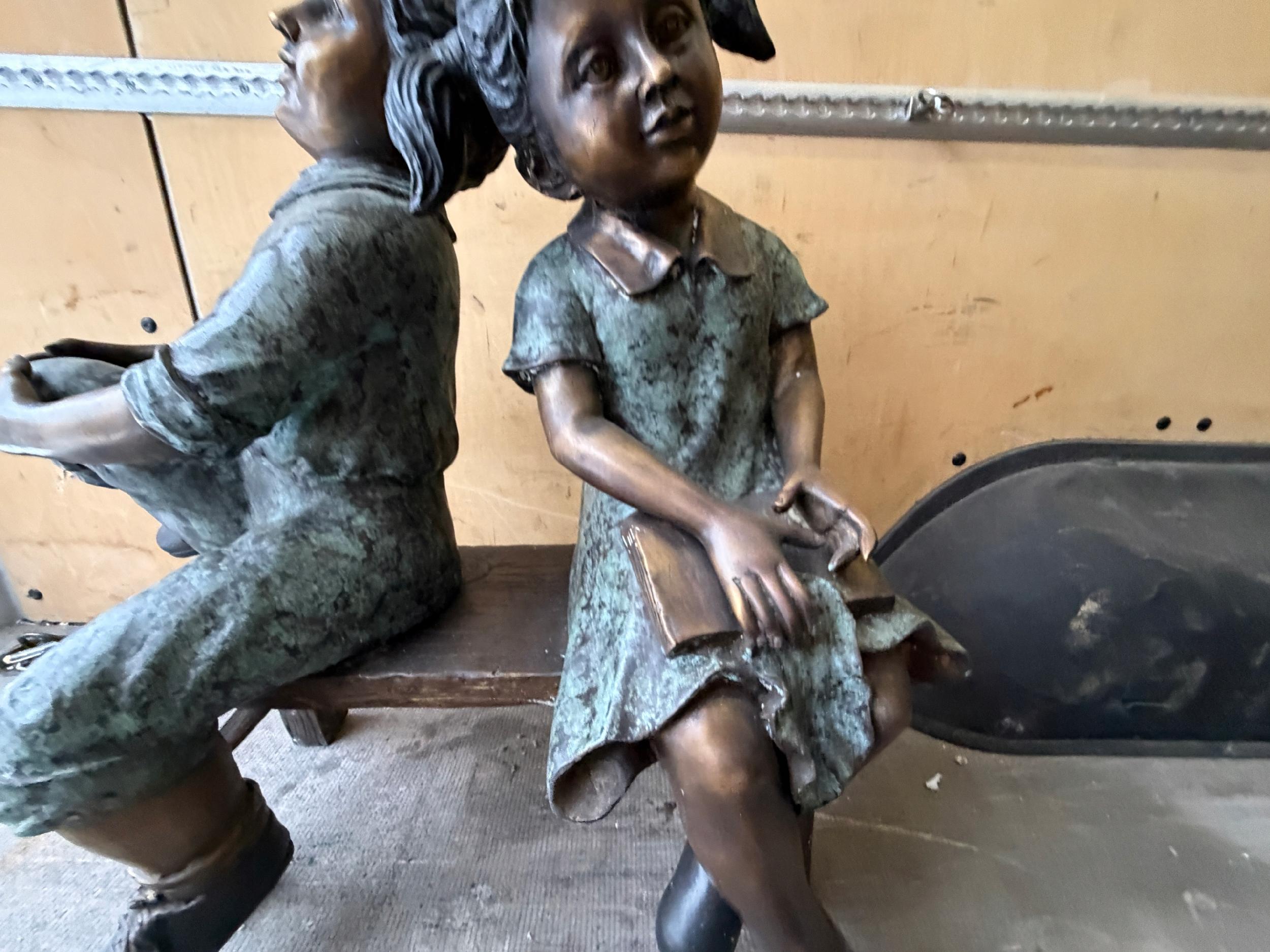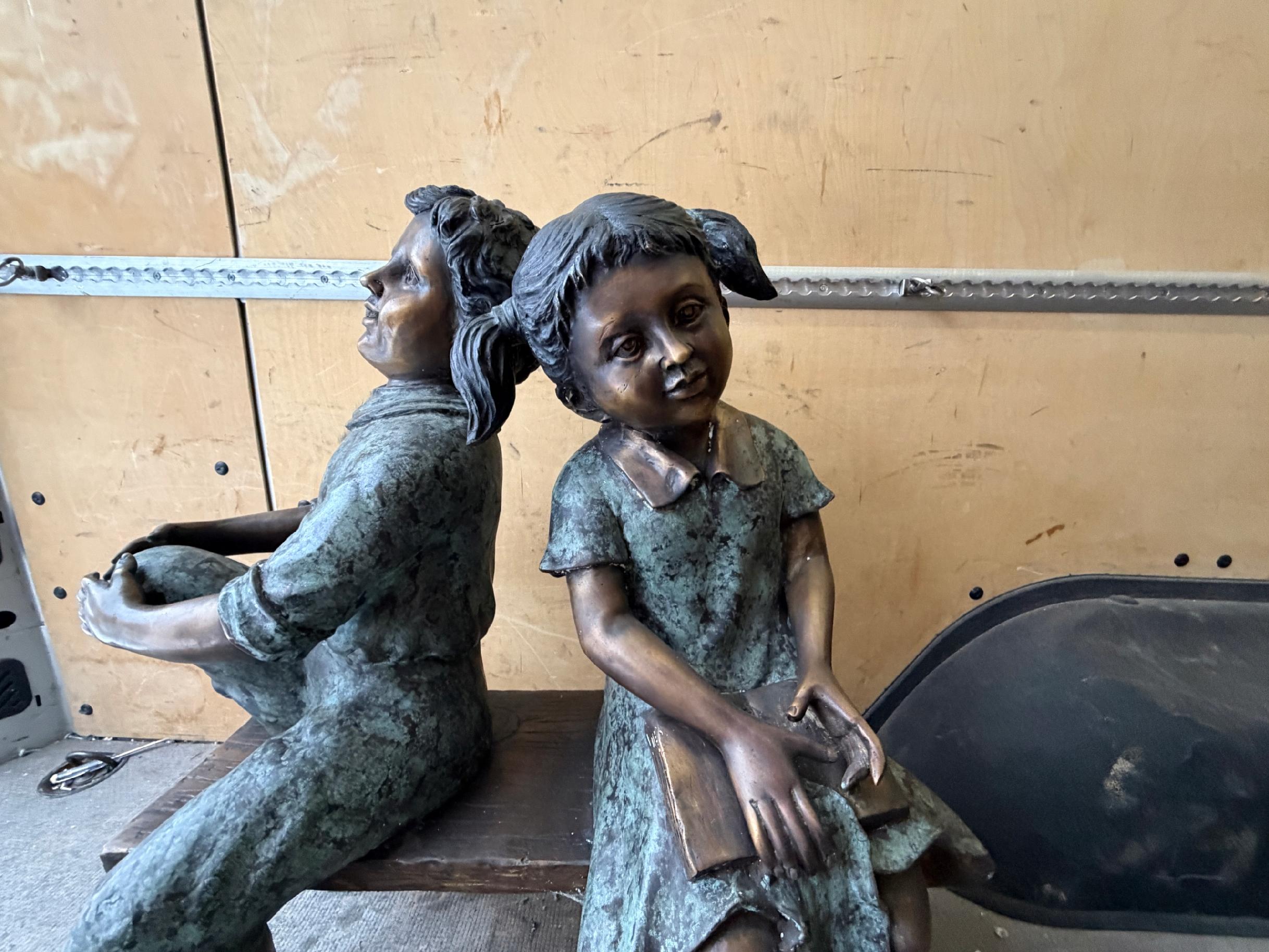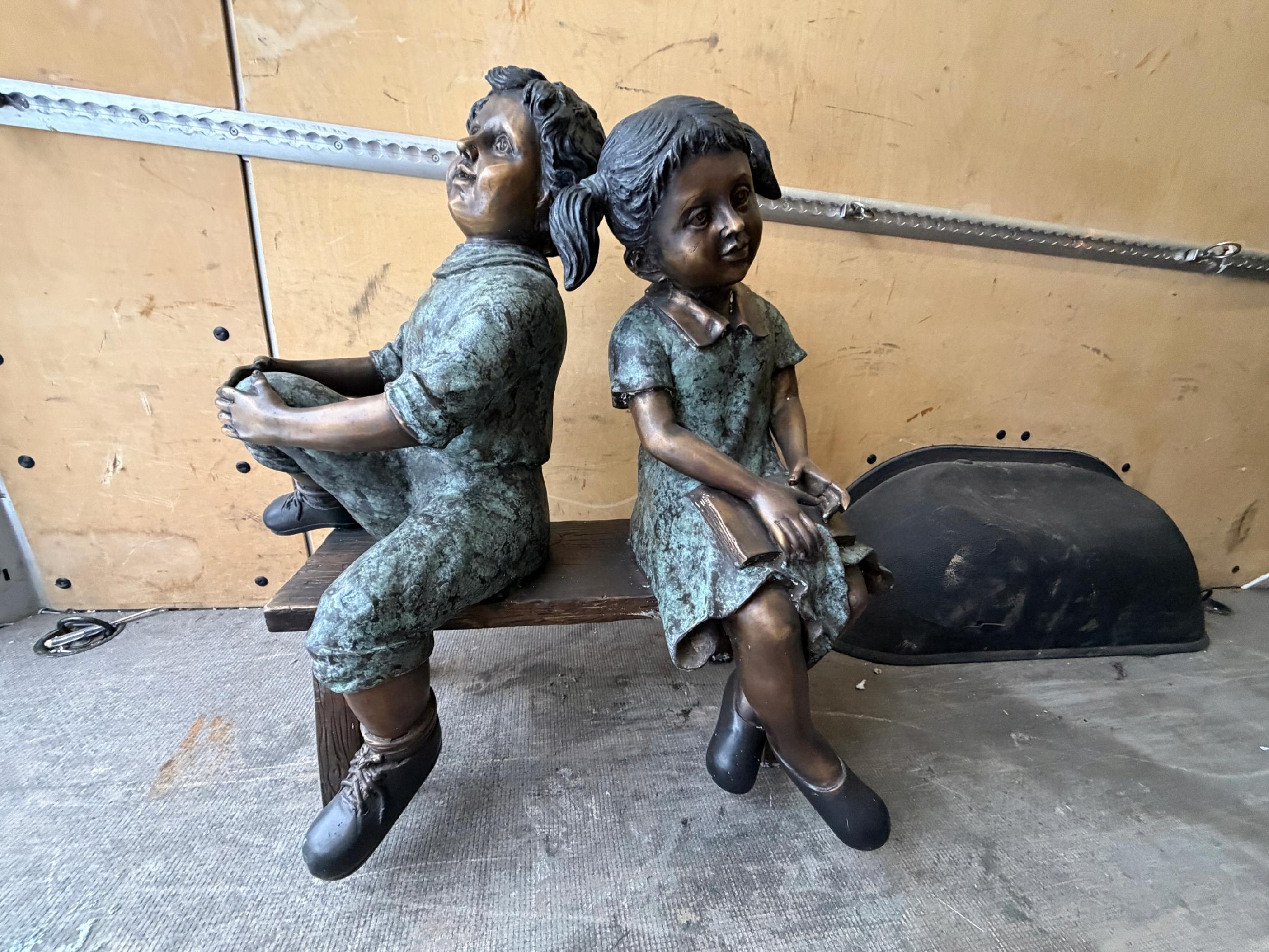 Dzieci na ławce – rodzeństwo – figura z brązu