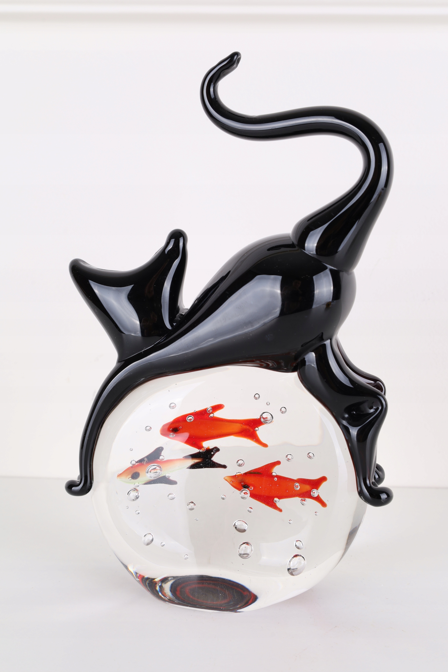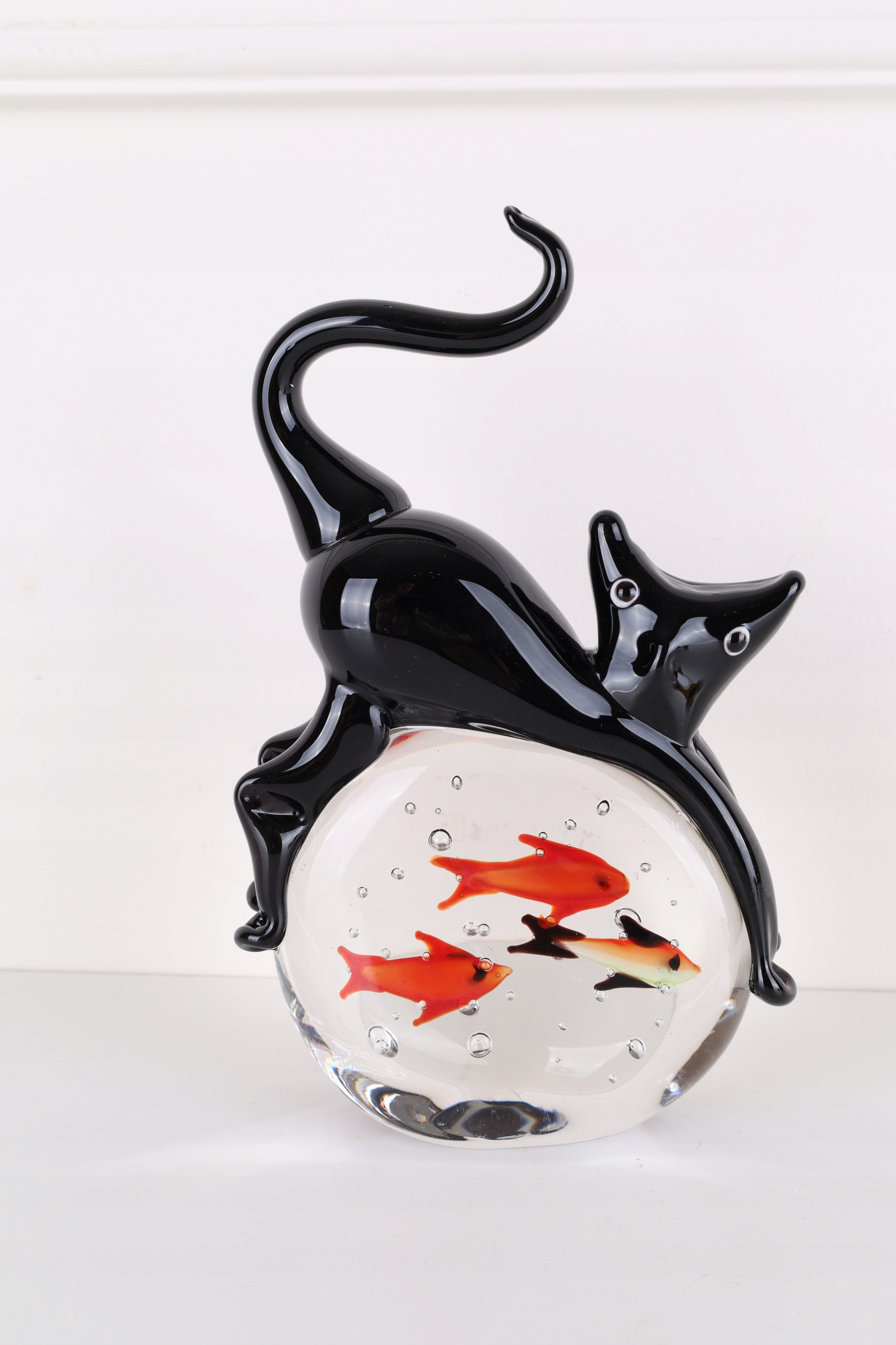 Figurka -KOTEK Z RYBKAMI – w stylu MURANO