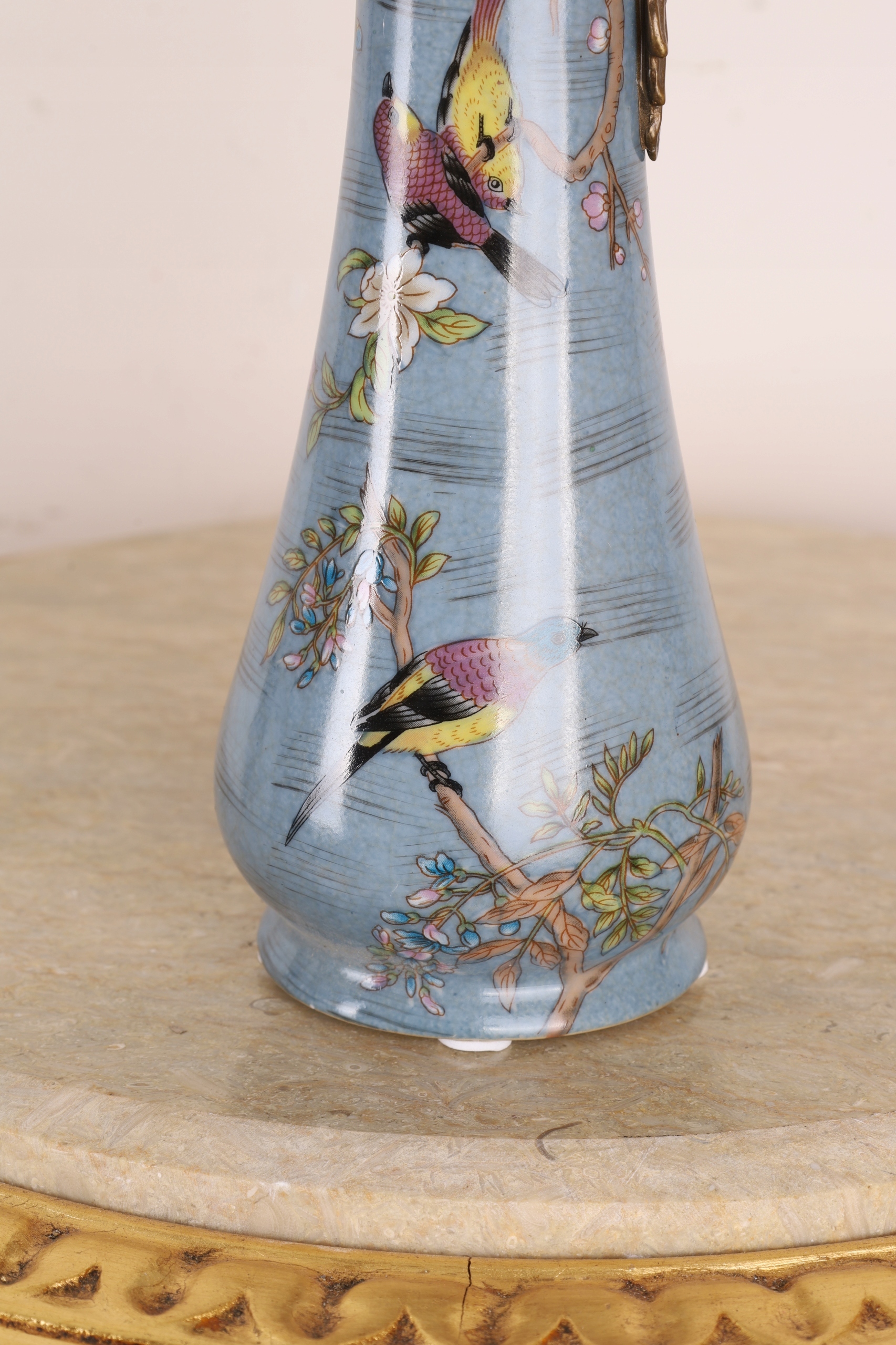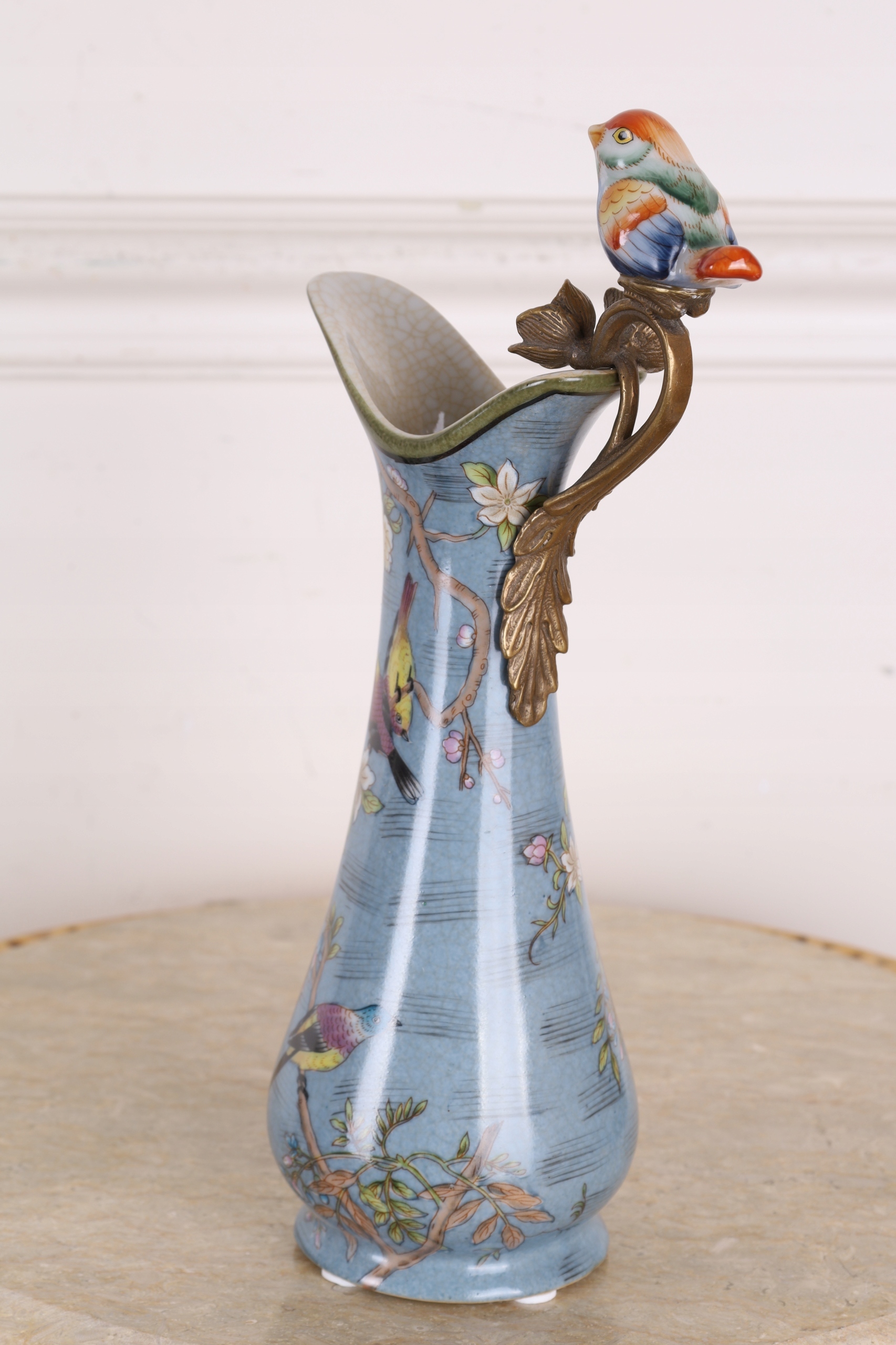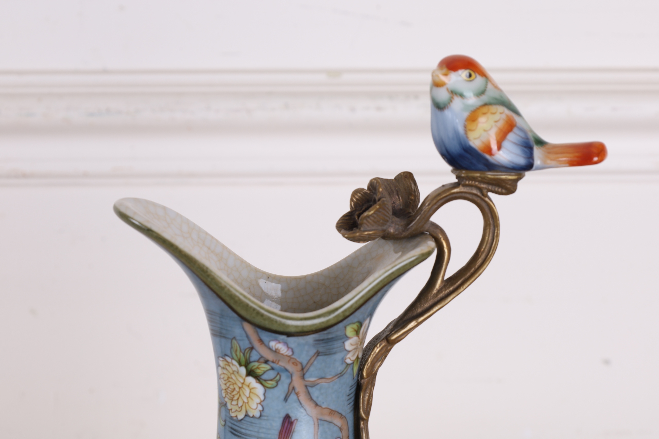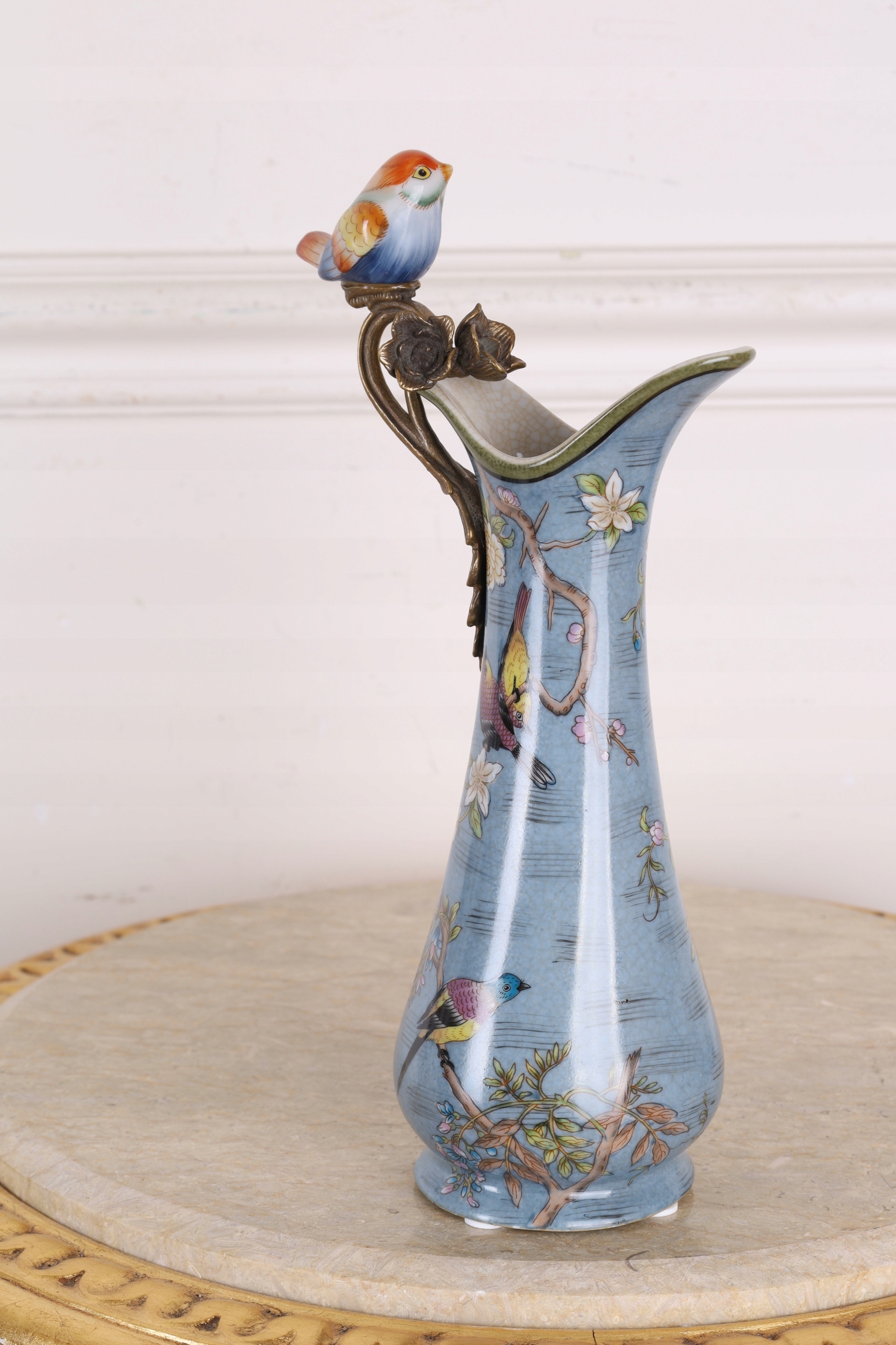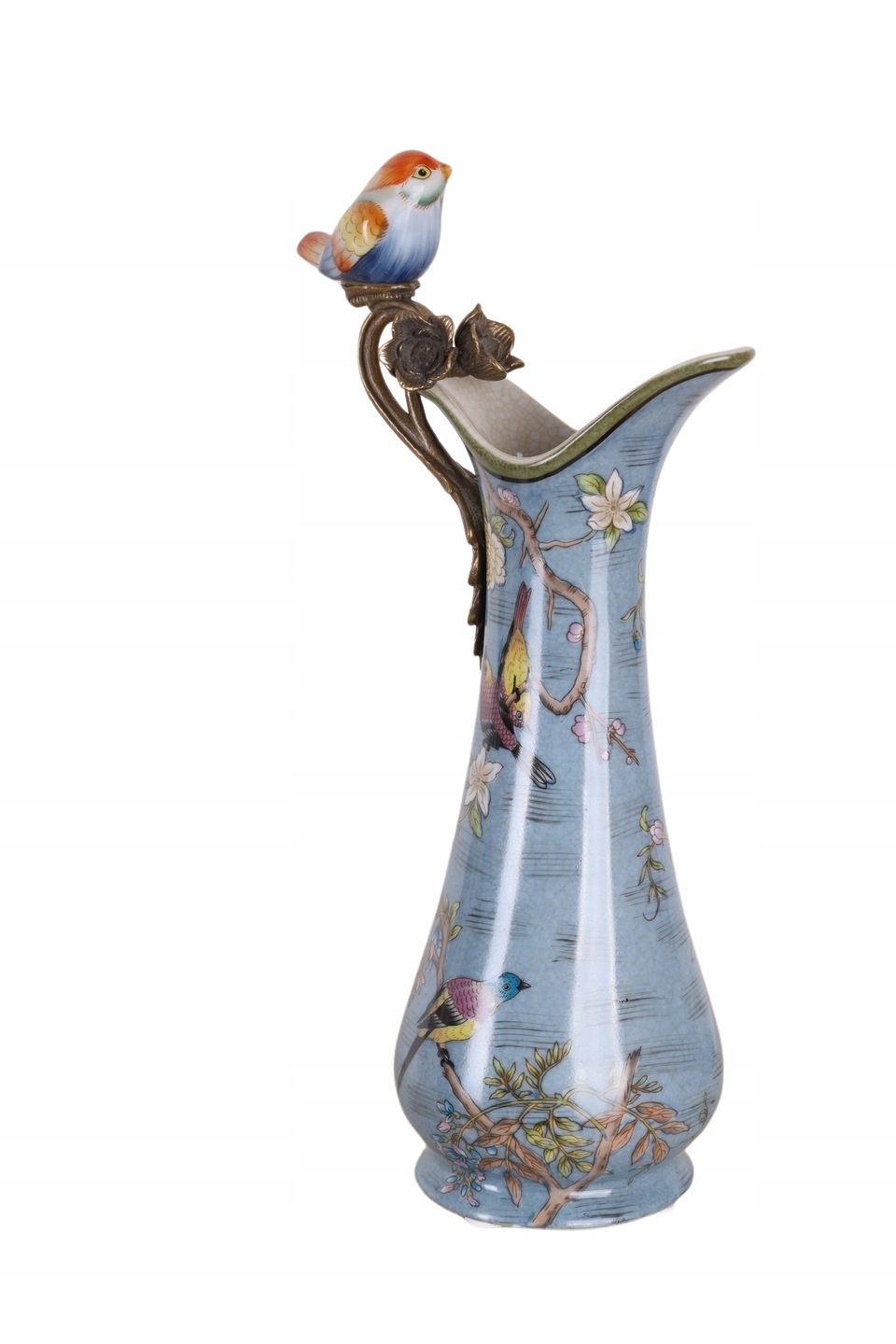 KARAFKA PORCELANA Z BRĄZEM – niebieska z ptaszkiem