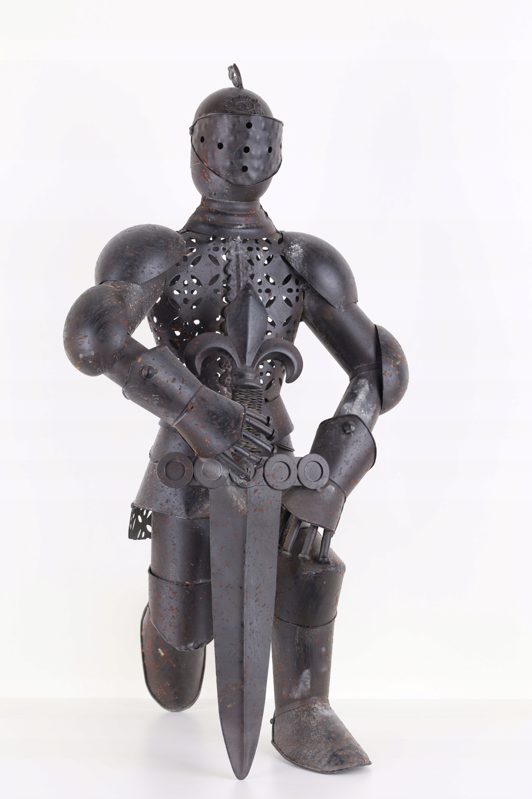 METALOWY KLĘCZĄCY RYCERZ -zbroja ozdoba 70 CM