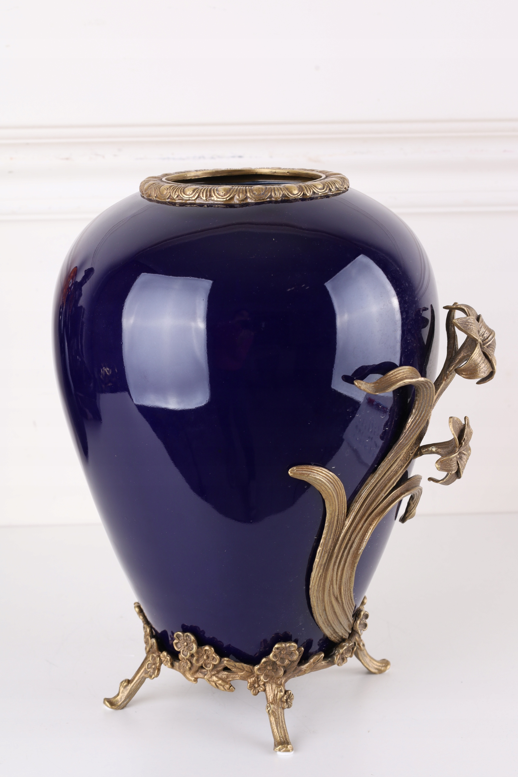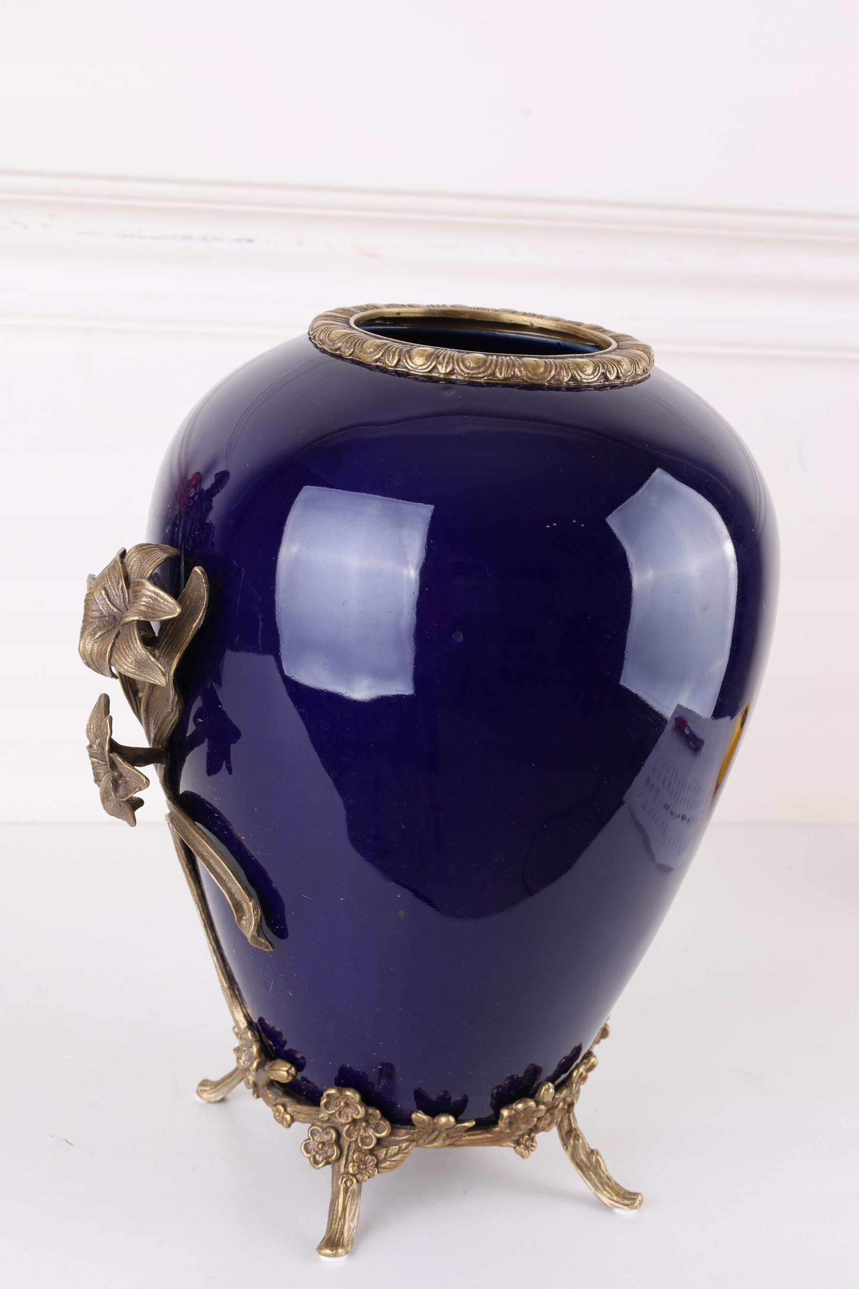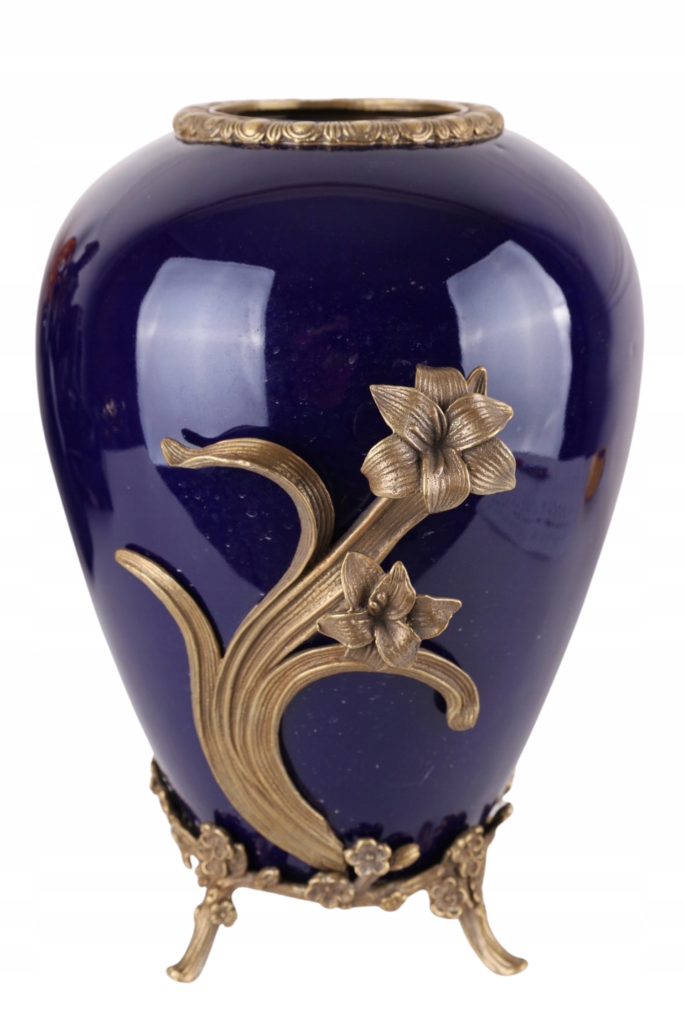KOBALTOWY WAZON z brązem z KWIATEM