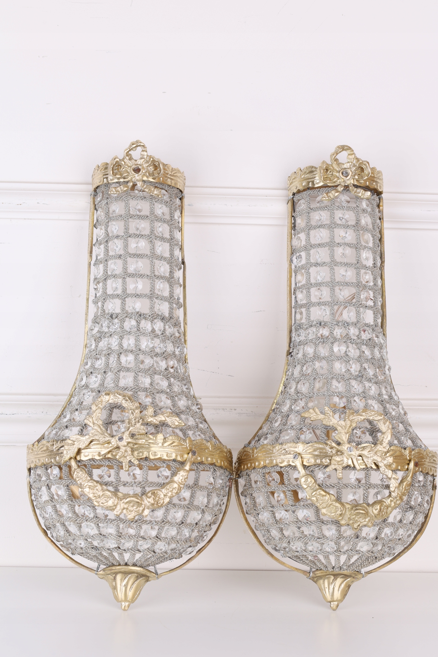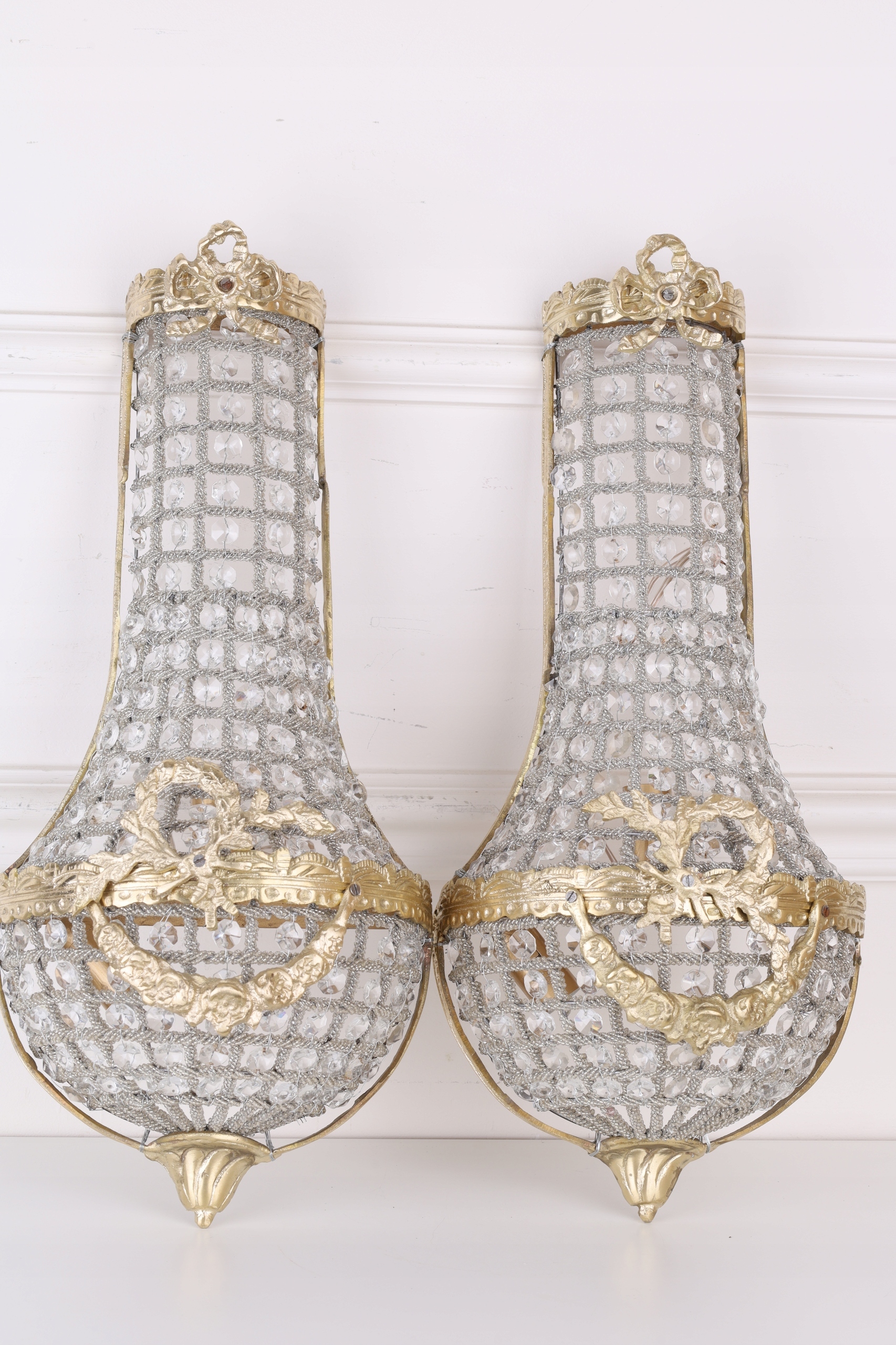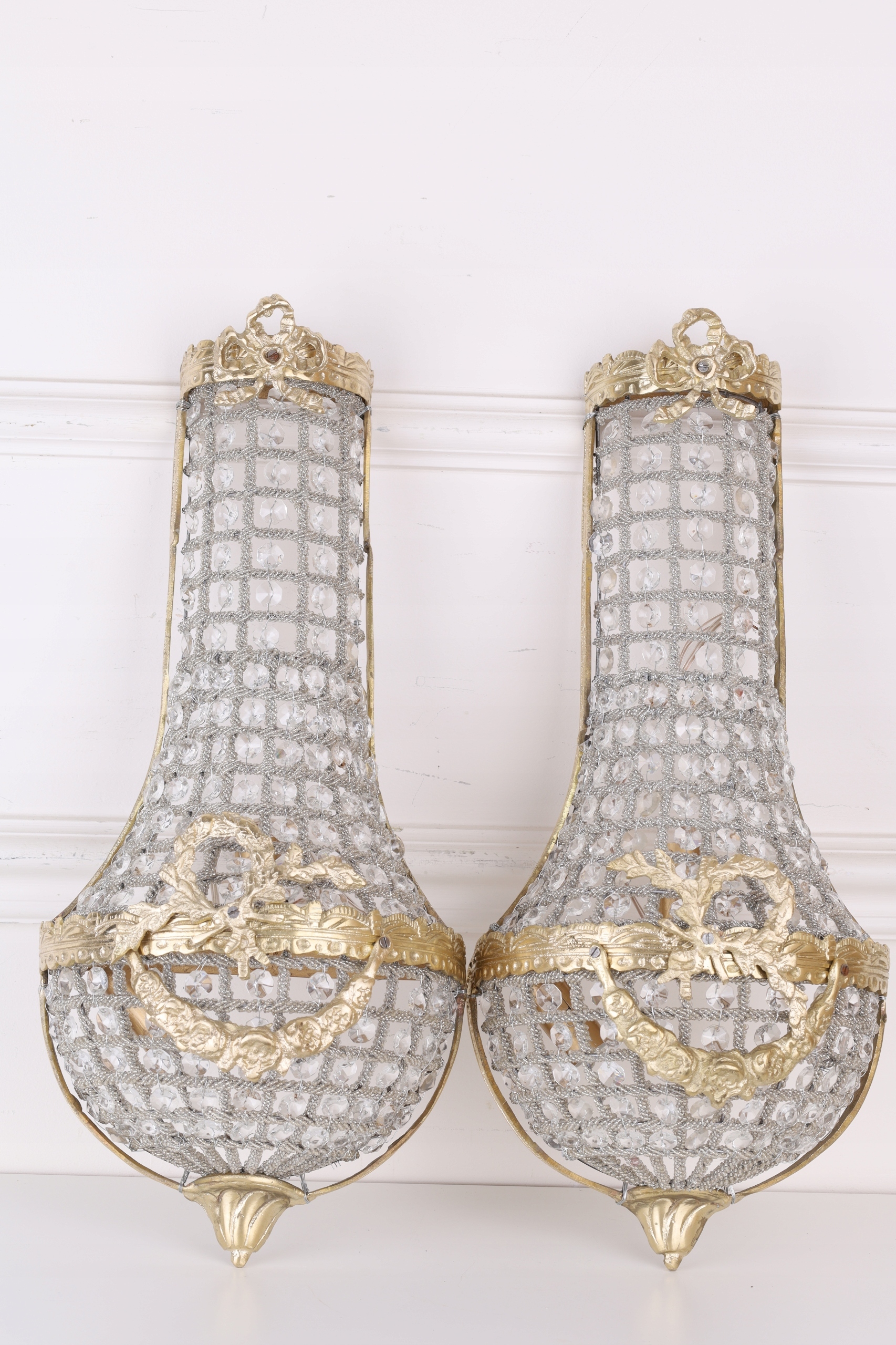 KRYSZTAŁOWE -KINKIETY + mosiądz KOMPLET 50 cm