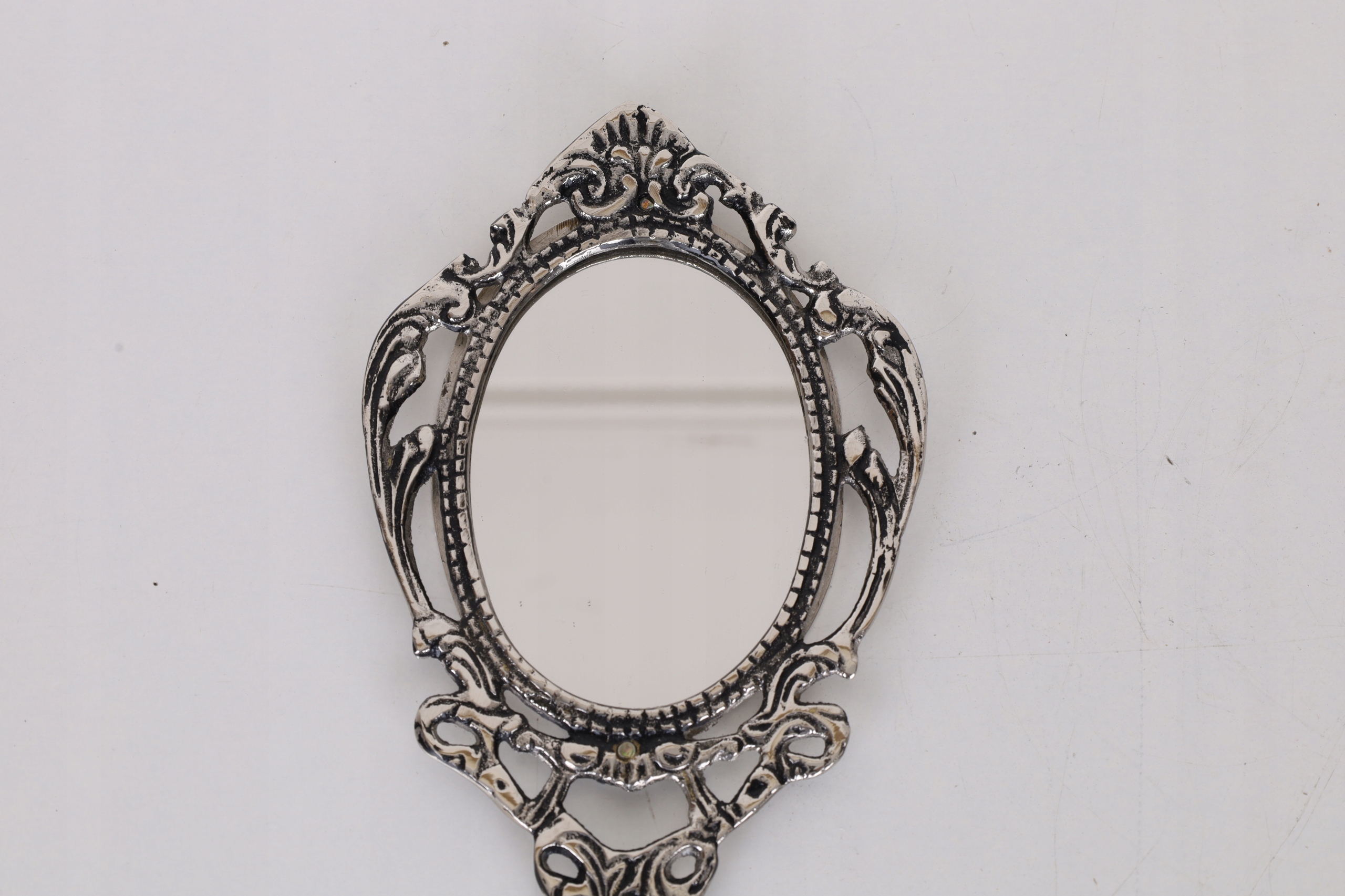Lusterko z uchwytem srebrne – barokowe do ręki!