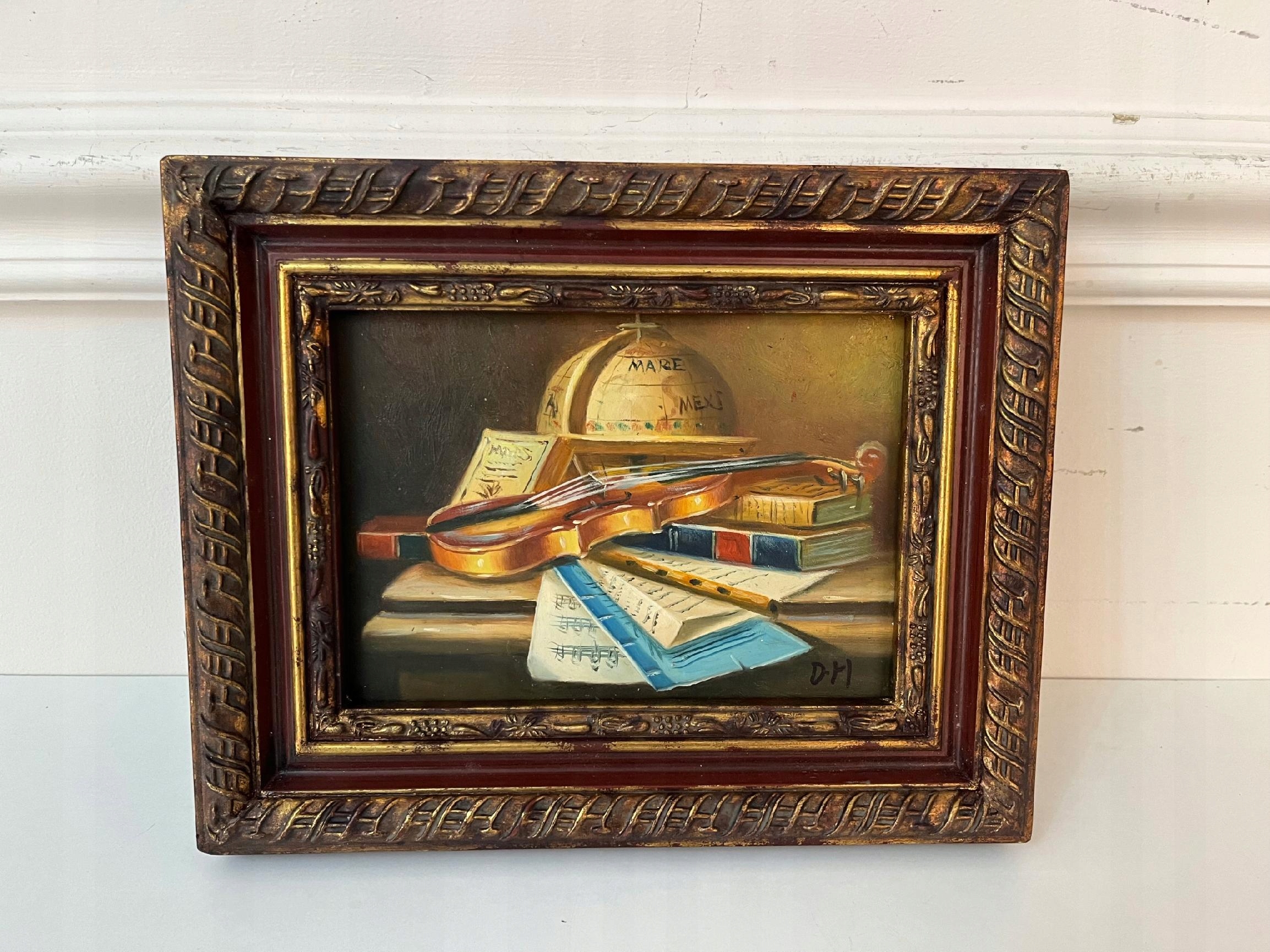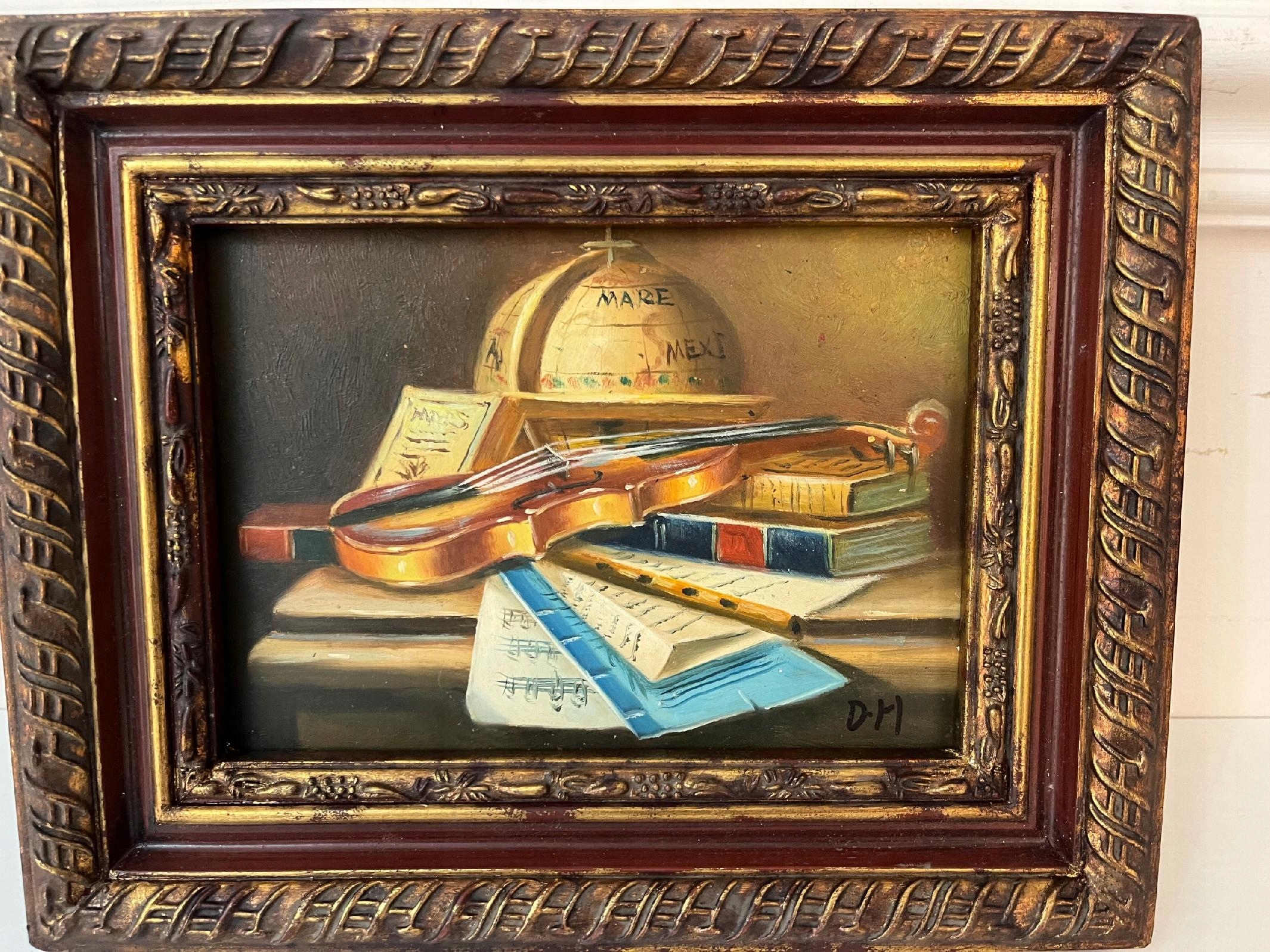 MARTWA NATURA -OBRAZ ZŁOTA RAMA 25 X 20 cm