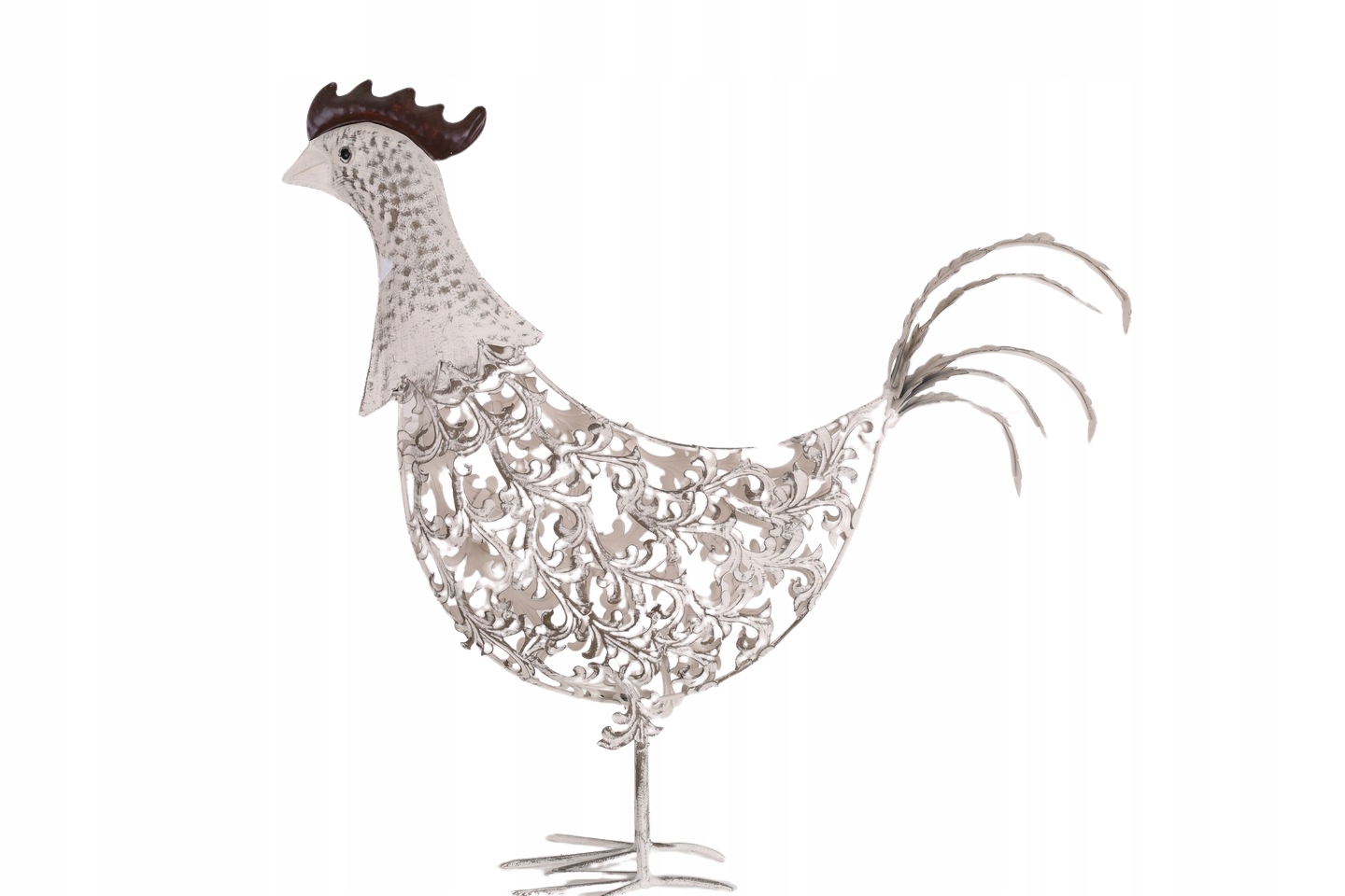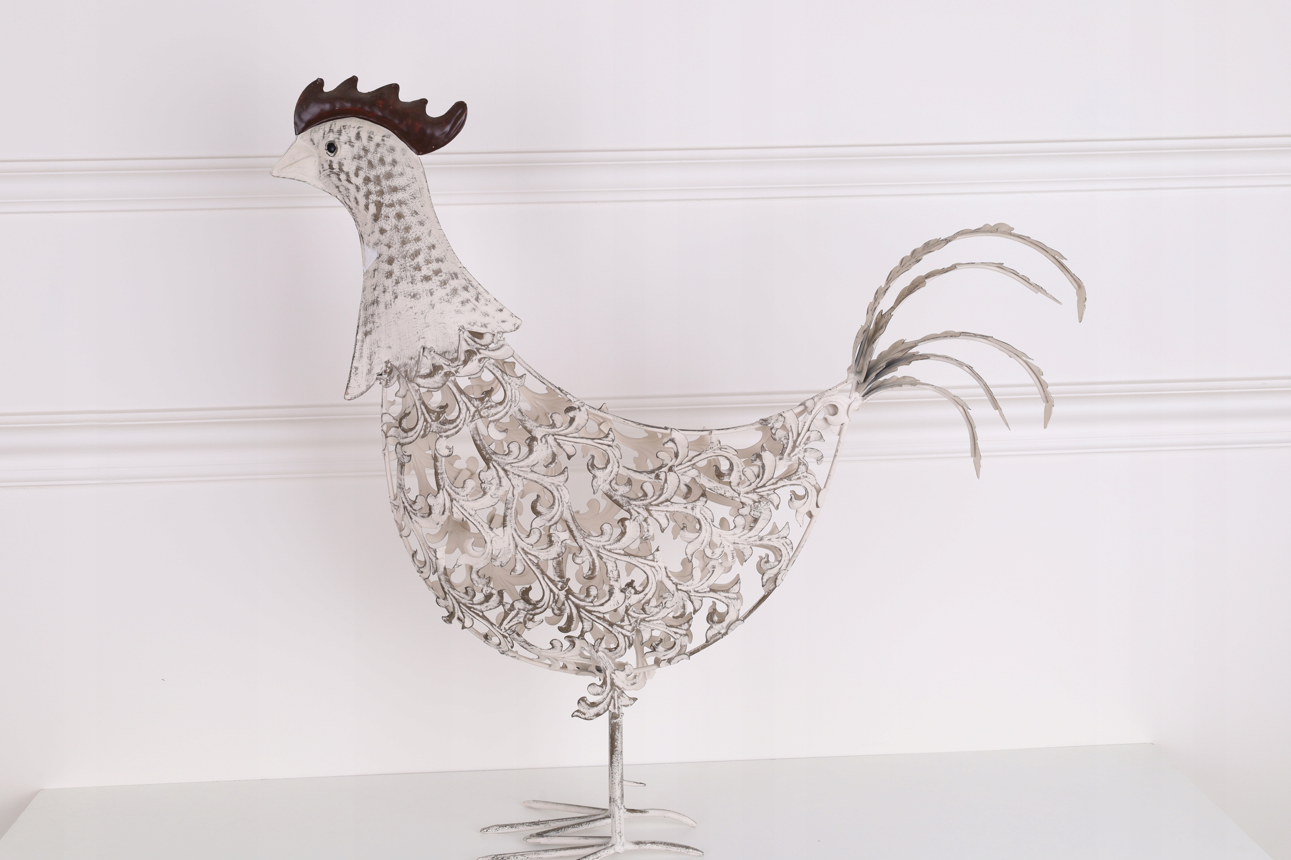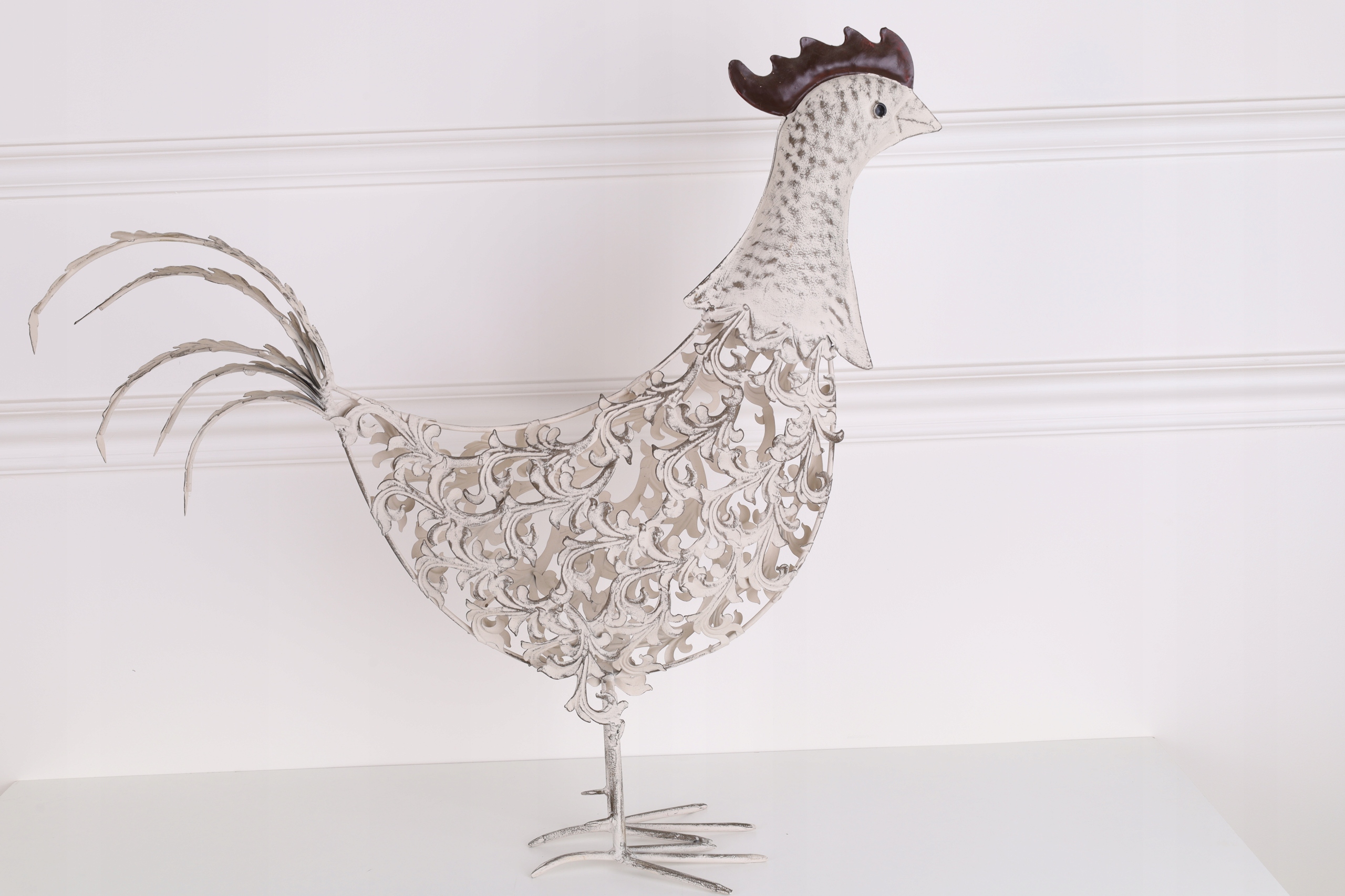 METALOWY BIAŁY KOGUT – ozdoba do ogrodu