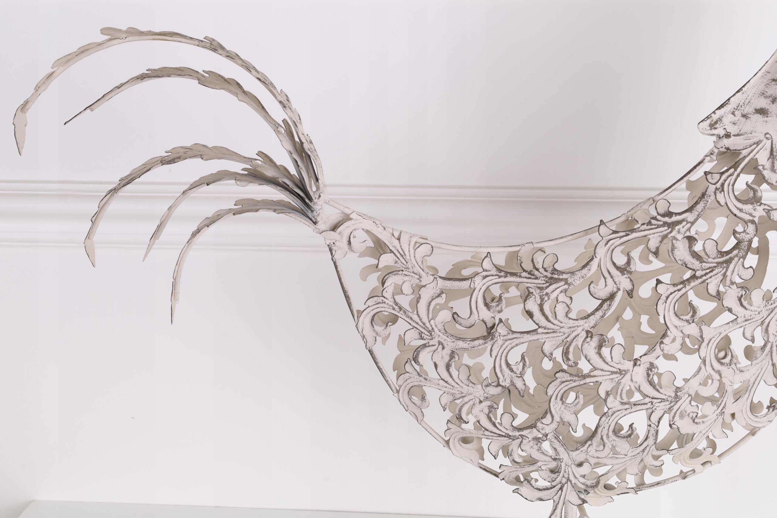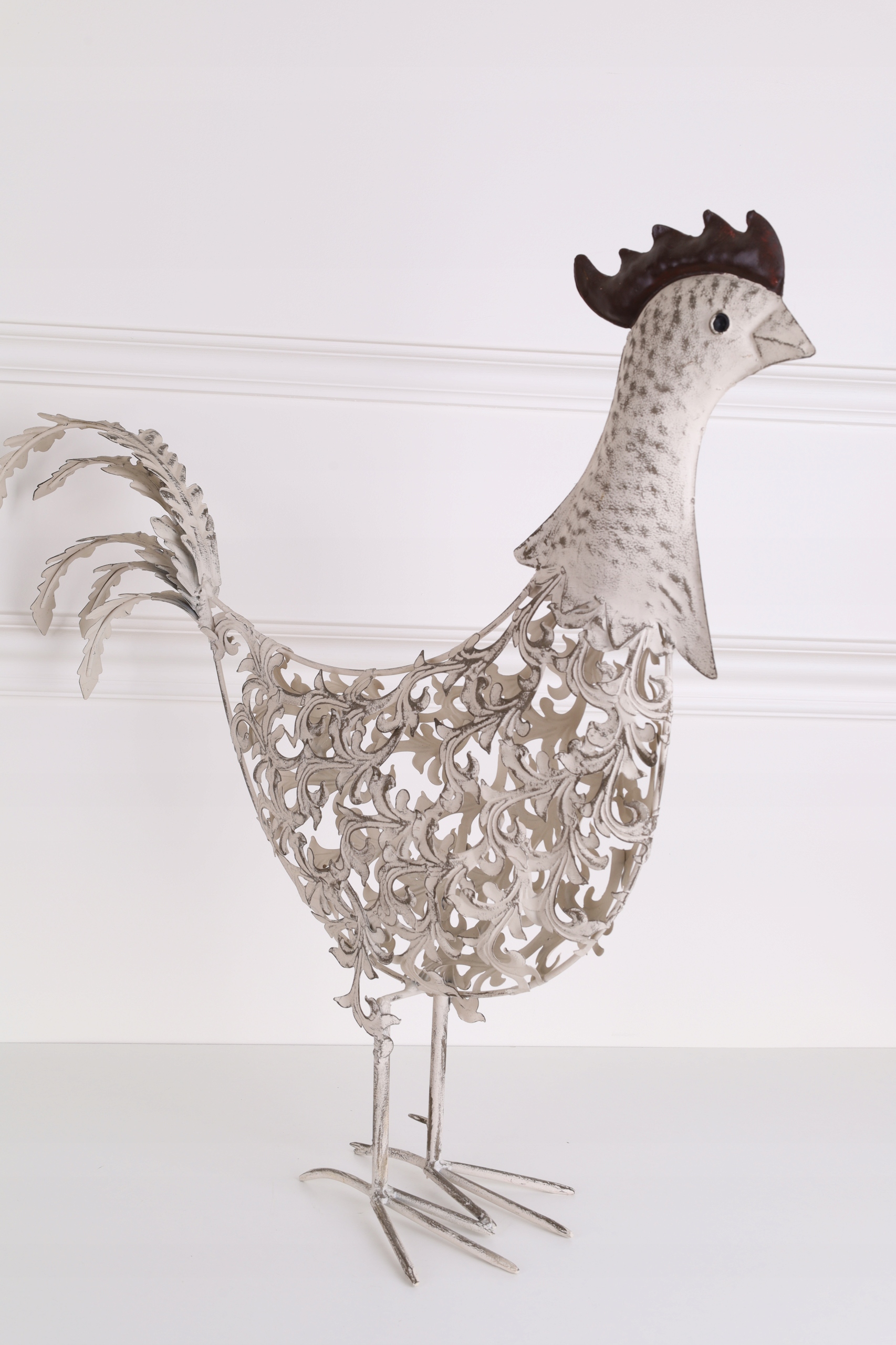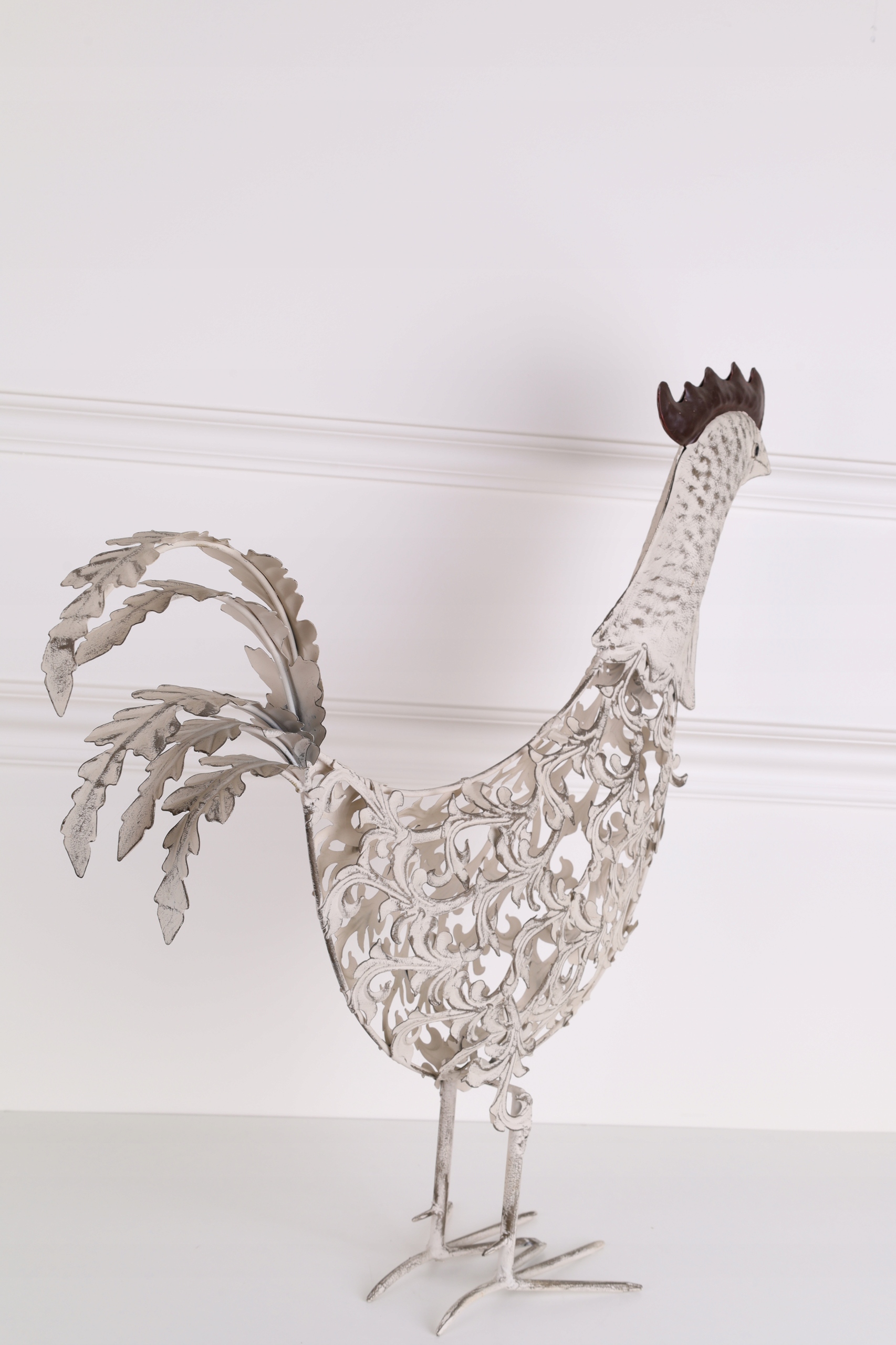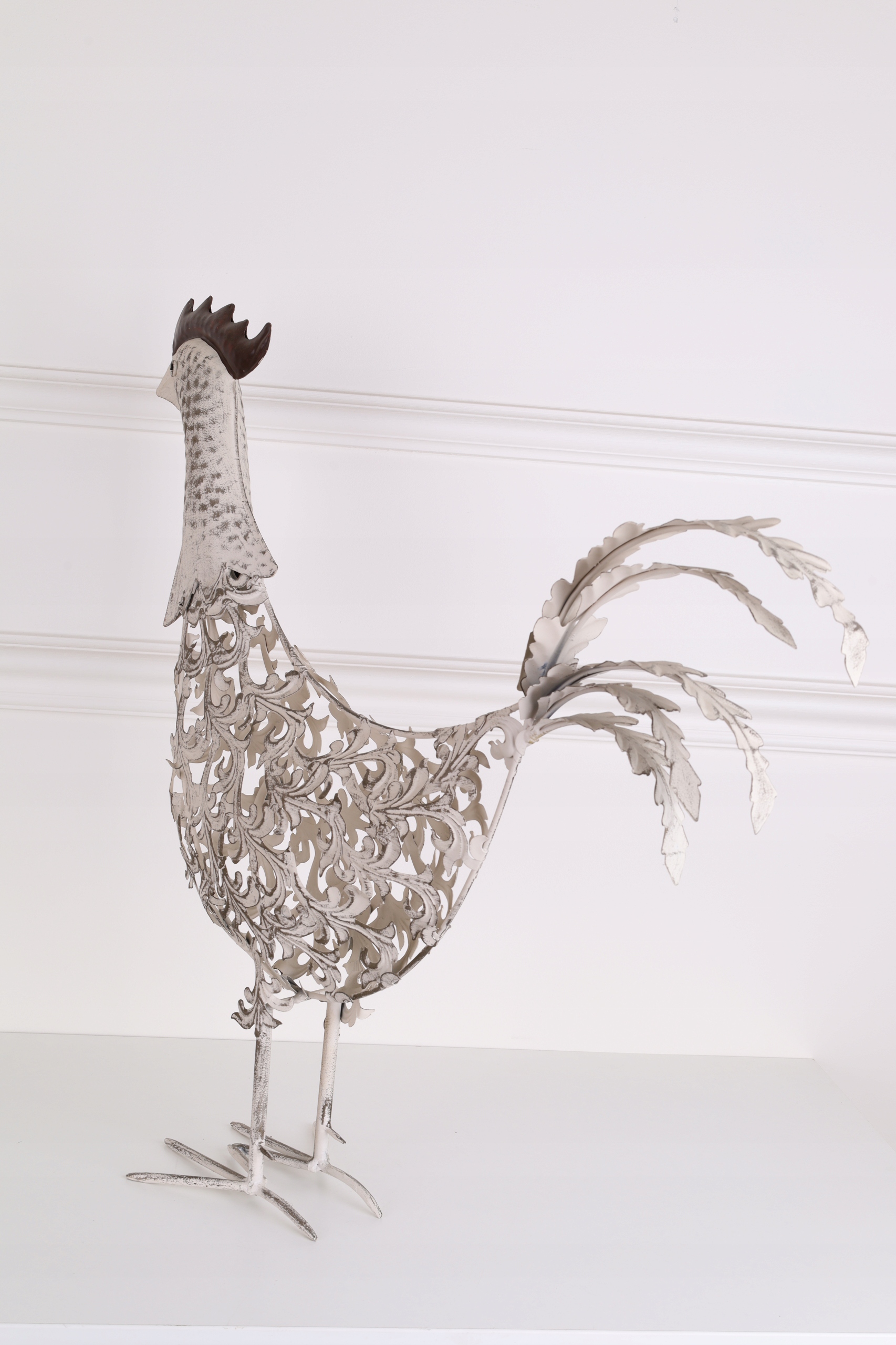 METALOWY BIAŁY KOGUT – ozdoba do ogrodu