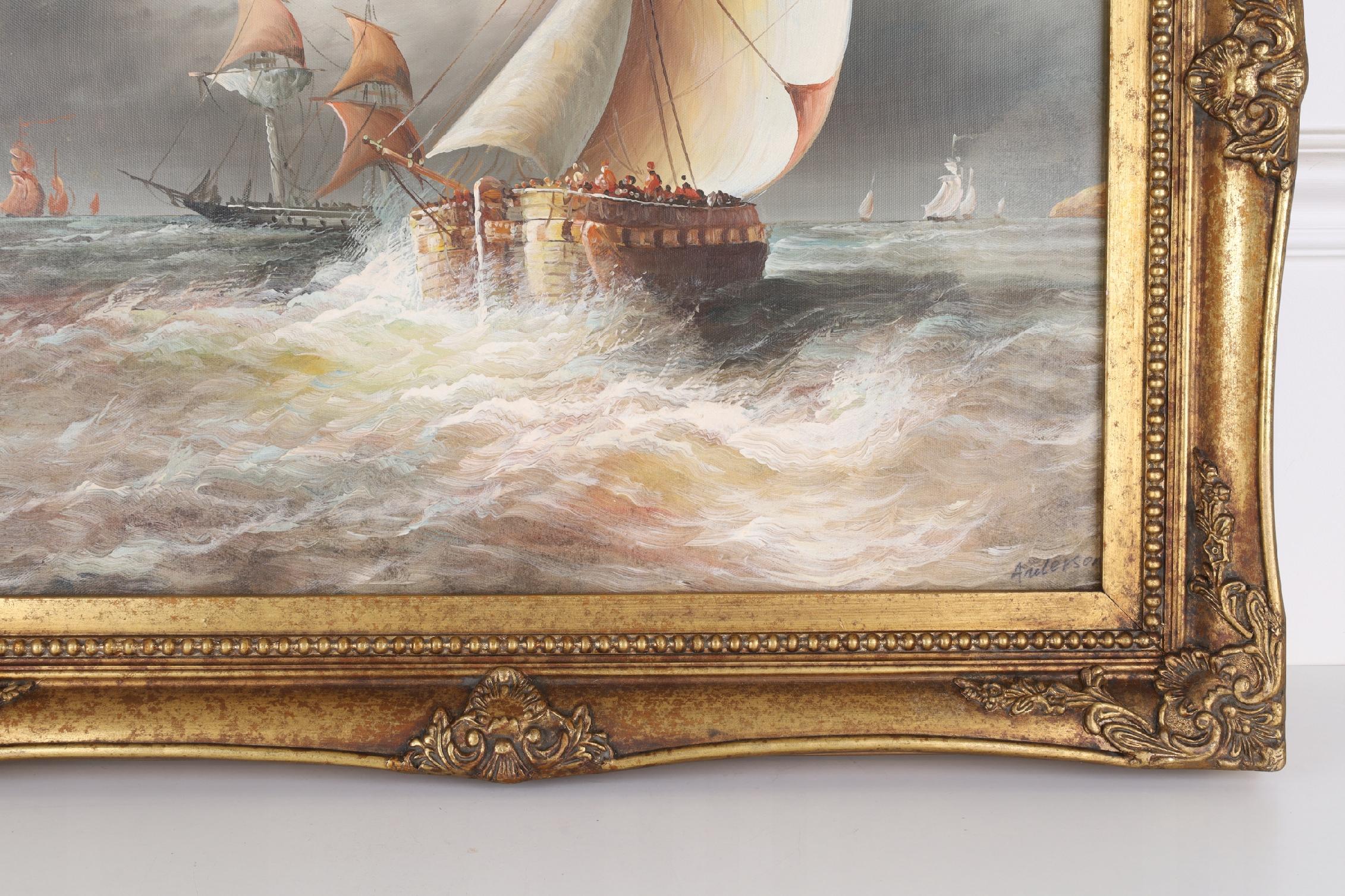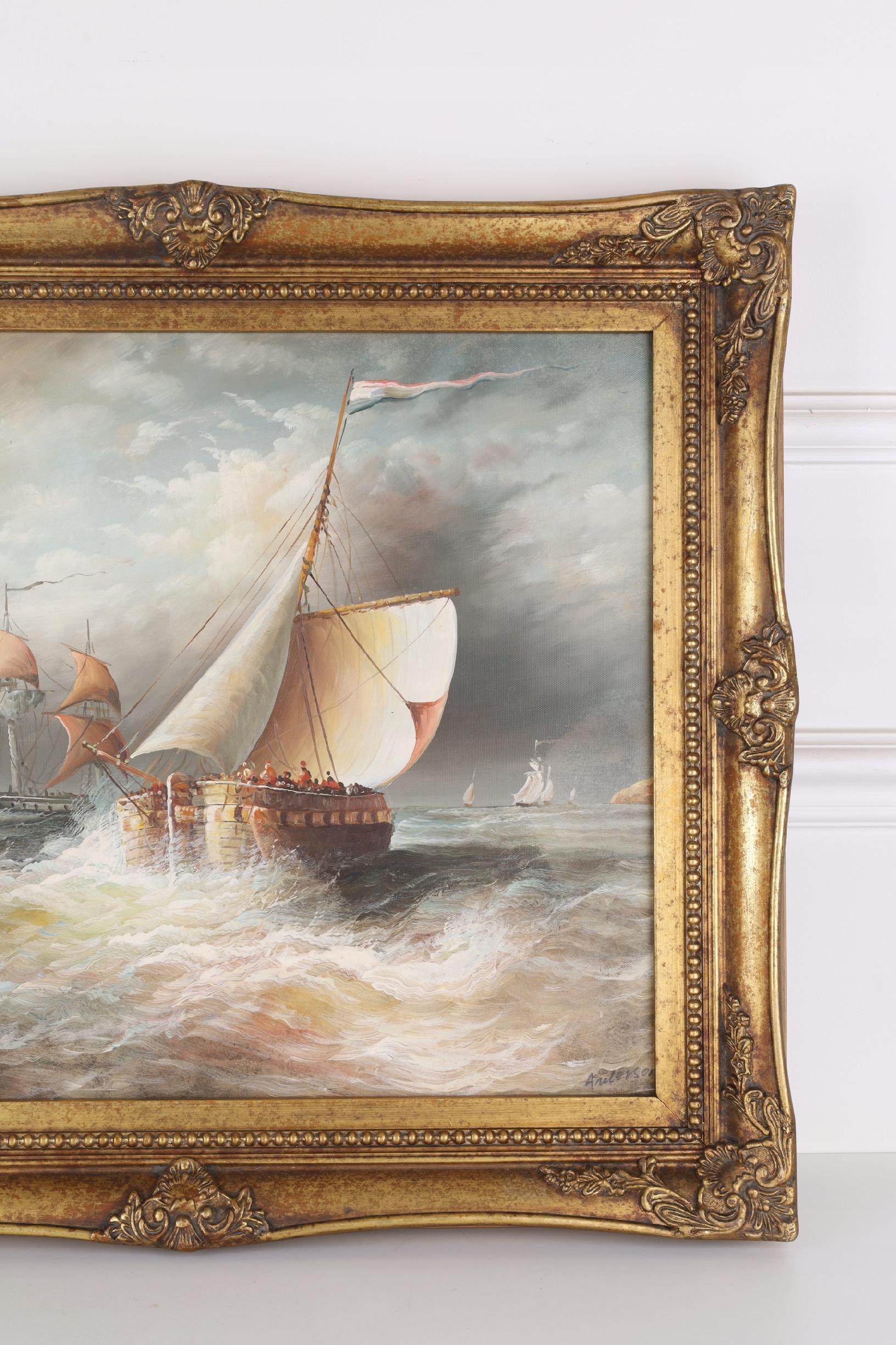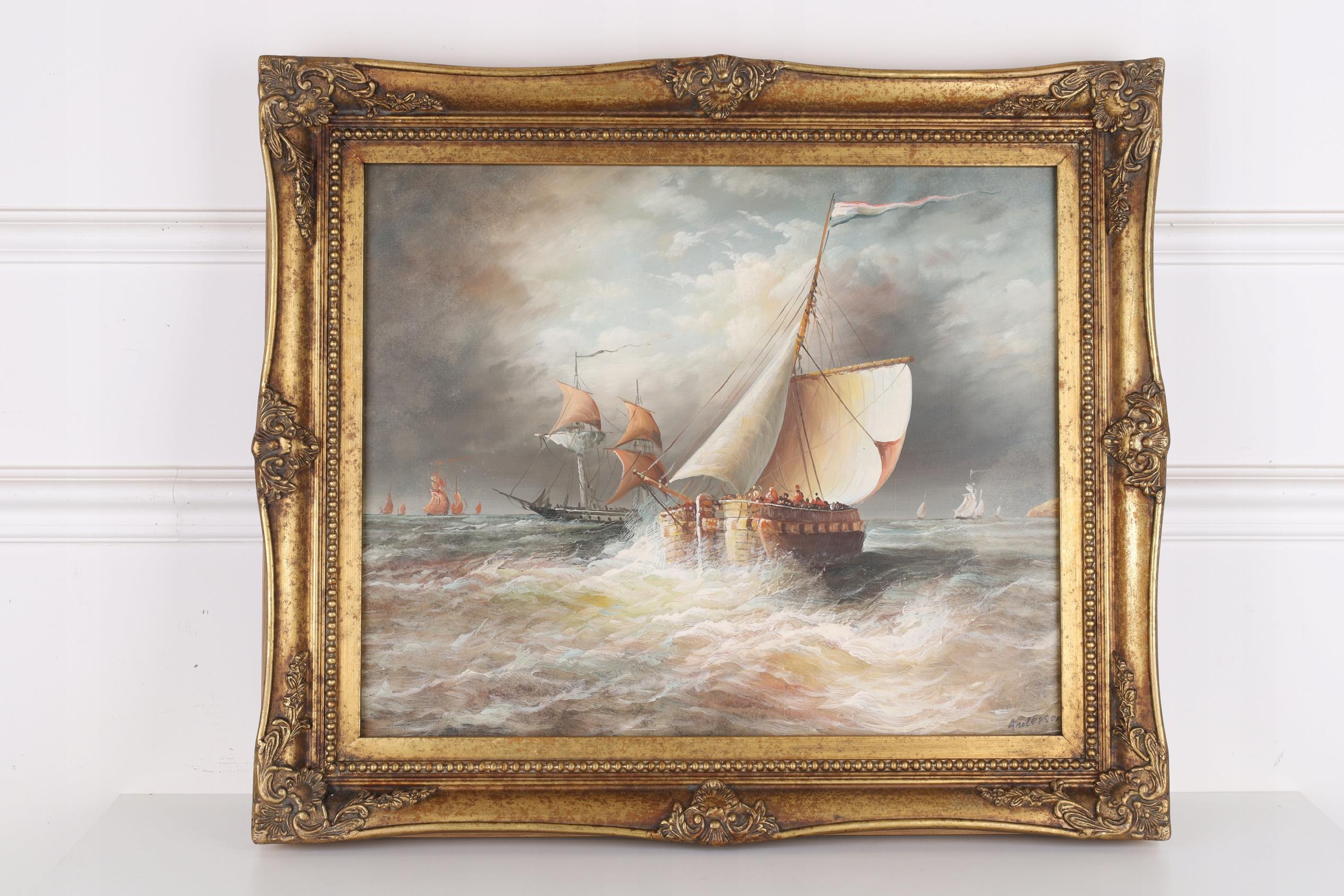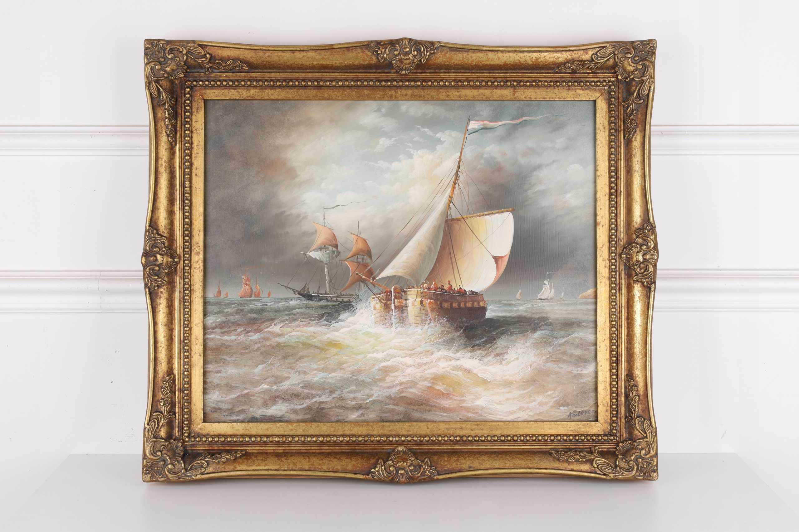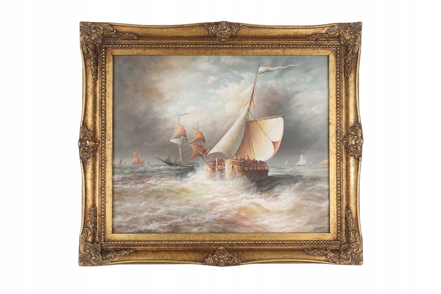 WZBURZONE MORZE -STATKI-OBRAZ ZŁOTA RAMA – 61 X 71 cm