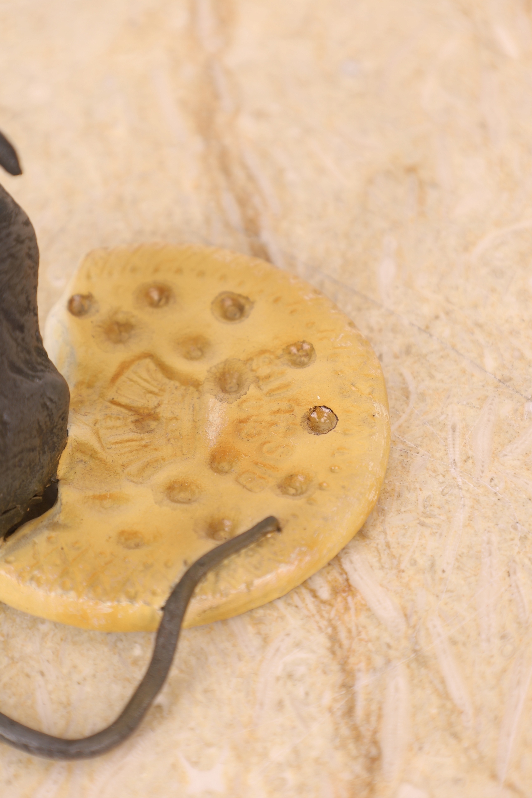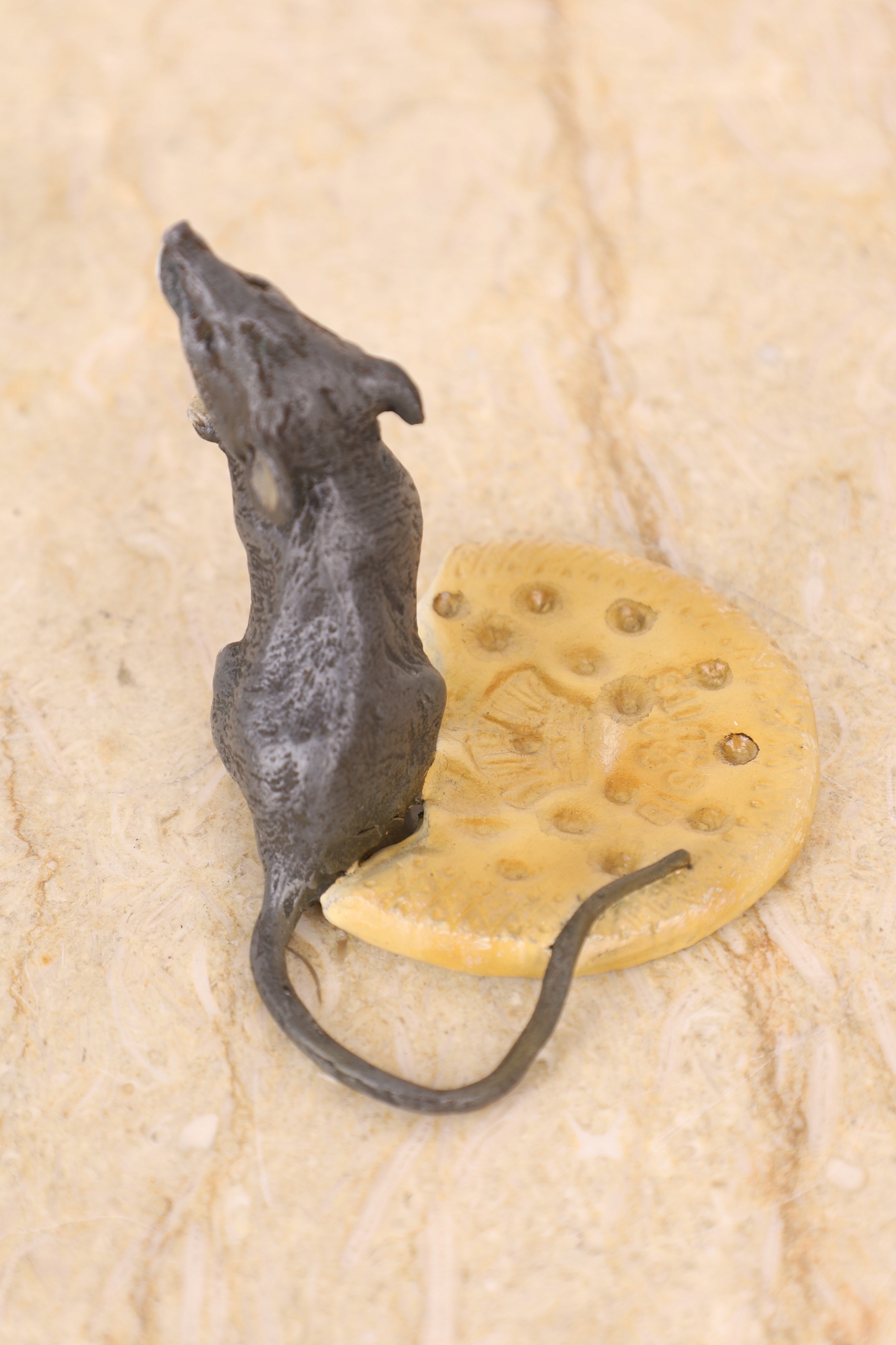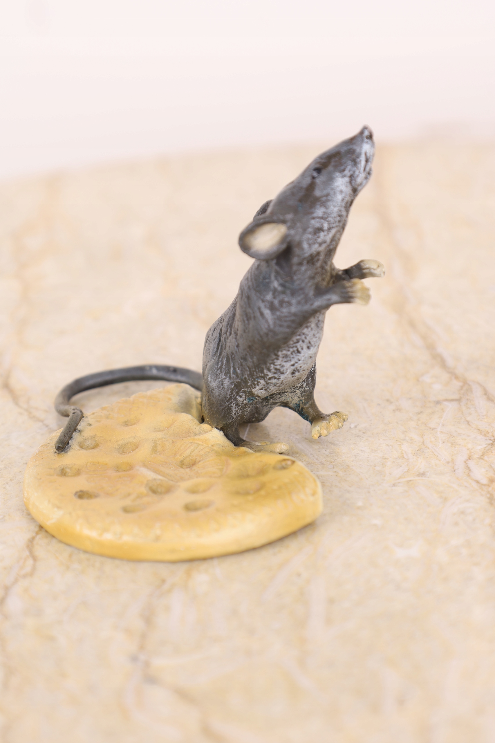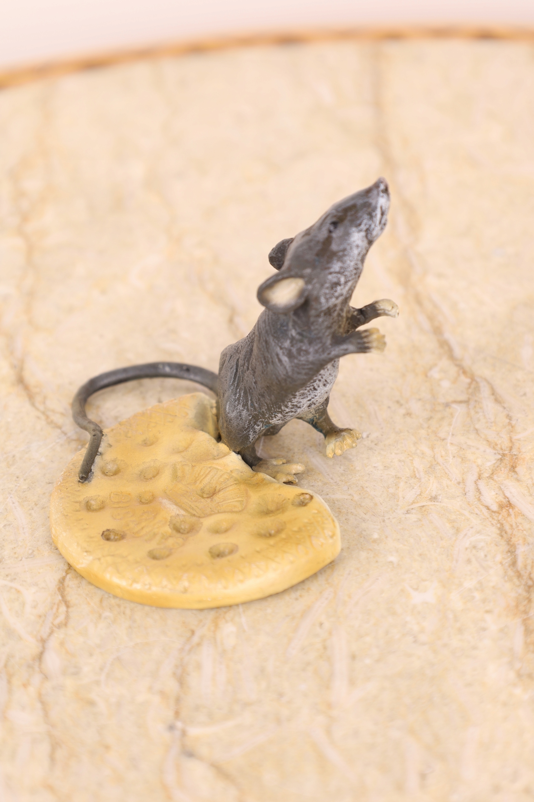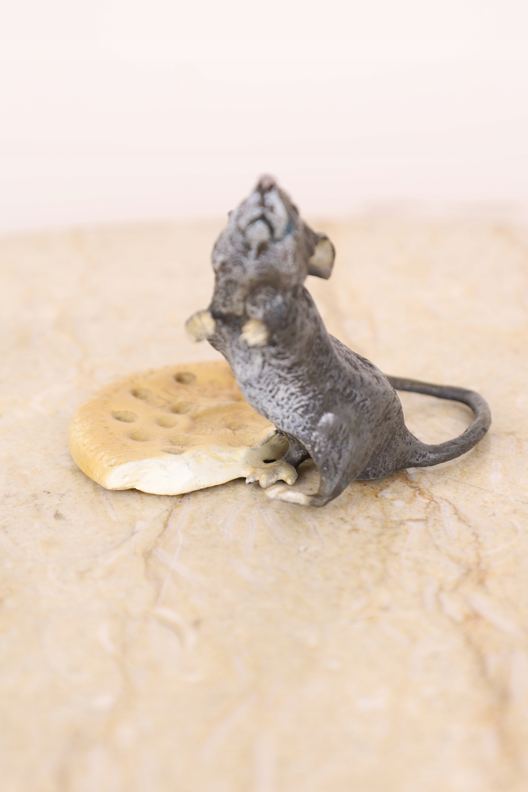 MYSZKA Z SEREM fig. z brązu KOLOROWA mysz