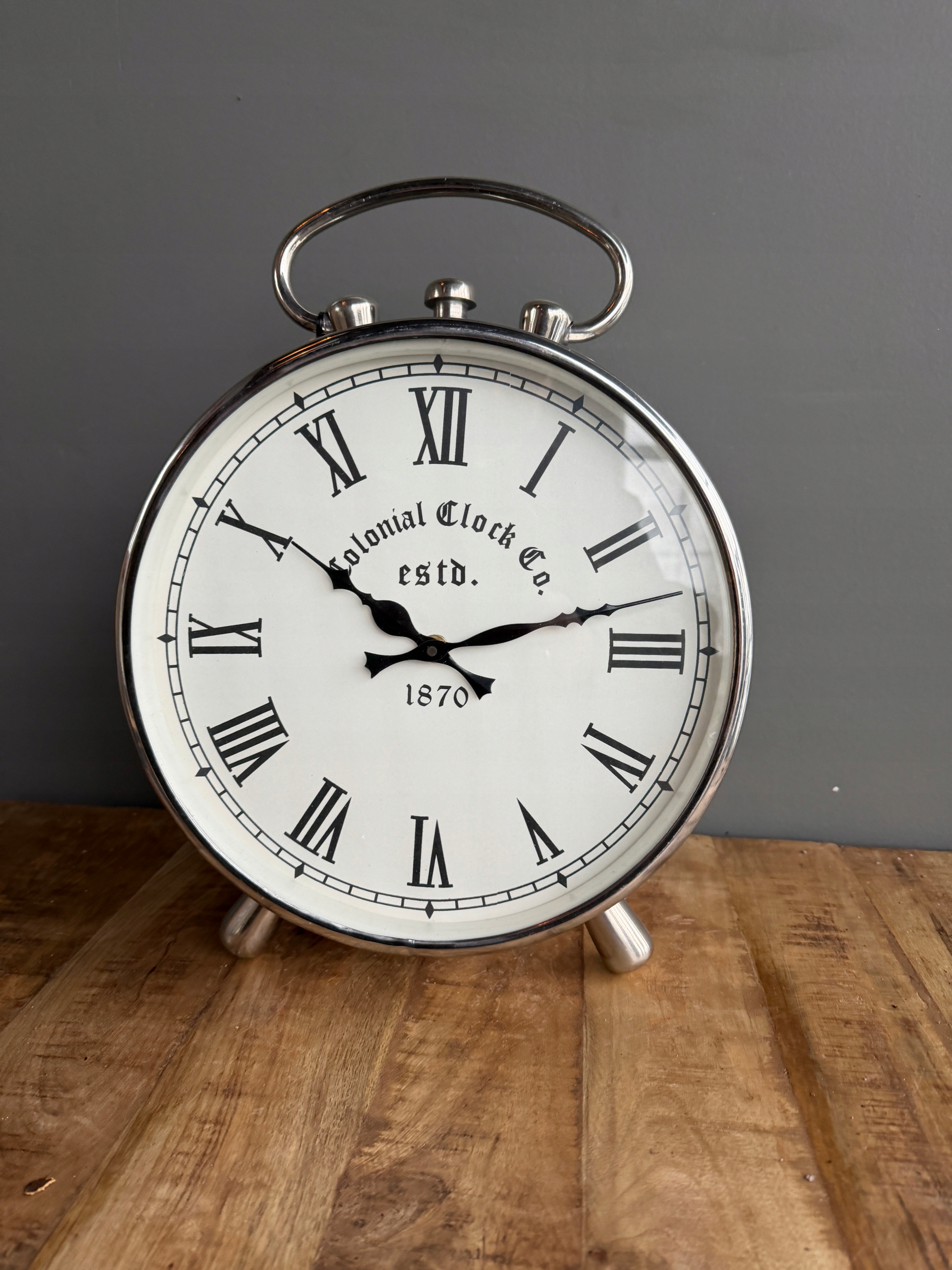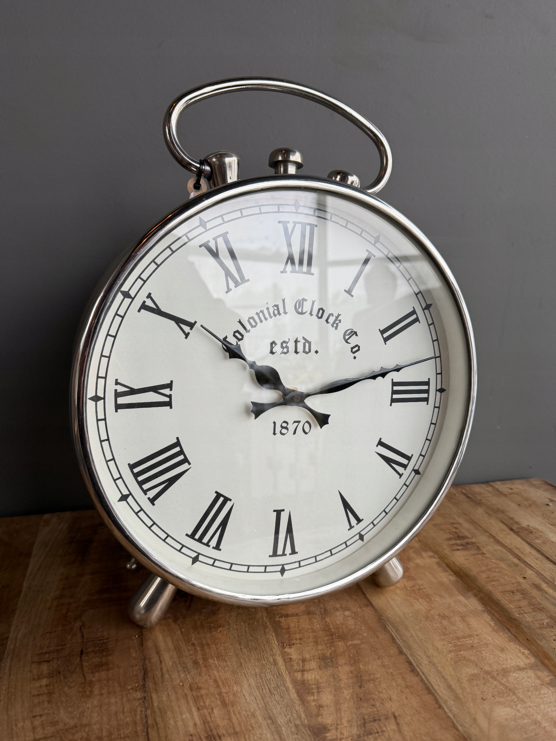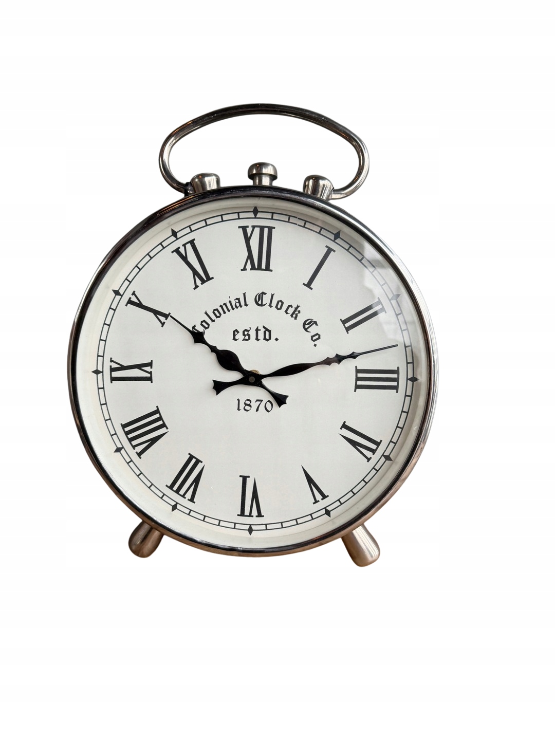 Niklowany zegar kominkowy srebrny – sprawny