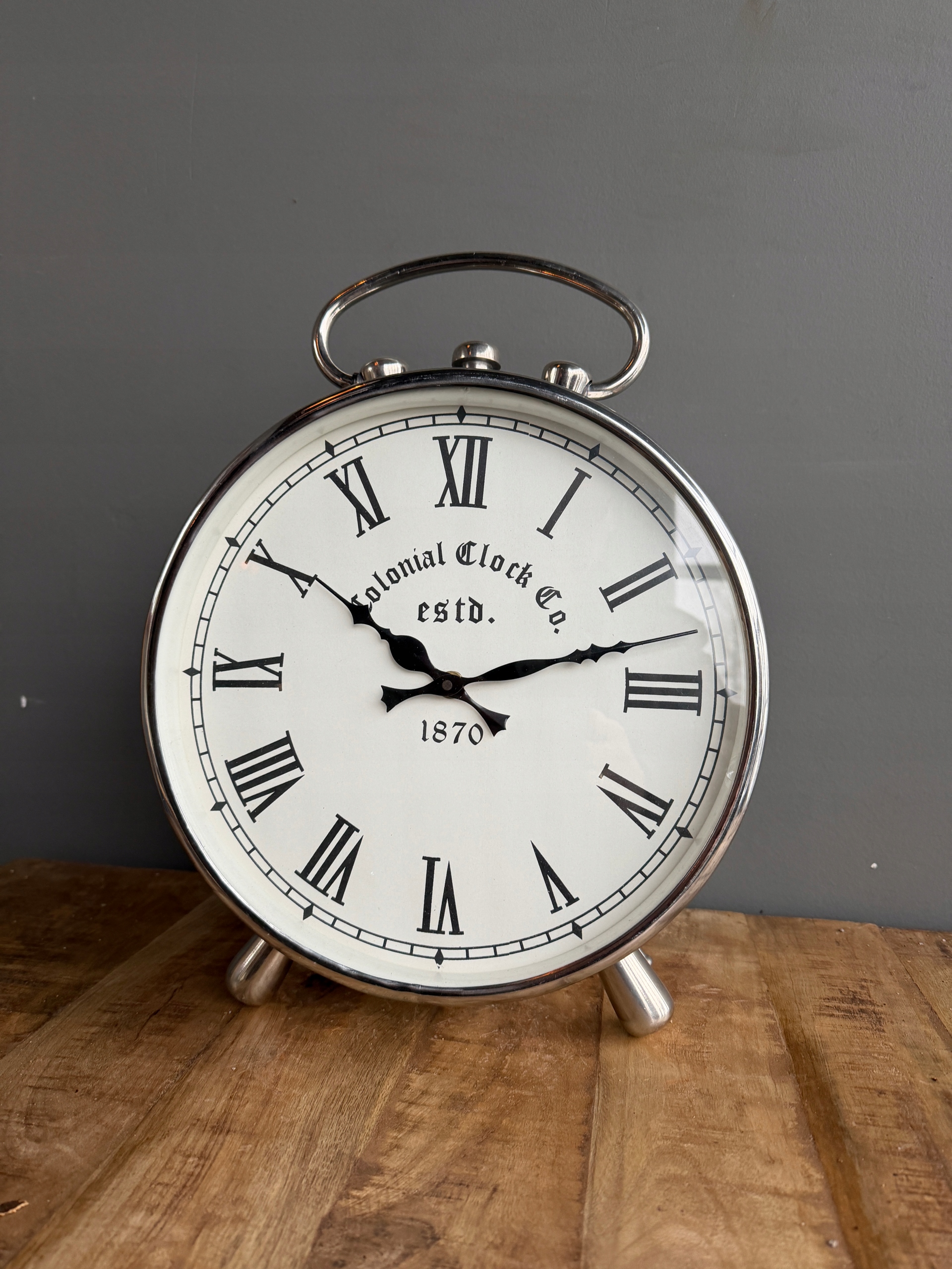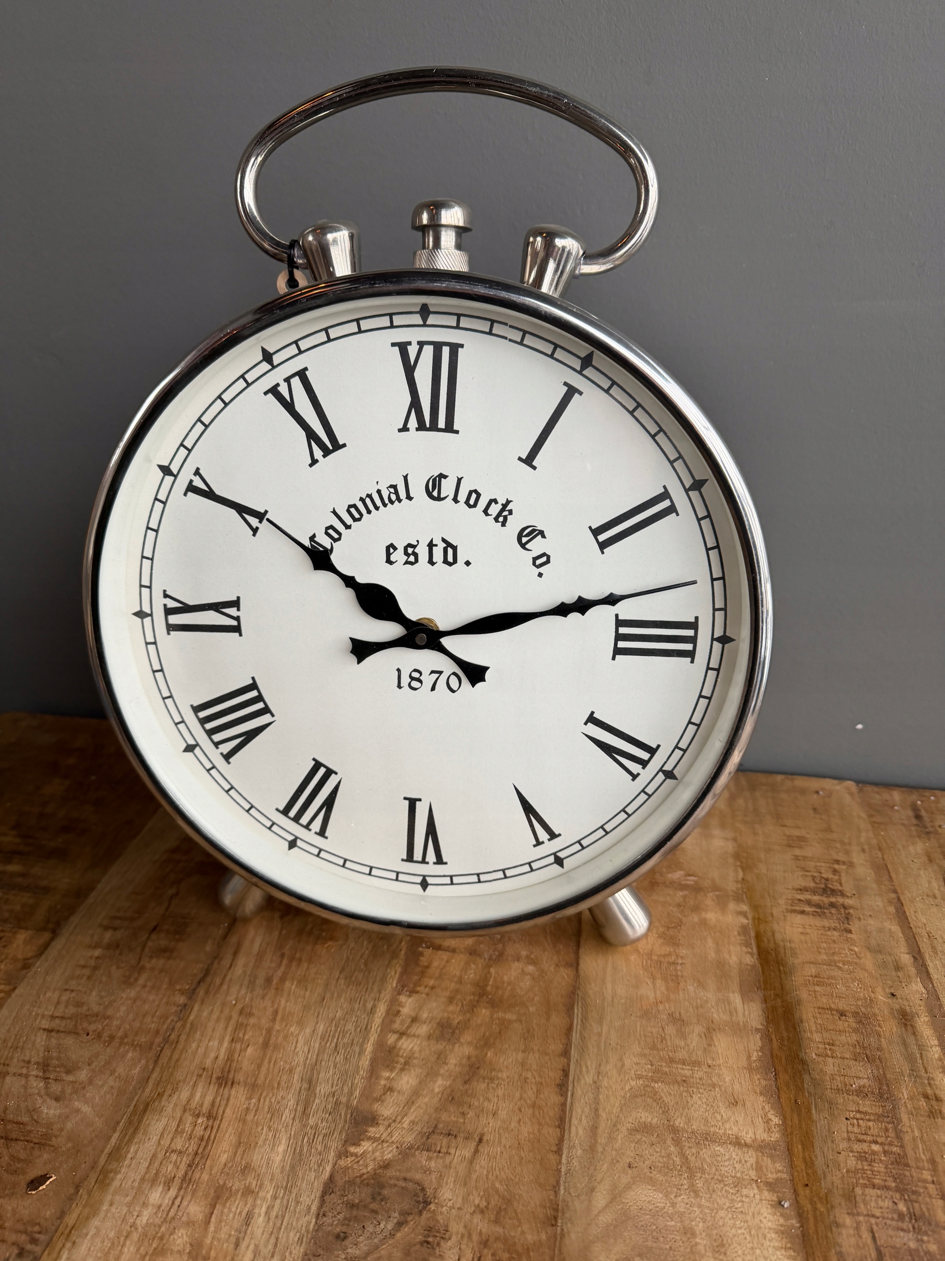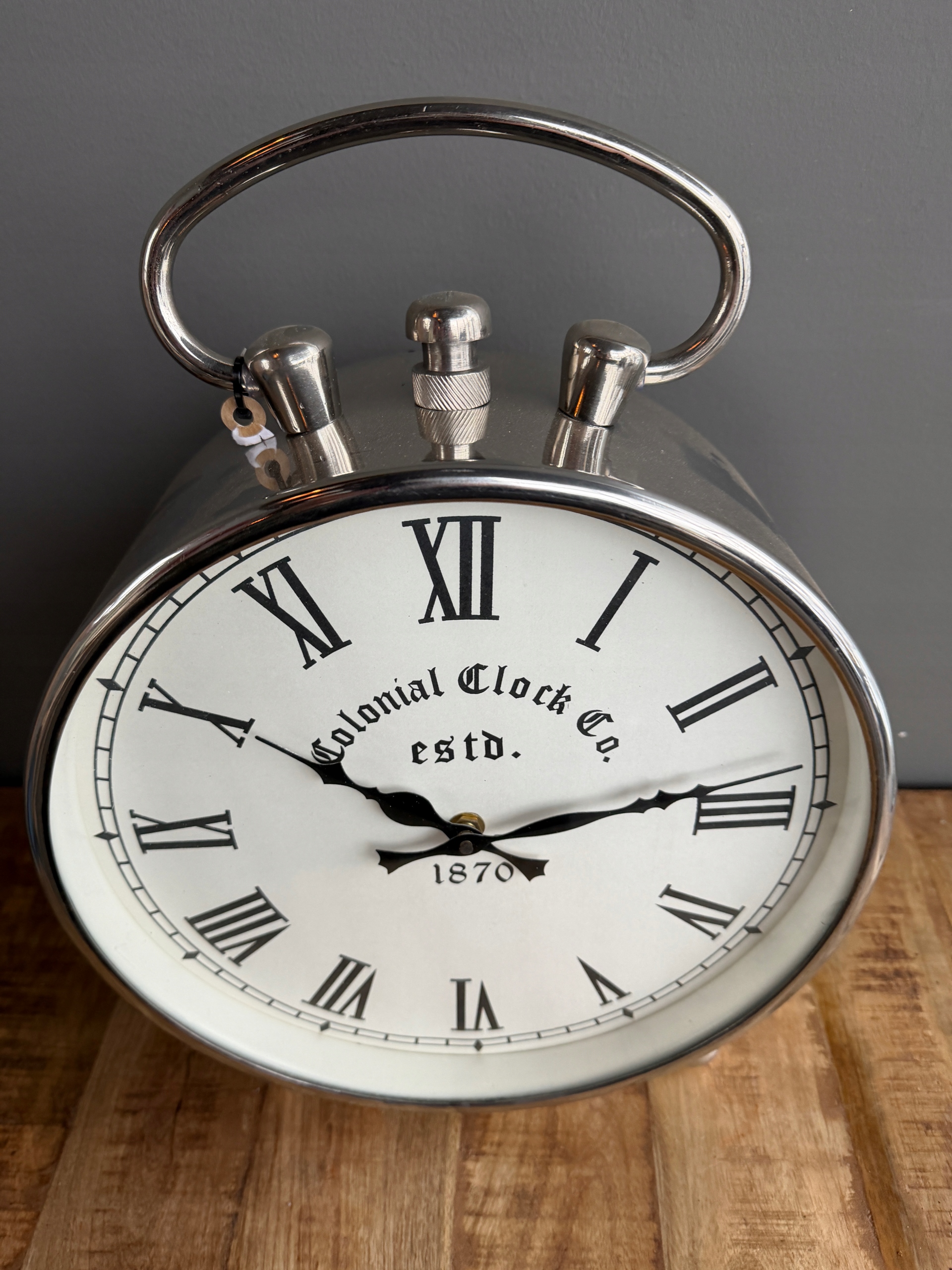 Niklowany zegar kominkowy srebrny – sprawny