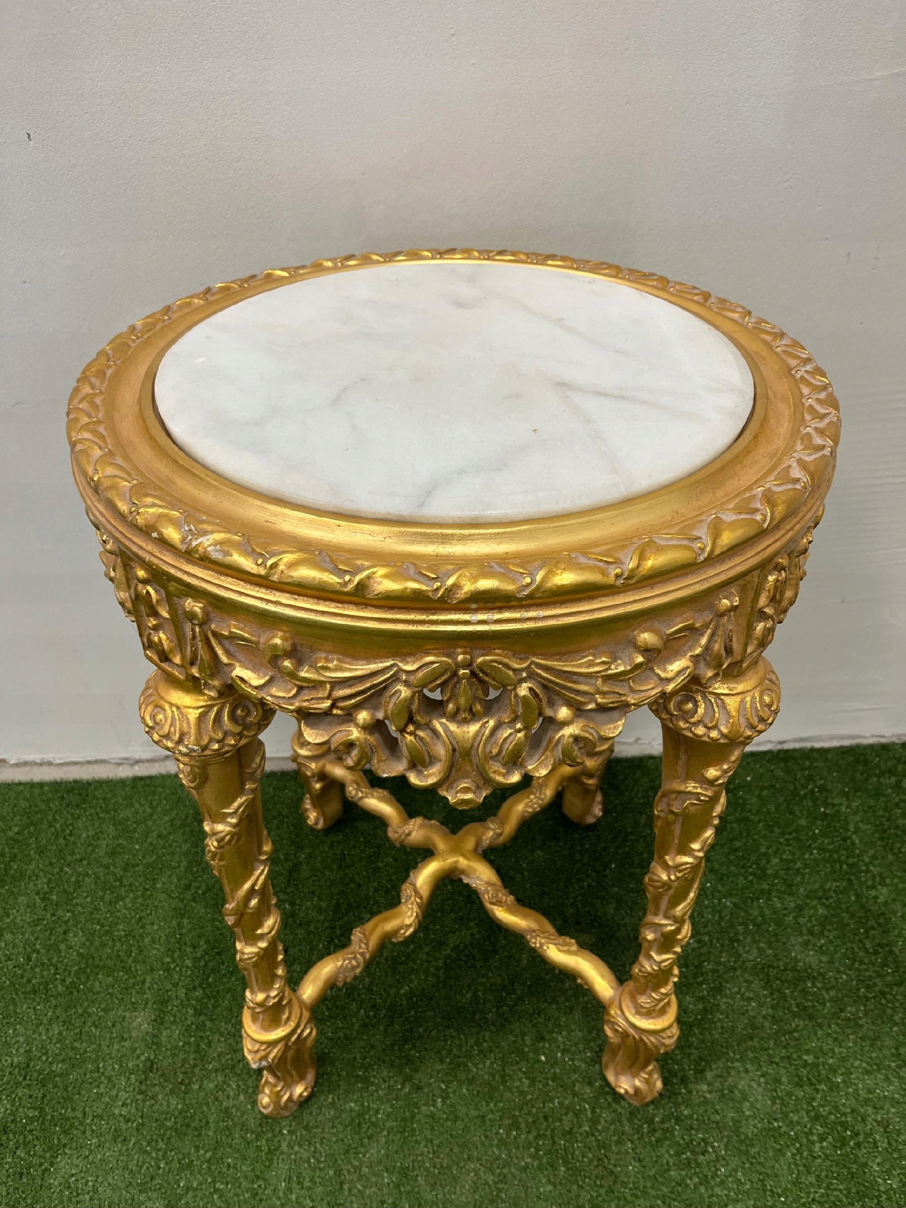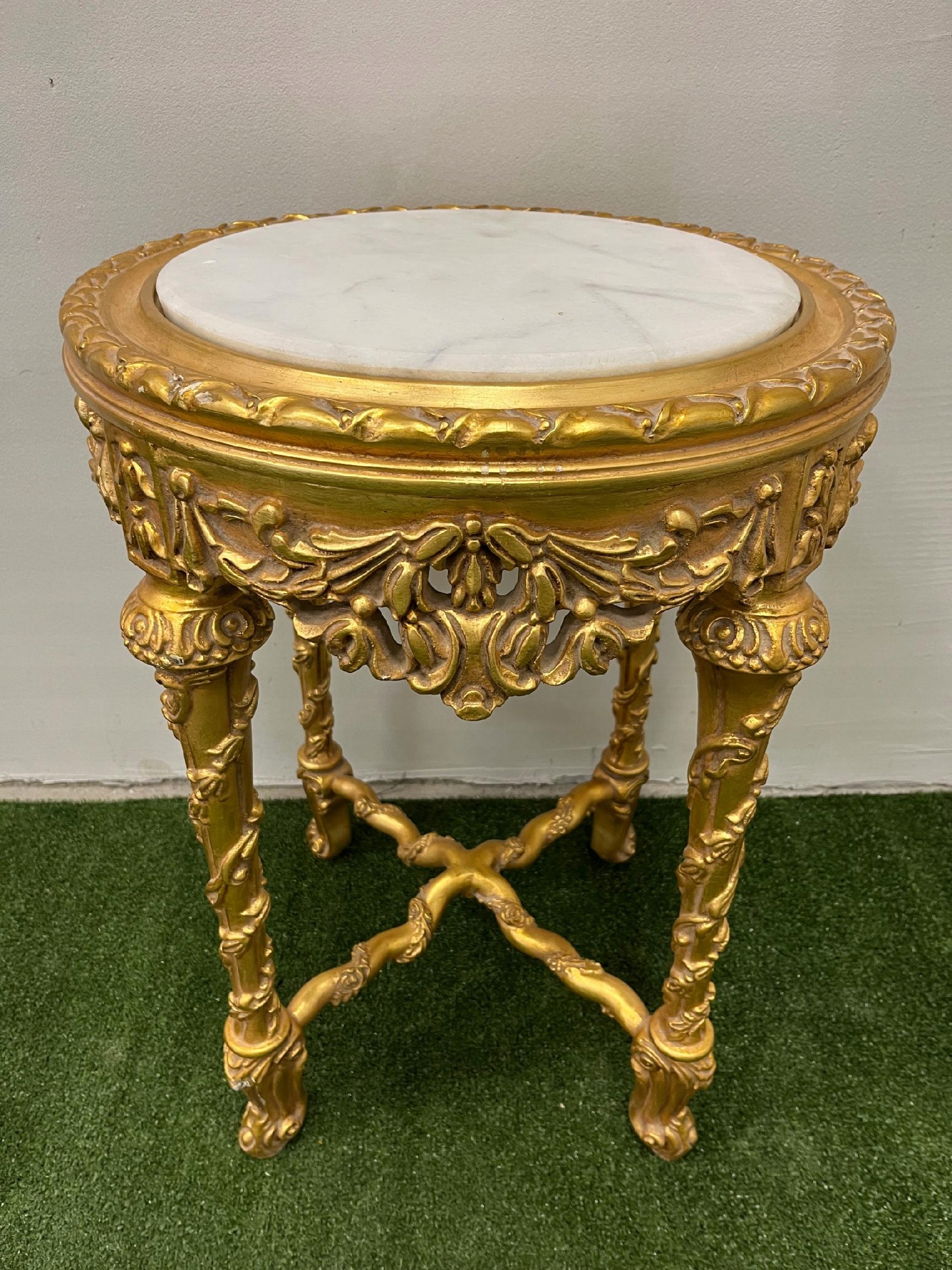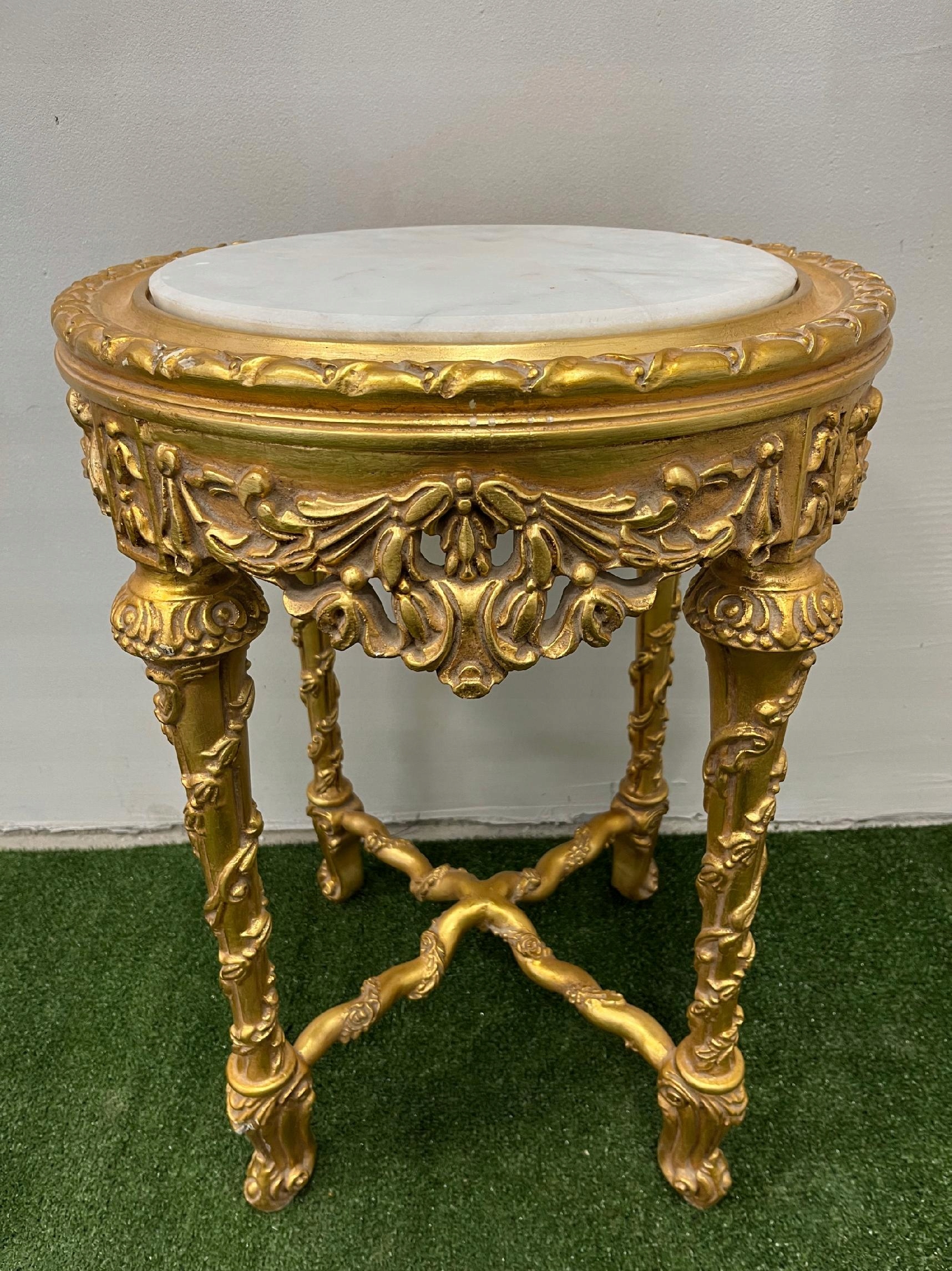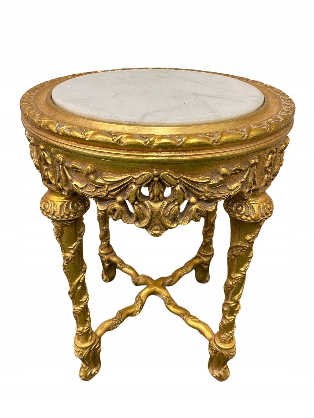 OKRĄGŁY KWIETNIK – STOLIK z Marmurowym Blatem złoty