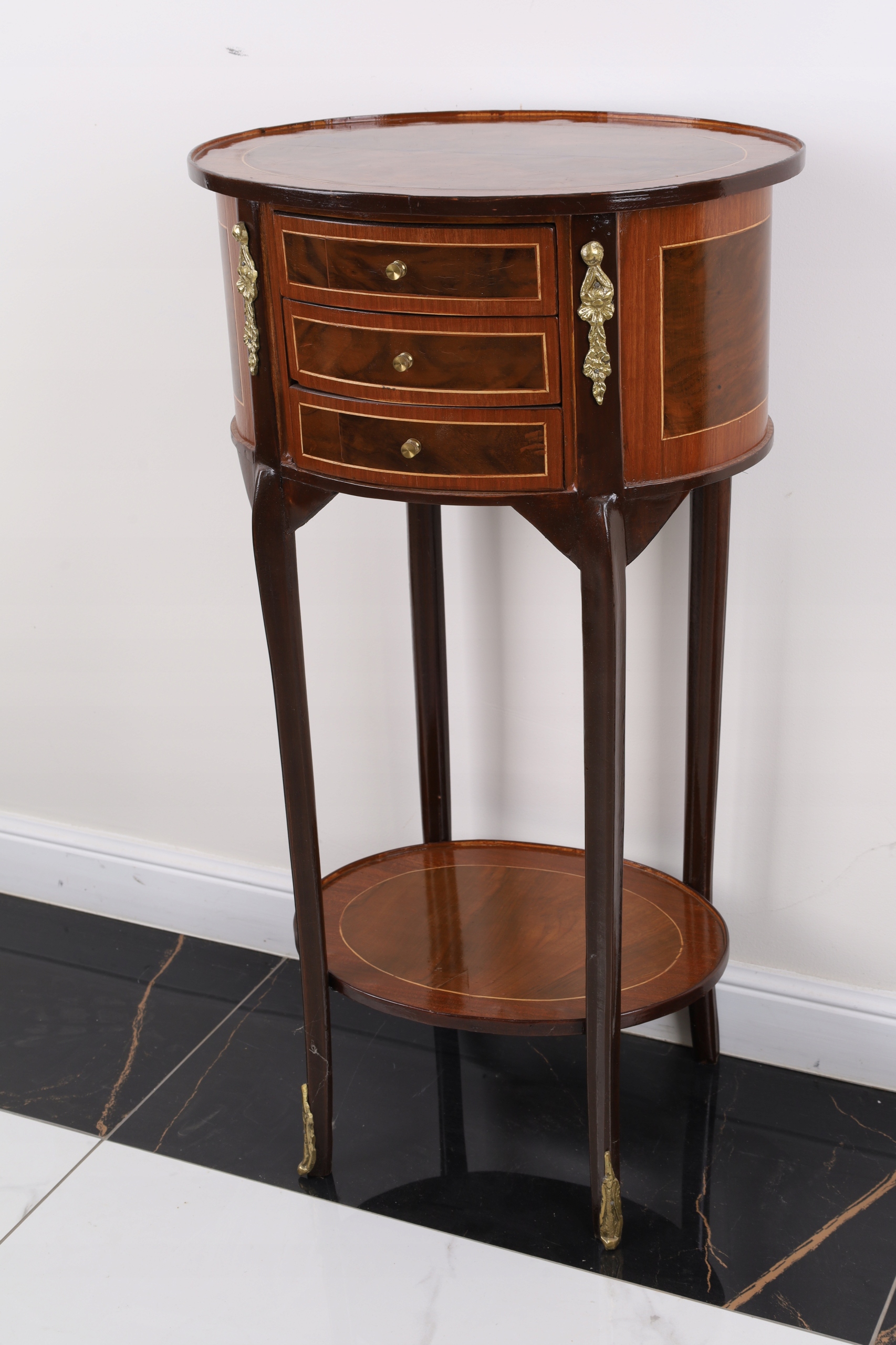 OWALNY STOLIK- Komoda okucia mosiądz 3 szufladki