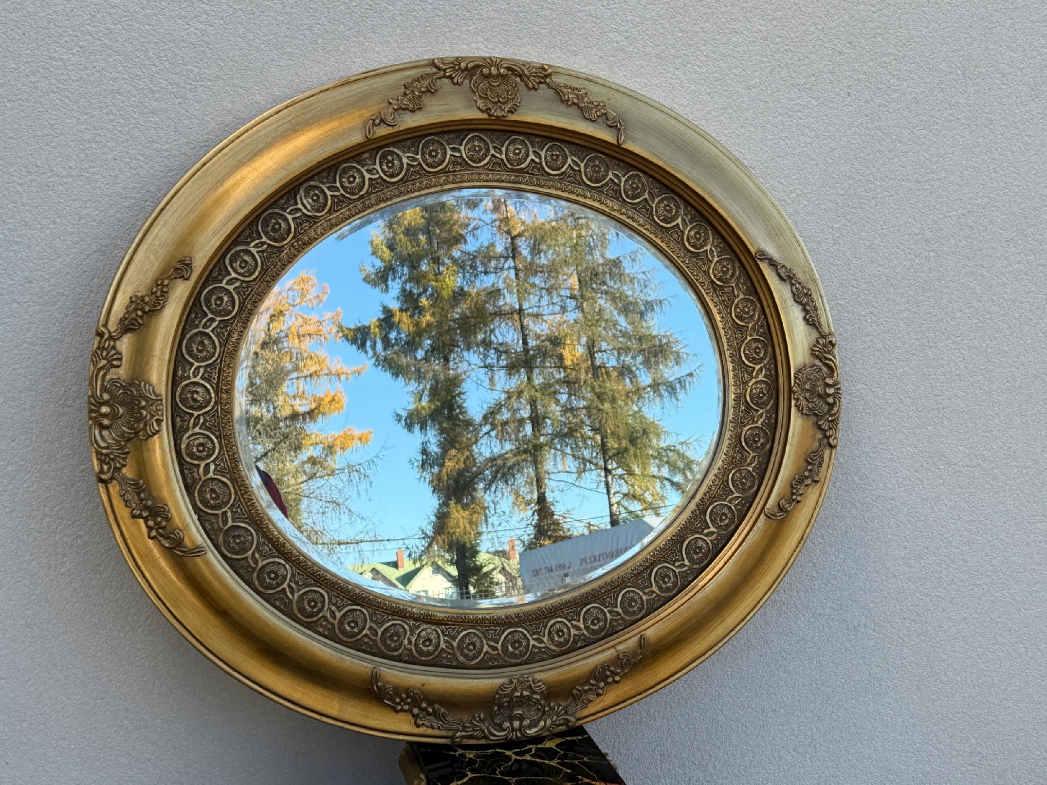 Owalne lustro w stylu retro Złote