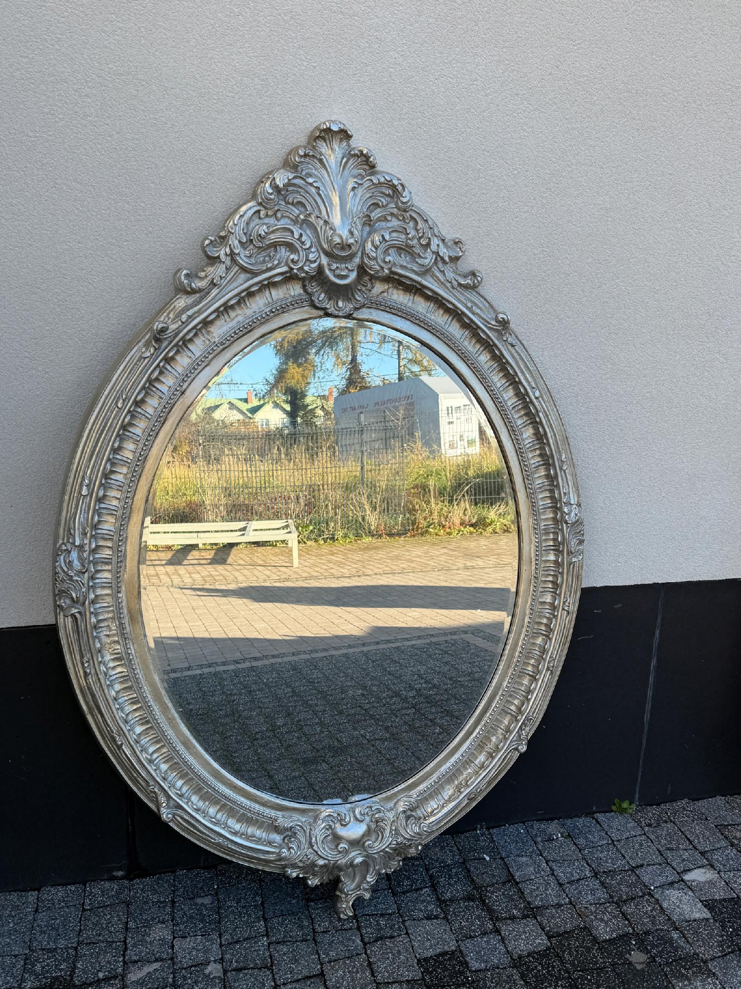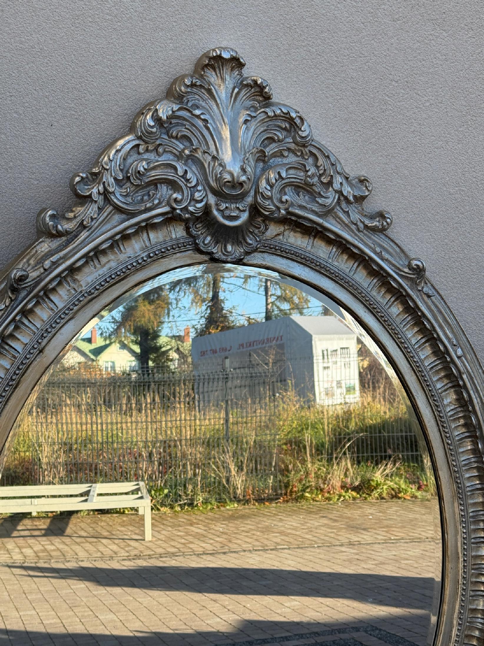 OWALNE SREBRNE LUSTRO Z KORONĄ zwieńczenie