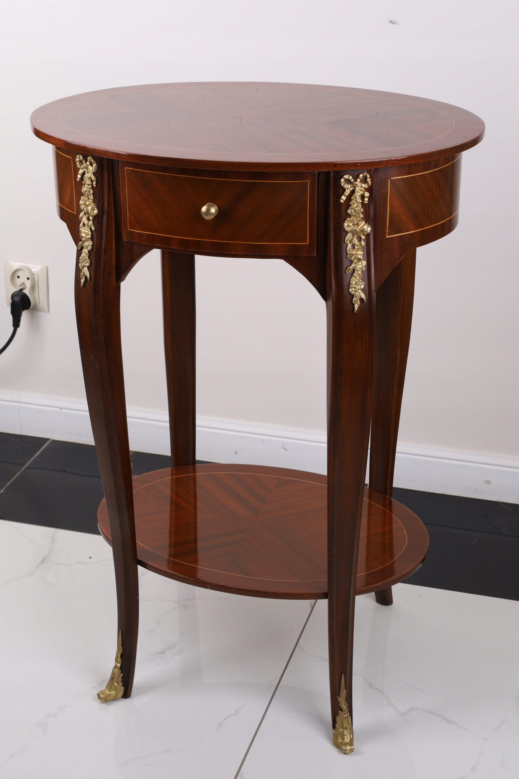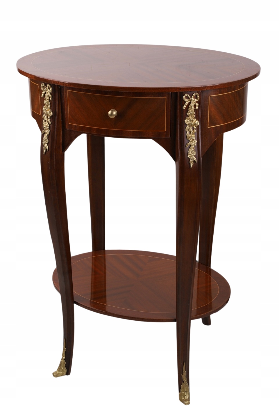 OWALNY STOLIK- KONSOLKA -Z SZUFLADKĄ okucia mosiądz