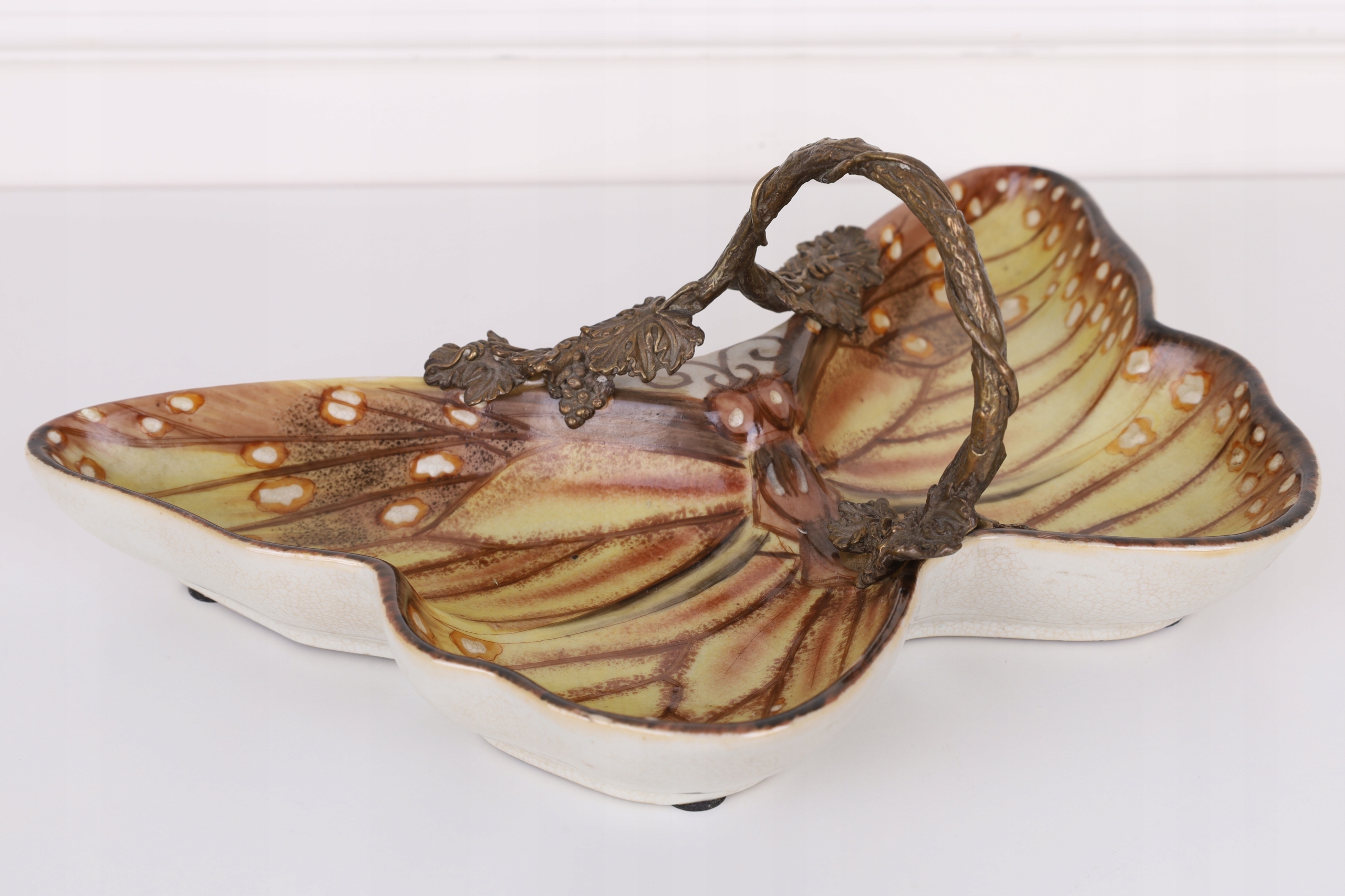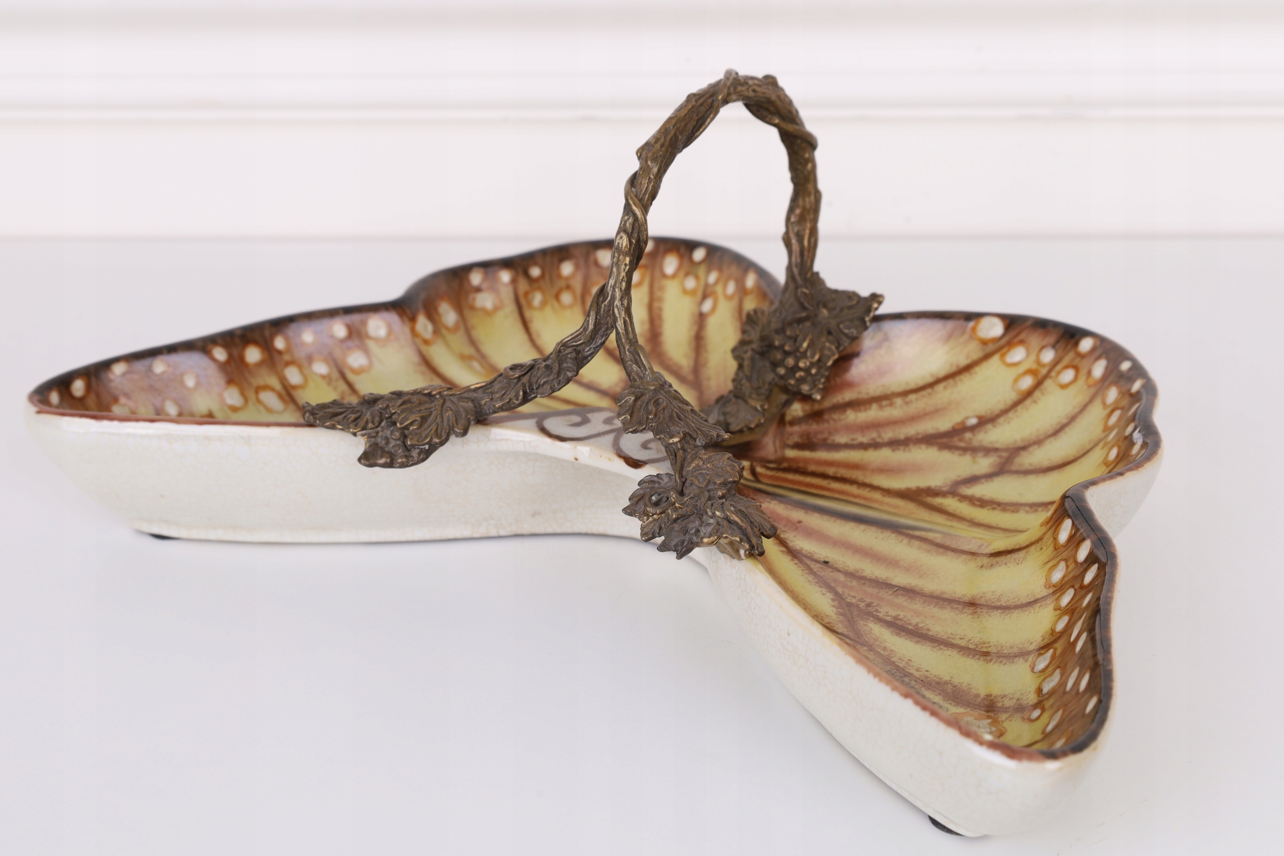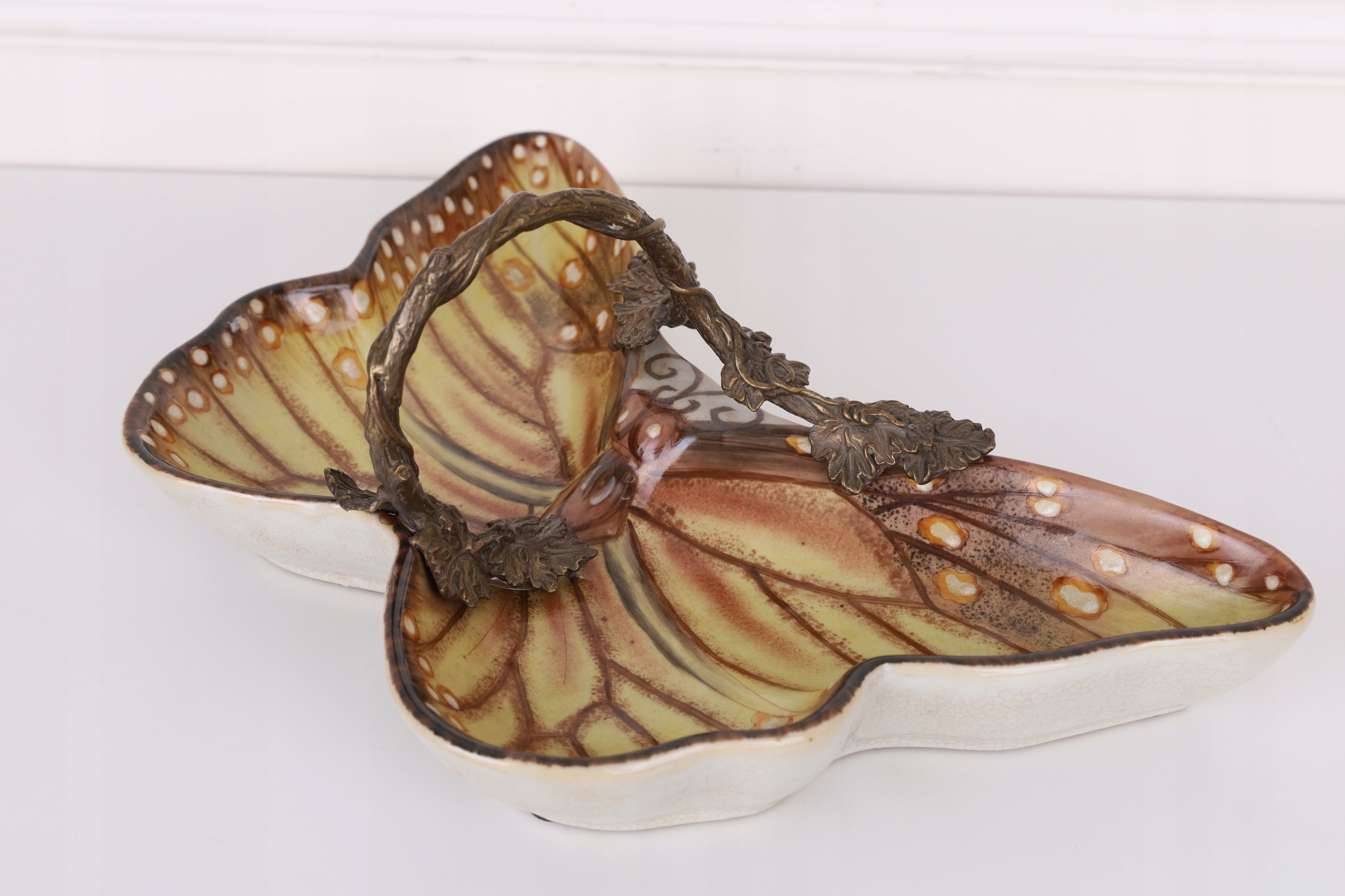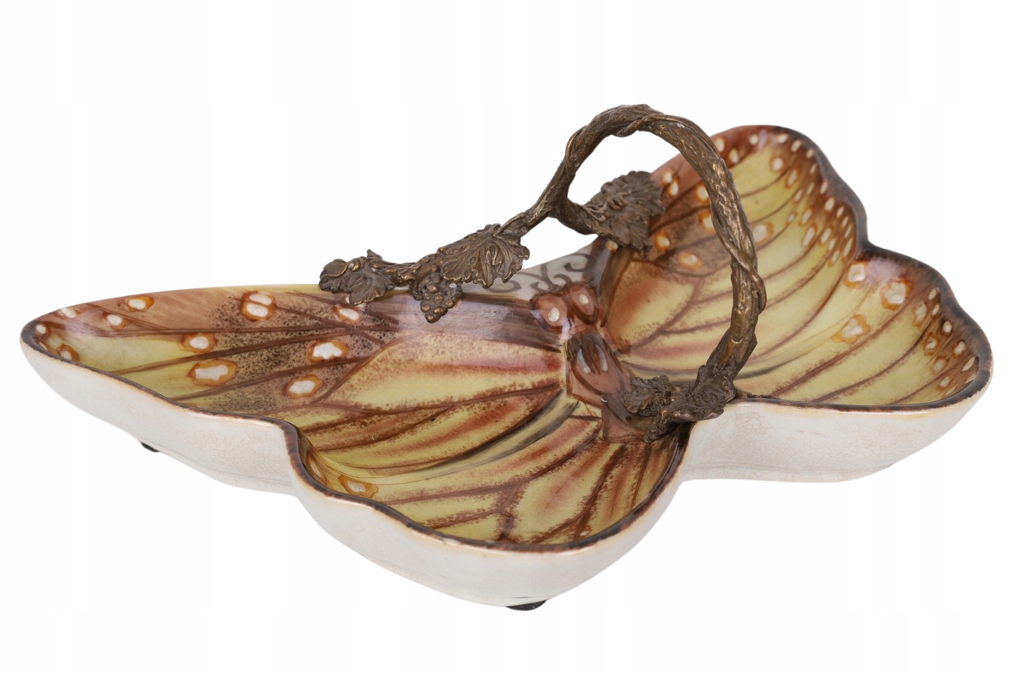 OZDOBNA PATERKA z MOTYLEM -porcelana z brązem