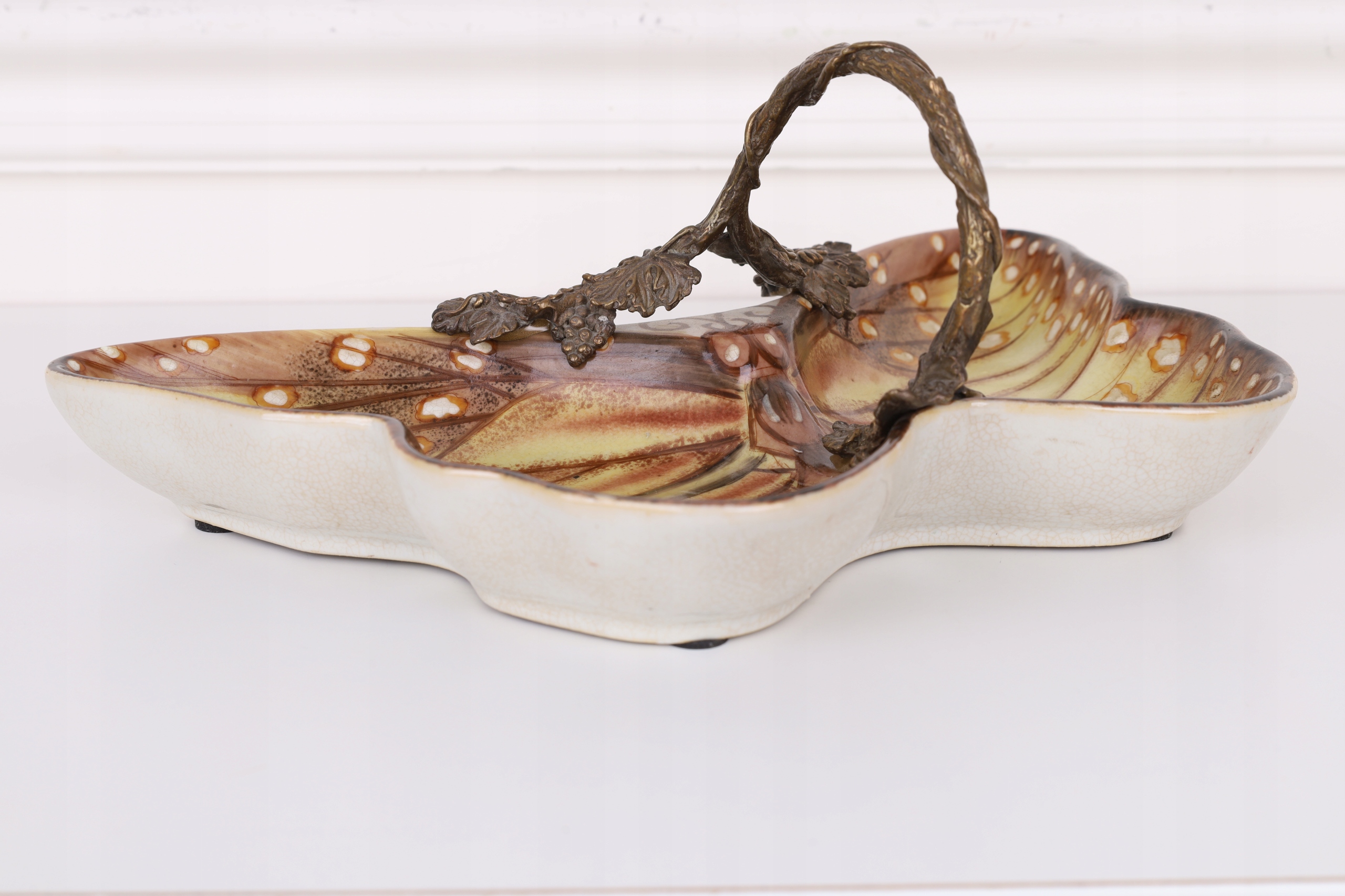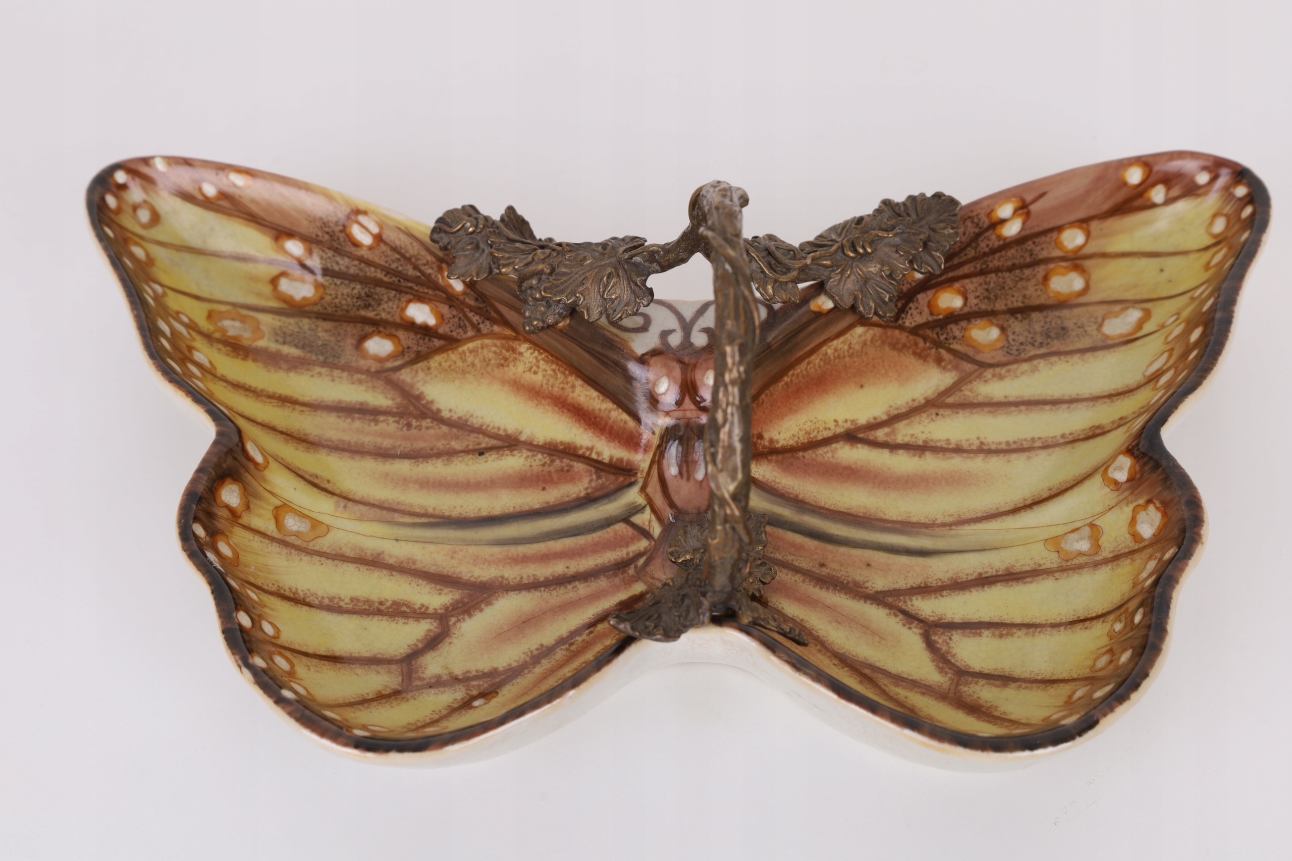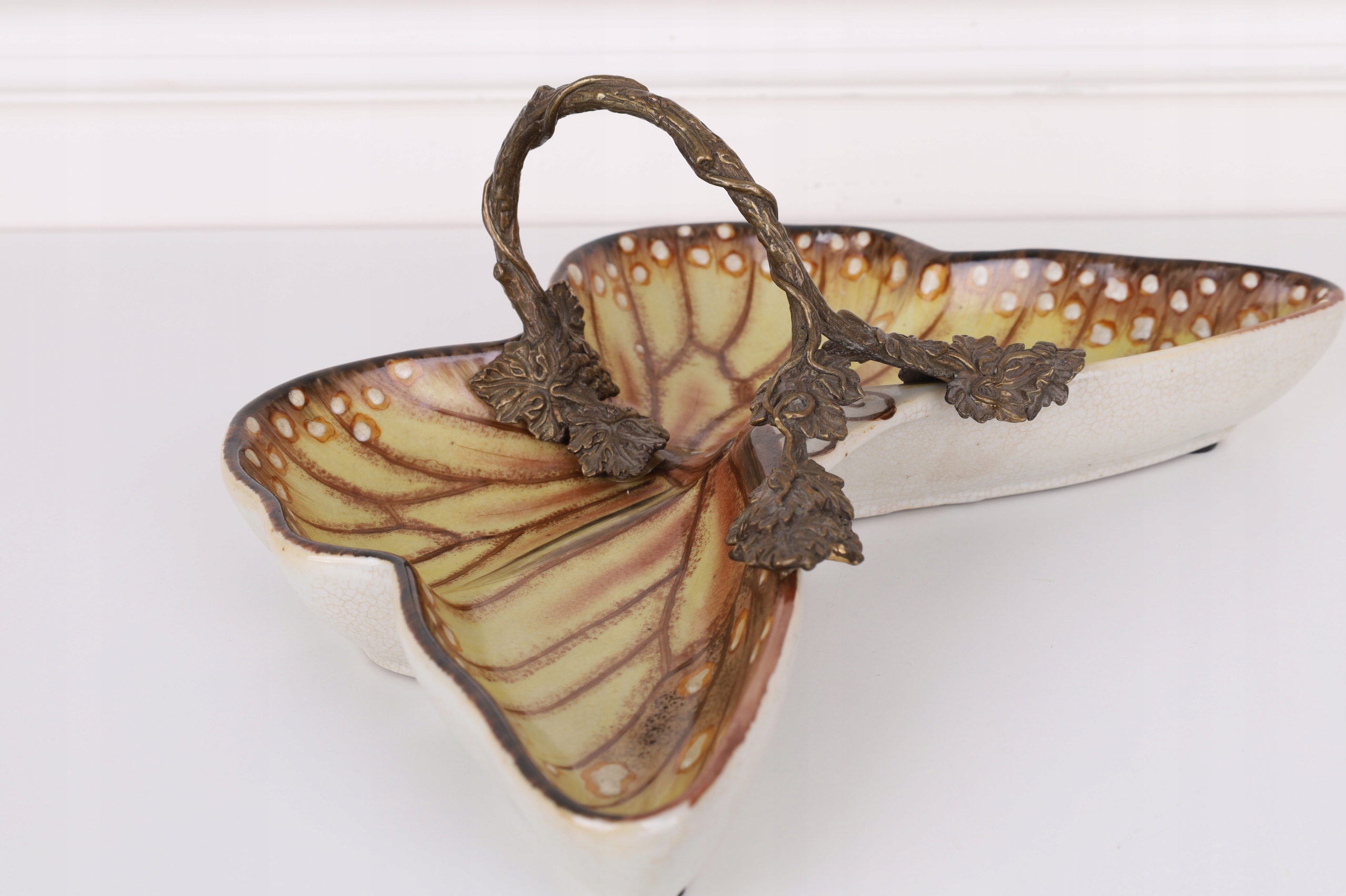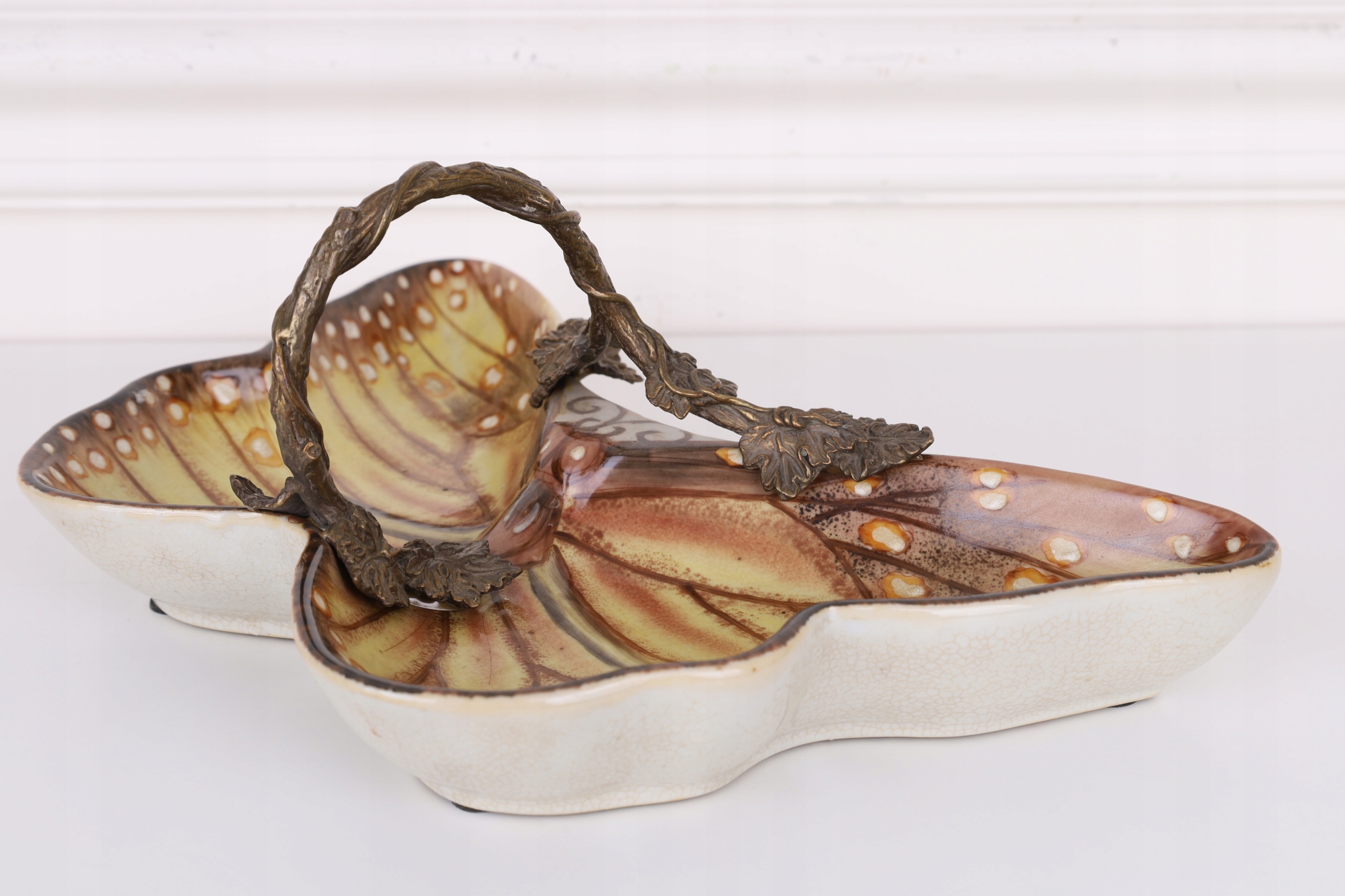 OZDOBNA PATERKA z MOTYLEM -porcelana z brązem