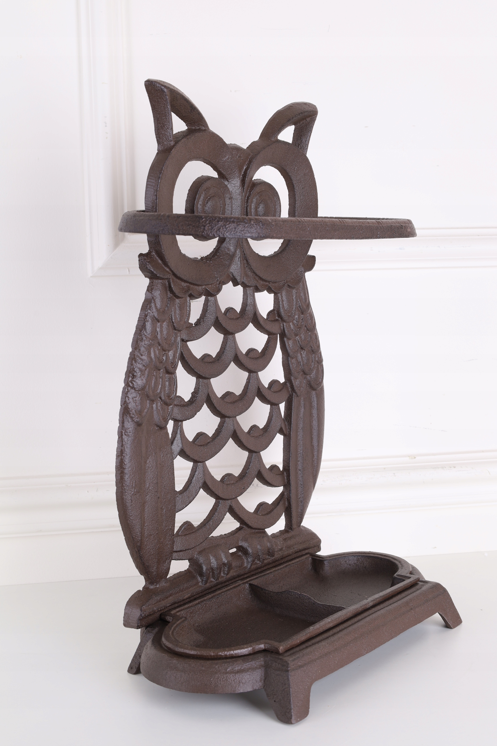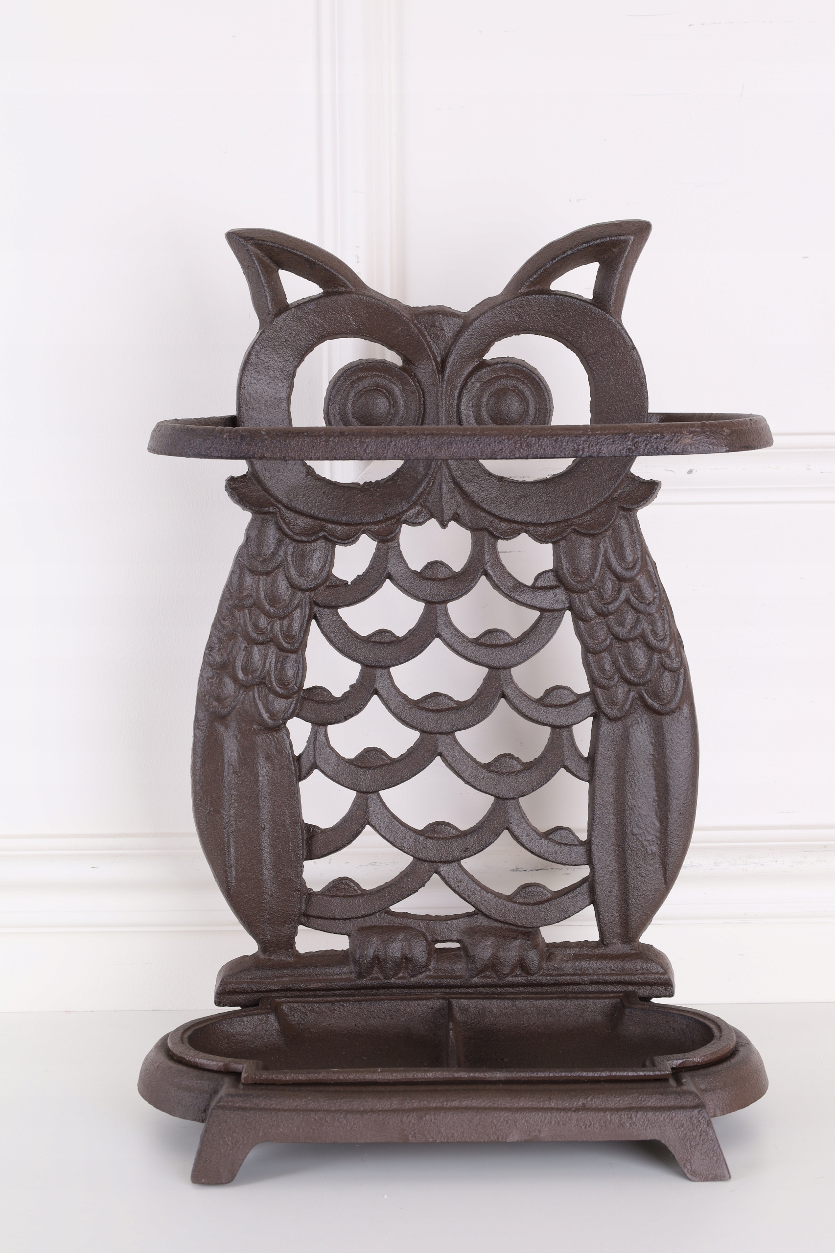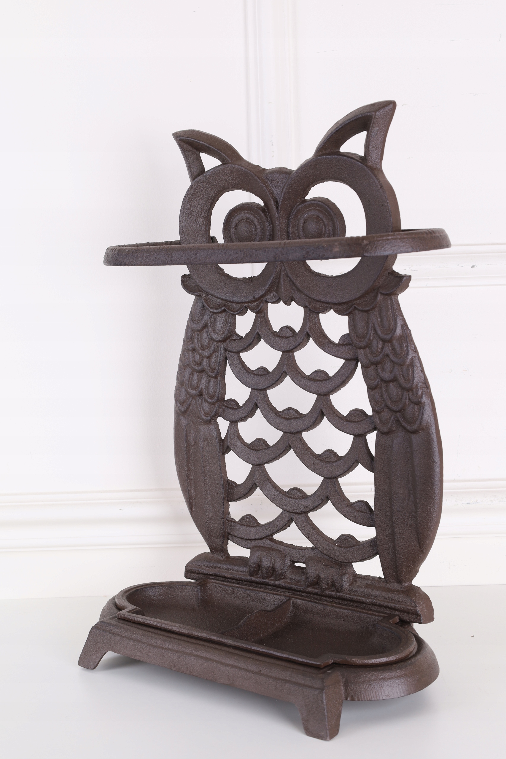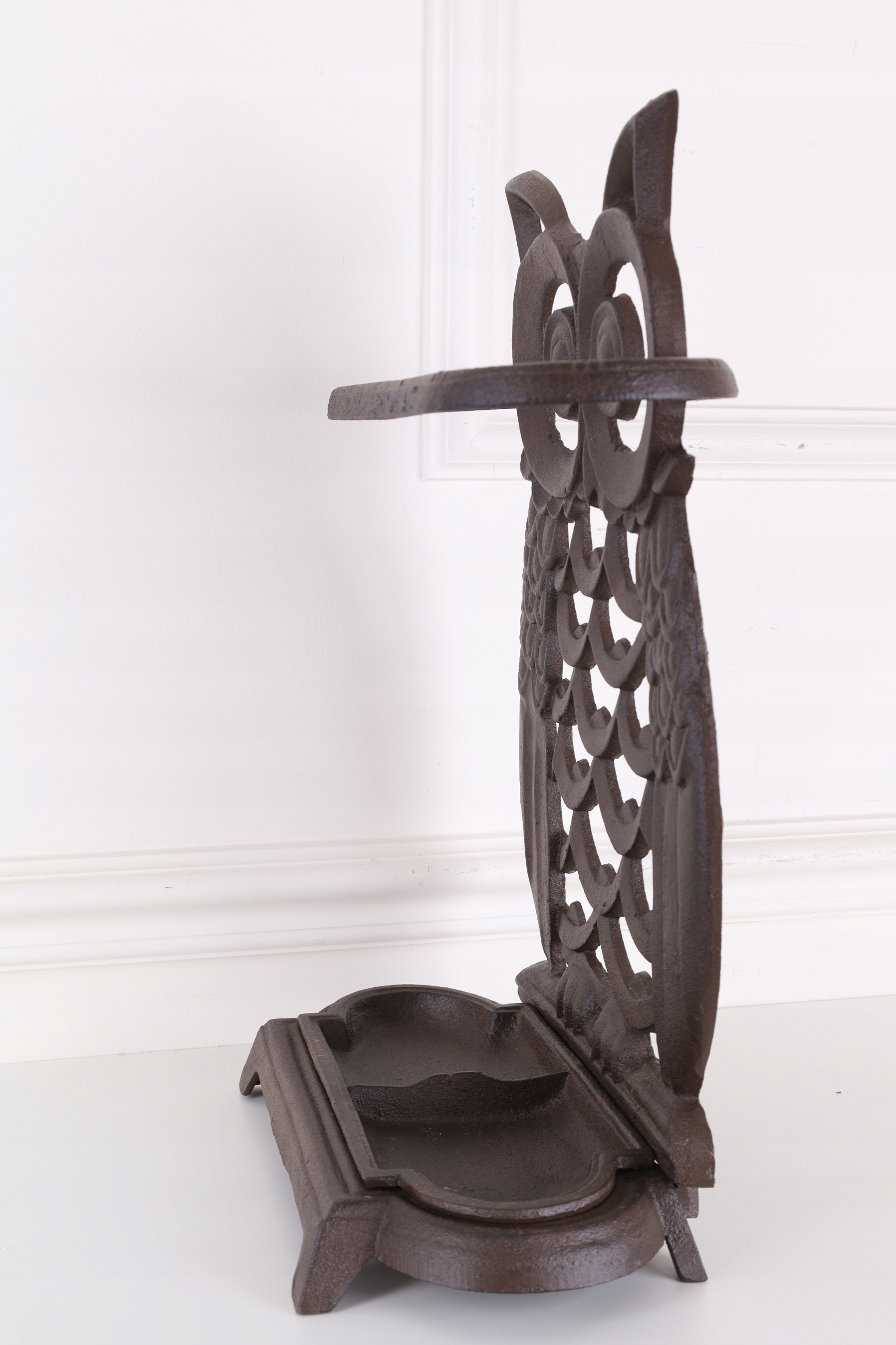 PARASOLNIK -ŻELIWNY STOJAK NA PARASOLE- SOWA, BRĄZOWY