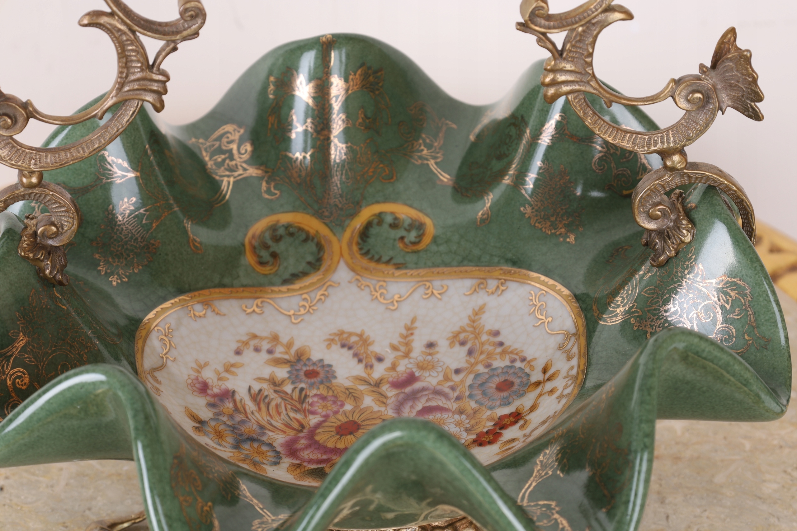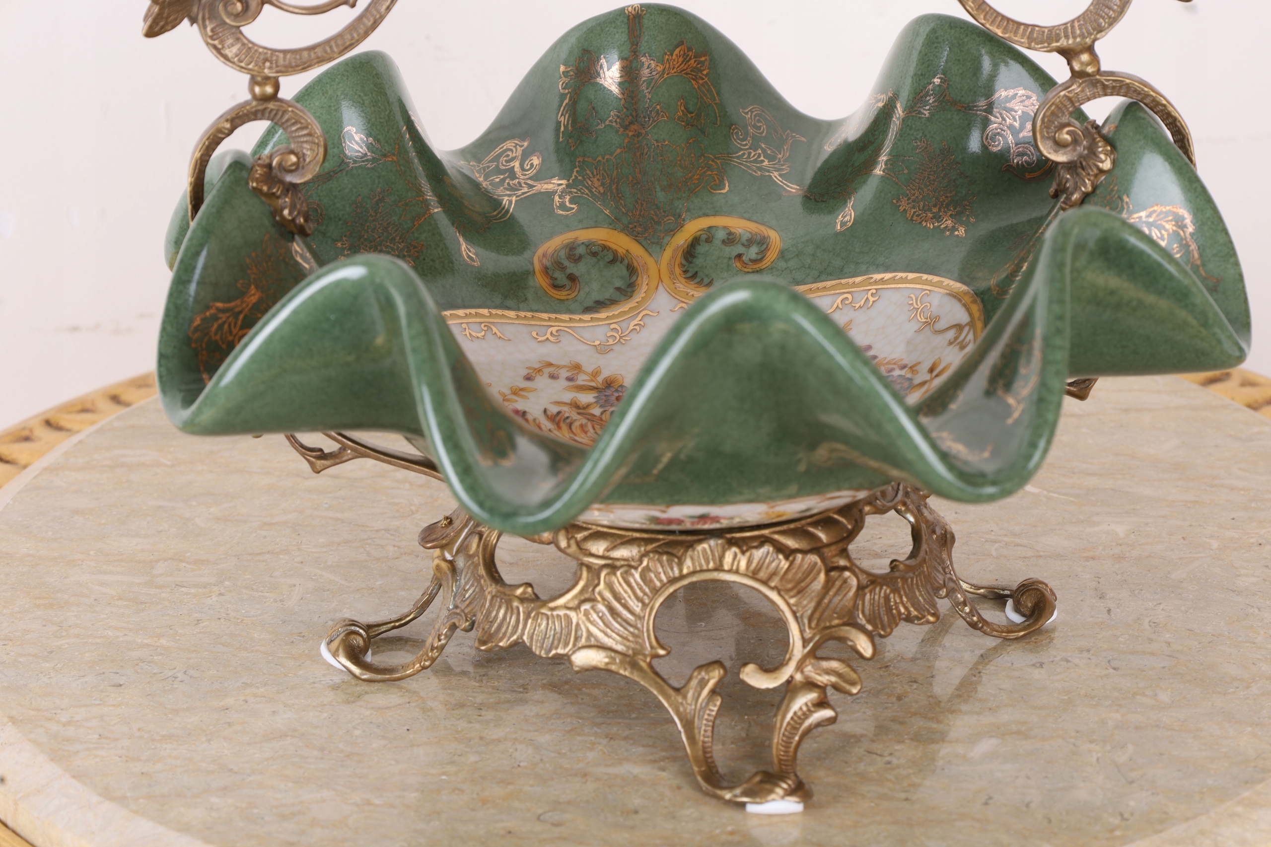 PATERA ZIELONY KOSZYCZEK – PORCELANA-BRĄZ