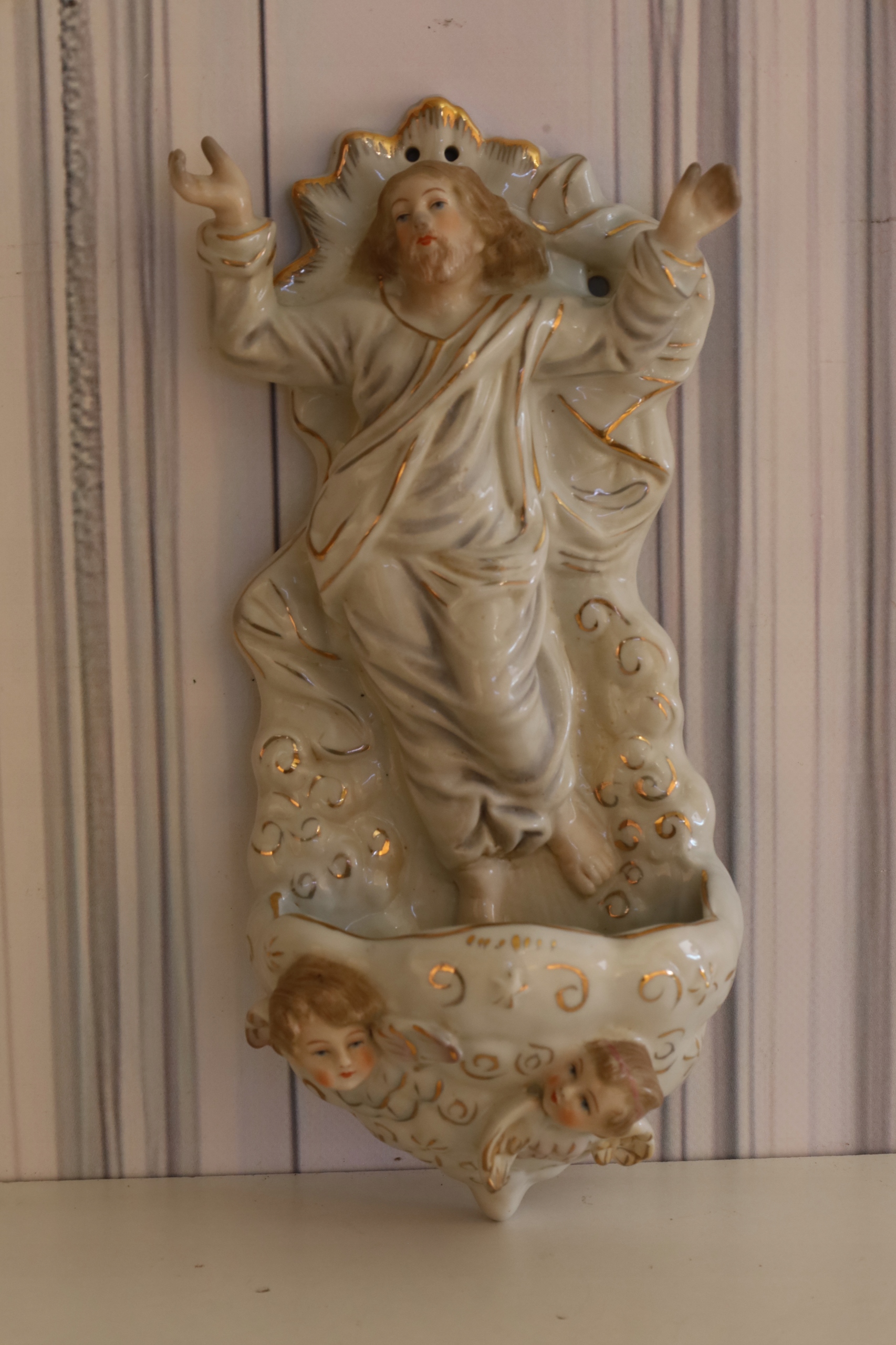 Porcelanowa KROPIELNICA ZDOBIONA ANIOŁKAMI