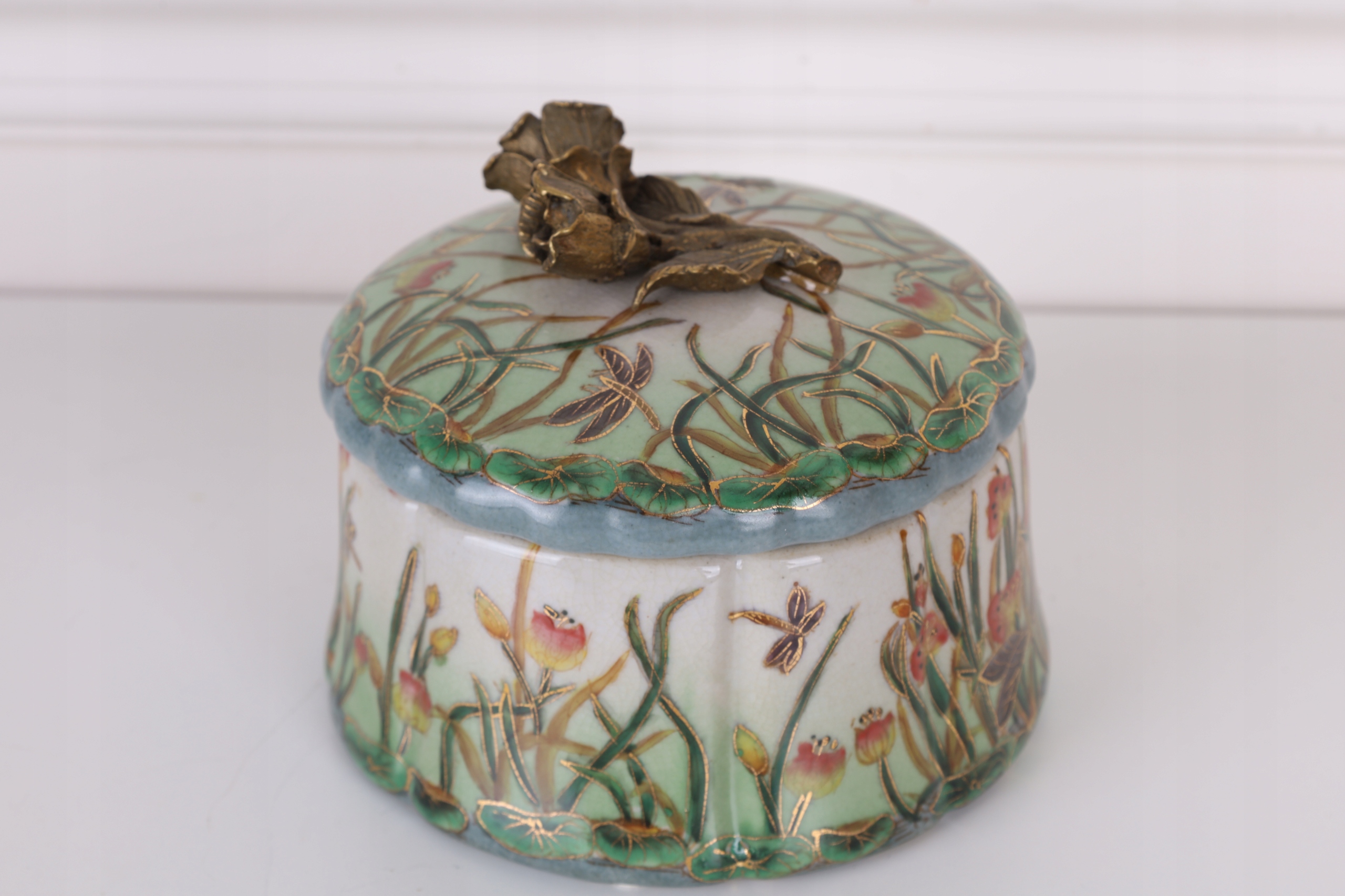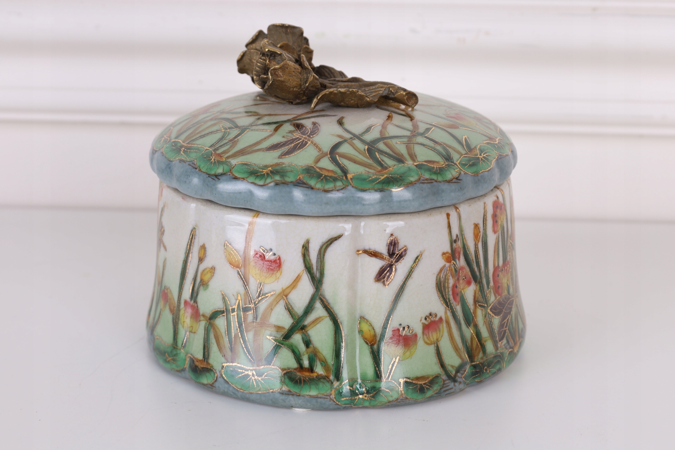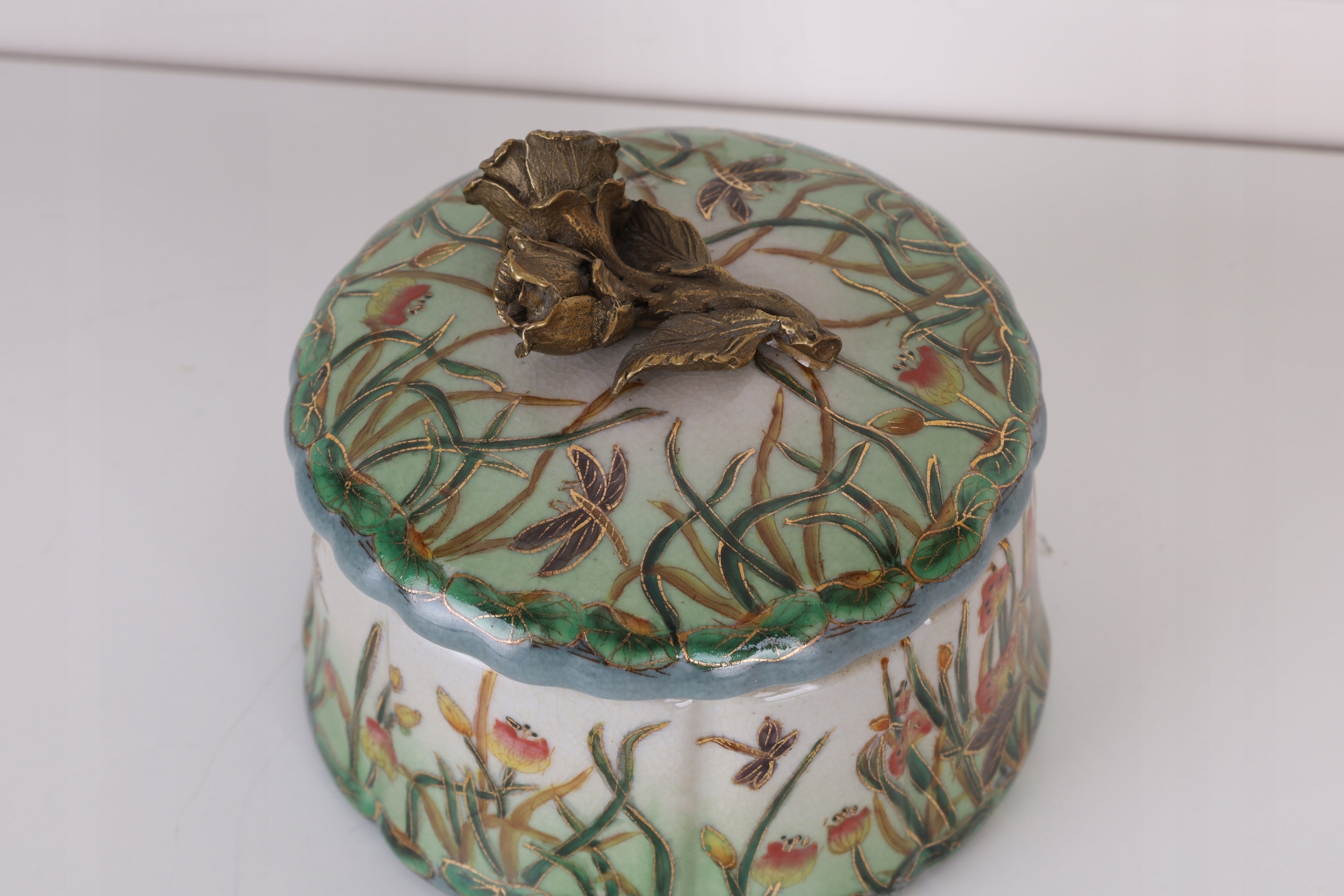 - Porcelanowa szkatułka zdobiona elementami z brązu