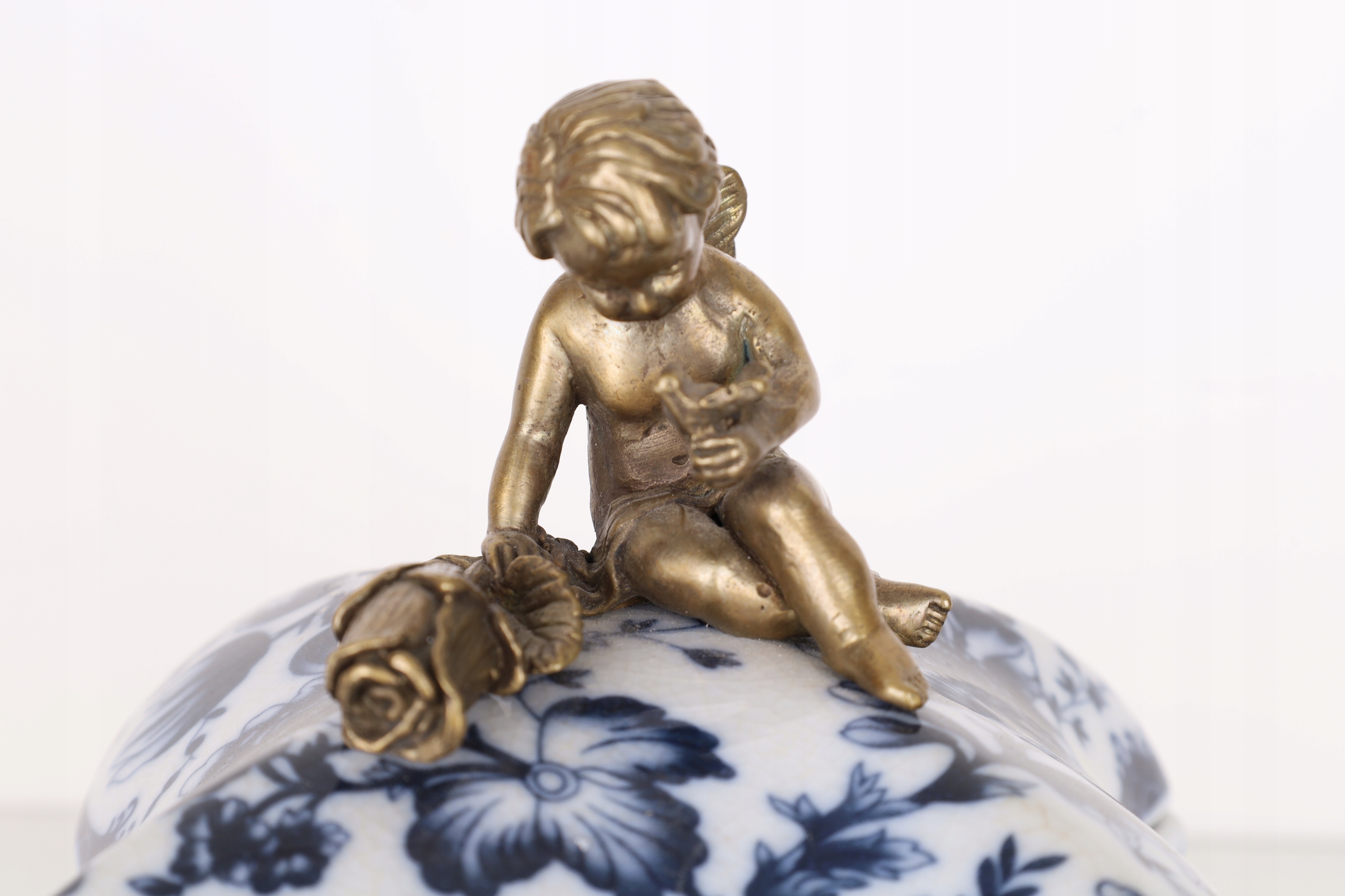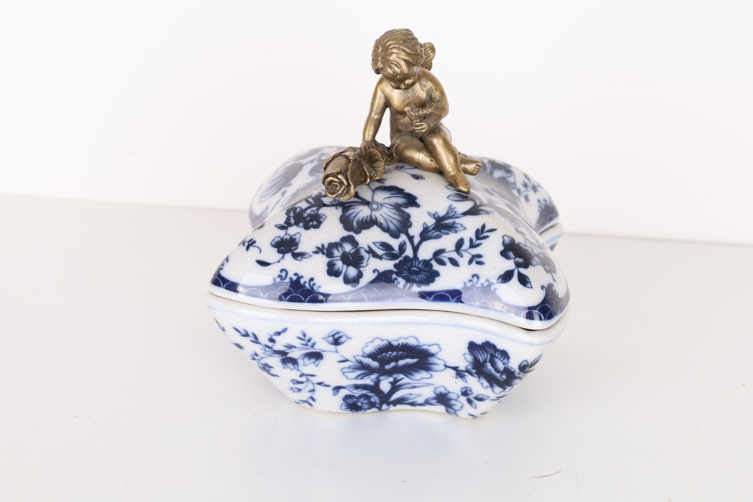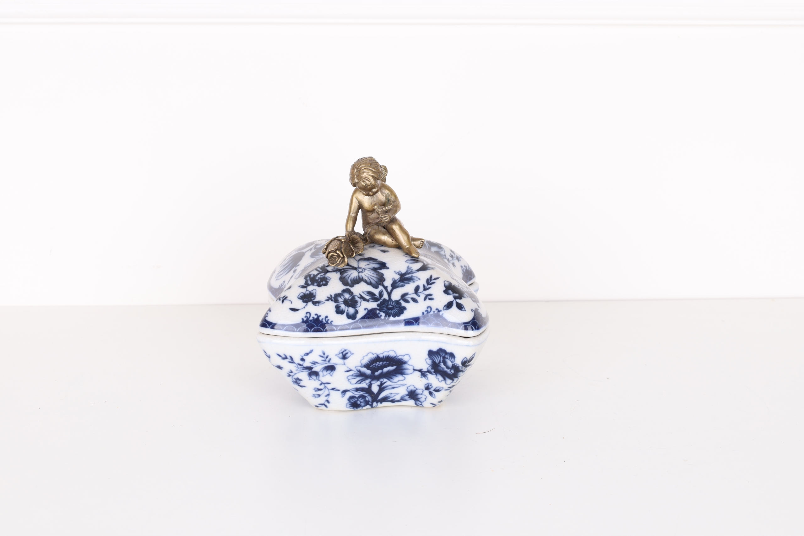 - Porcelanowa szkatułka zdobiona rzeźbą z brązu