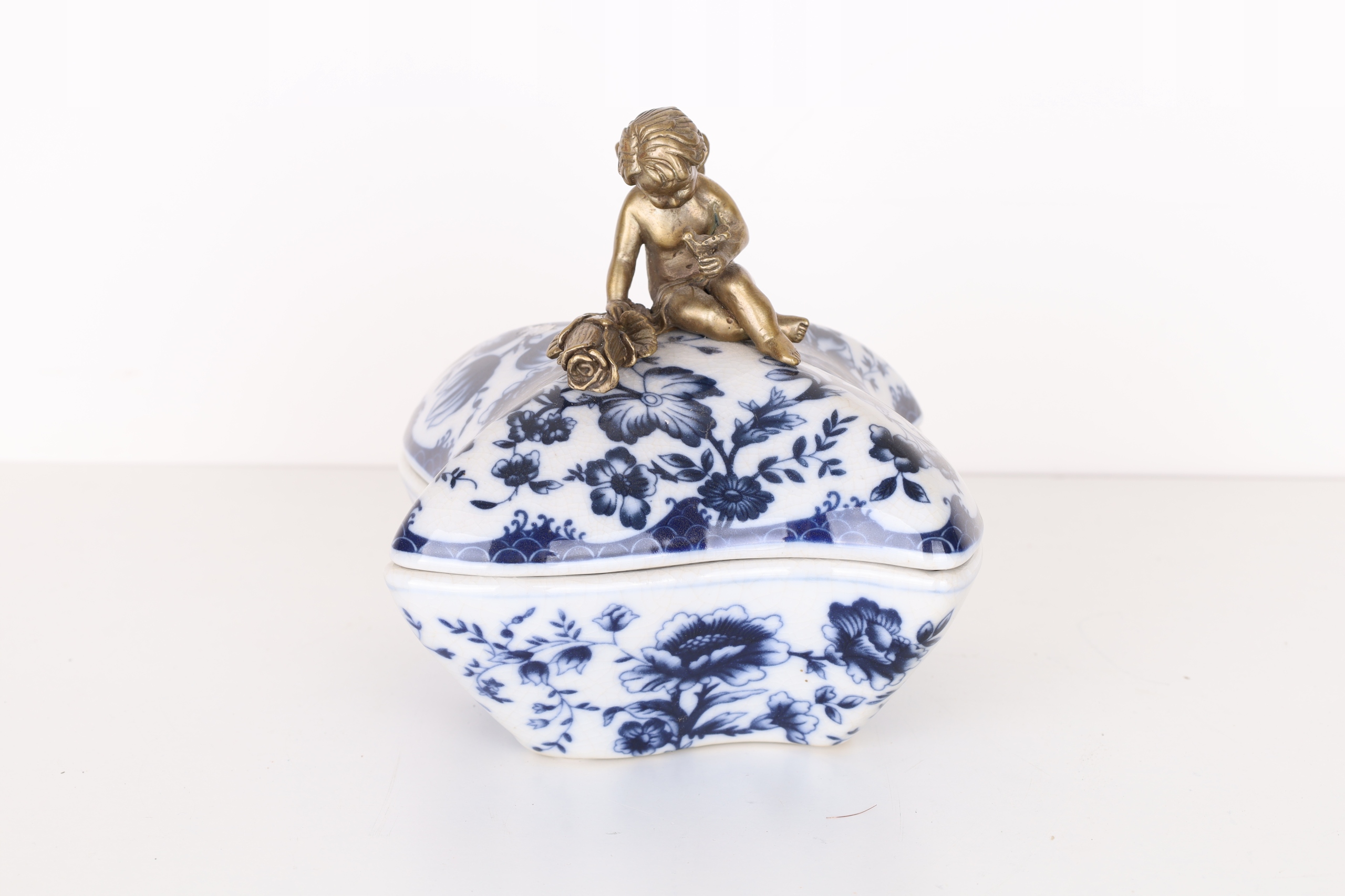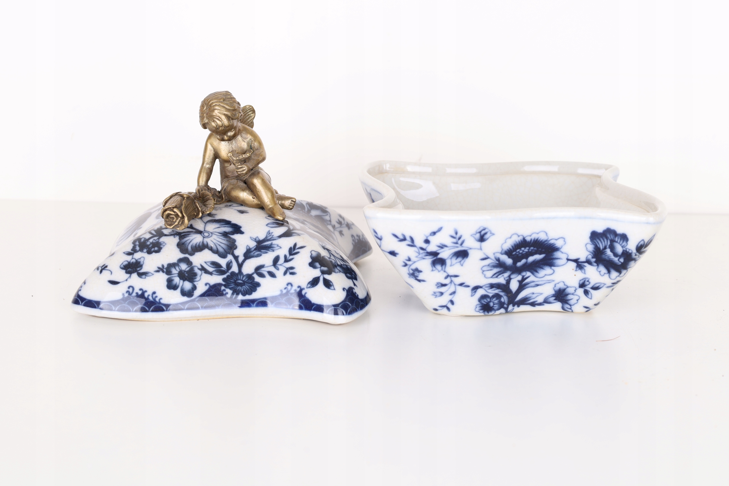 Porcelanowa SZKATUŁKA Z ANIOŁKIEM z Brązu!
