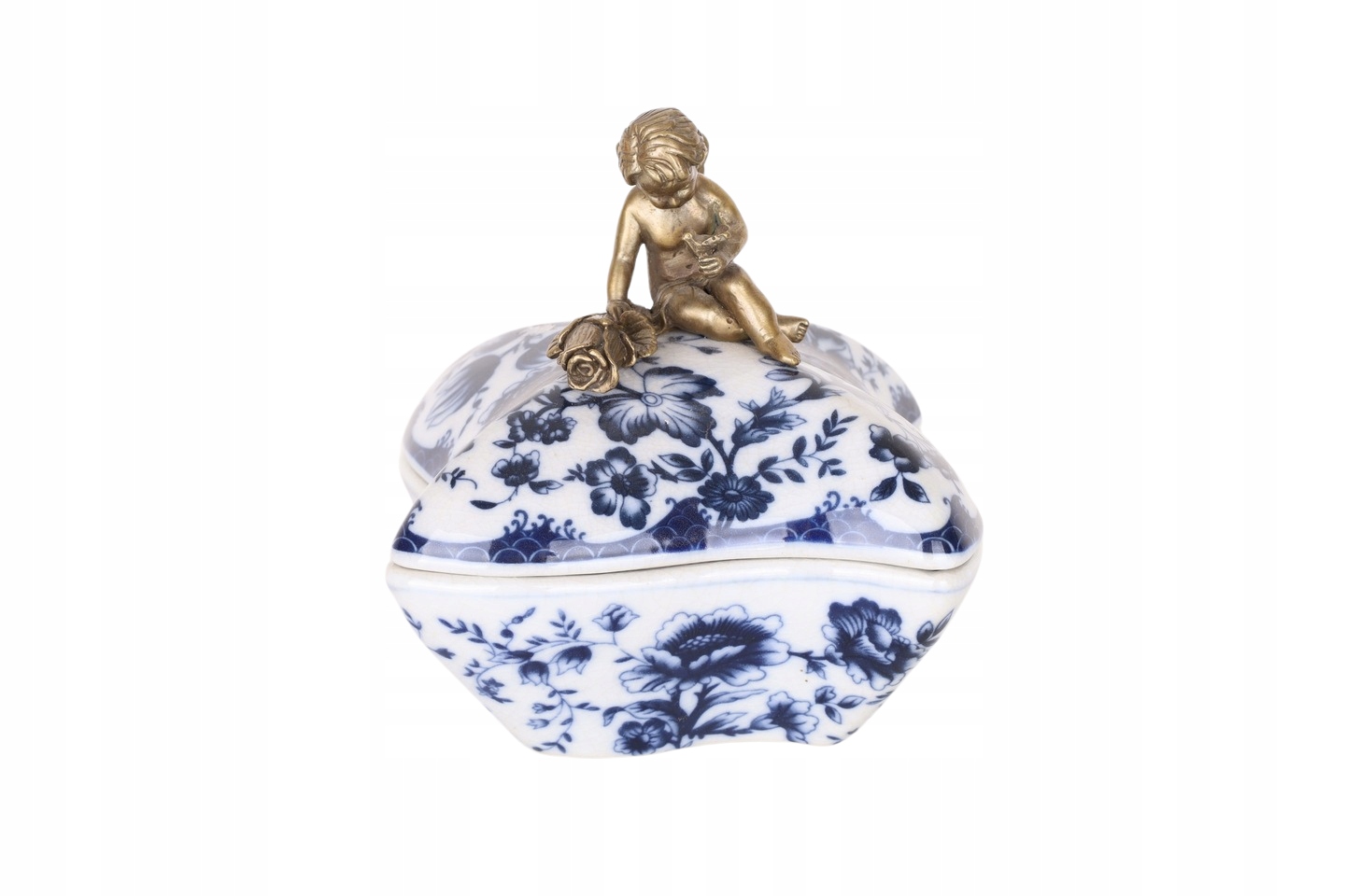 Porcelanowa SZKATUŁKA Z ANIOŁKIEM z Brązu! NIEBIESKA