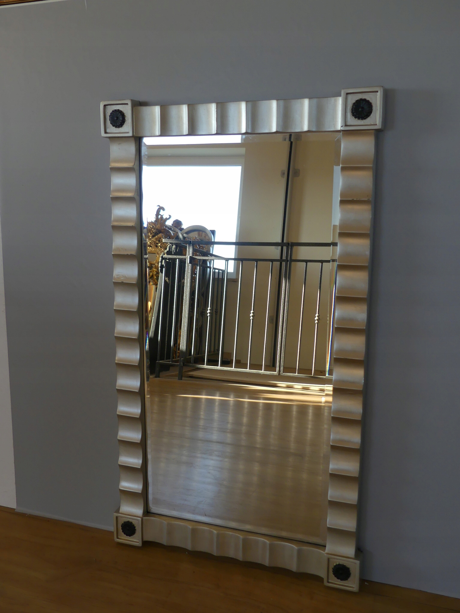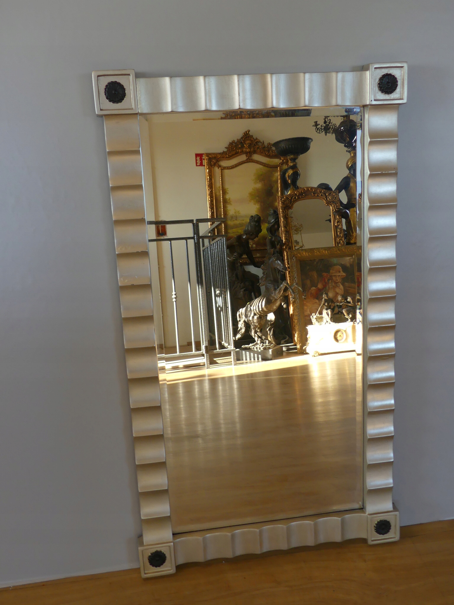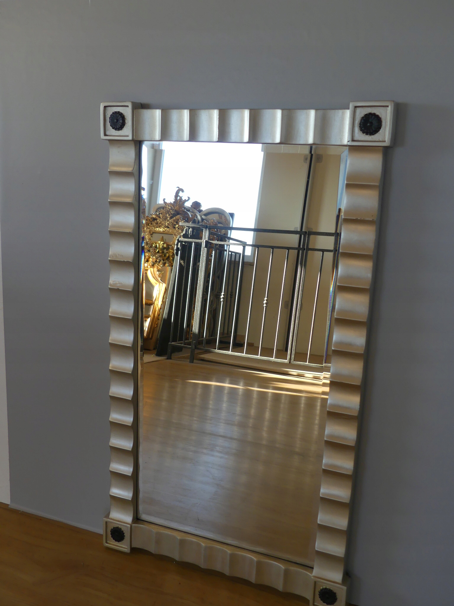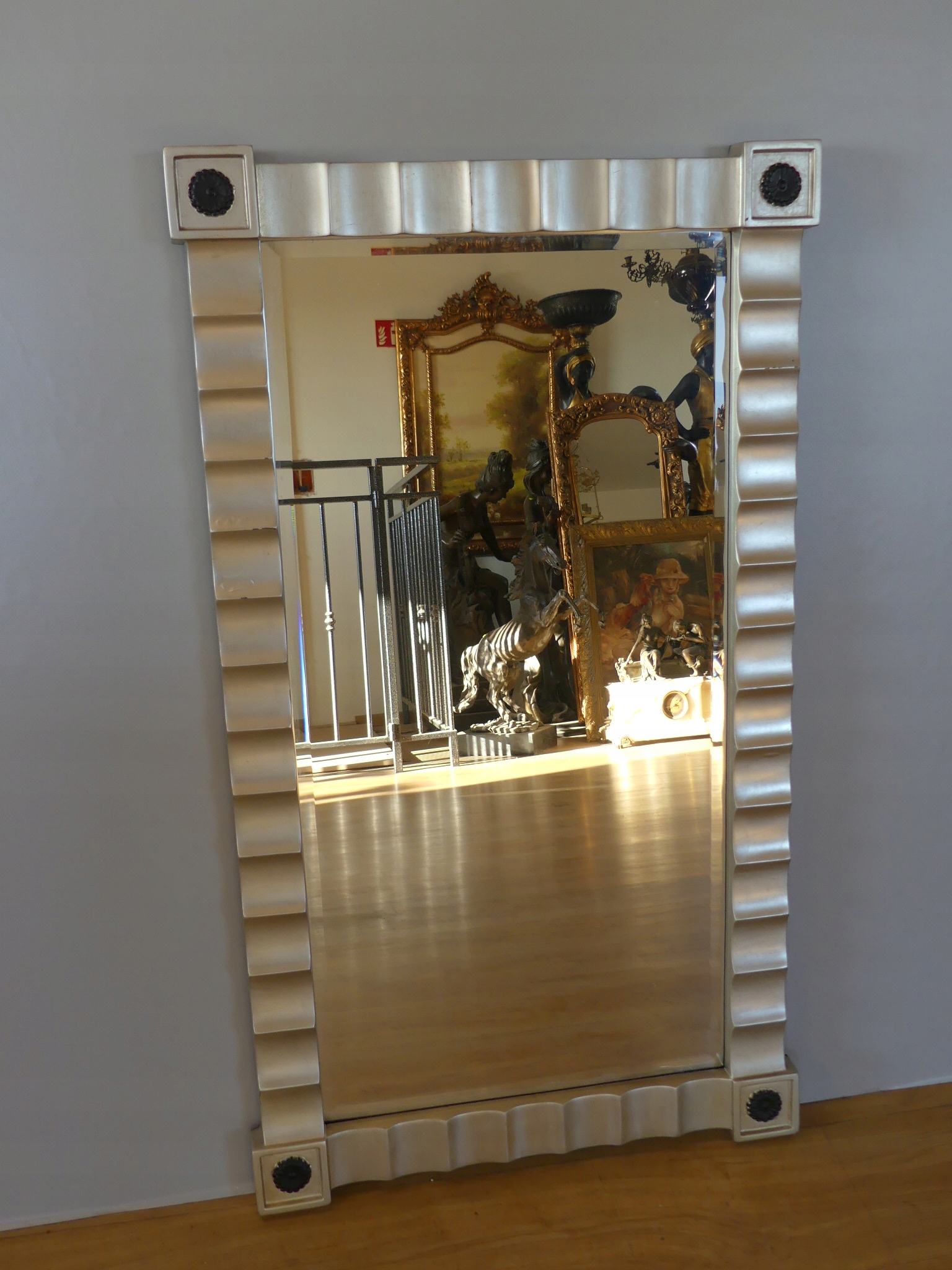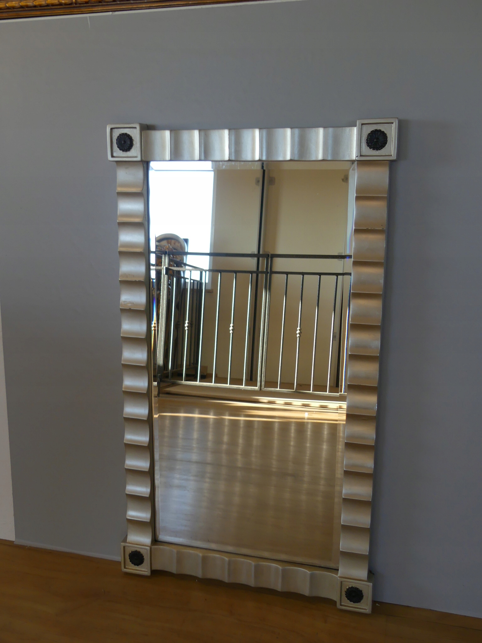 Prostokątne SREBRNE LUSTRO Stylowe ART DECO