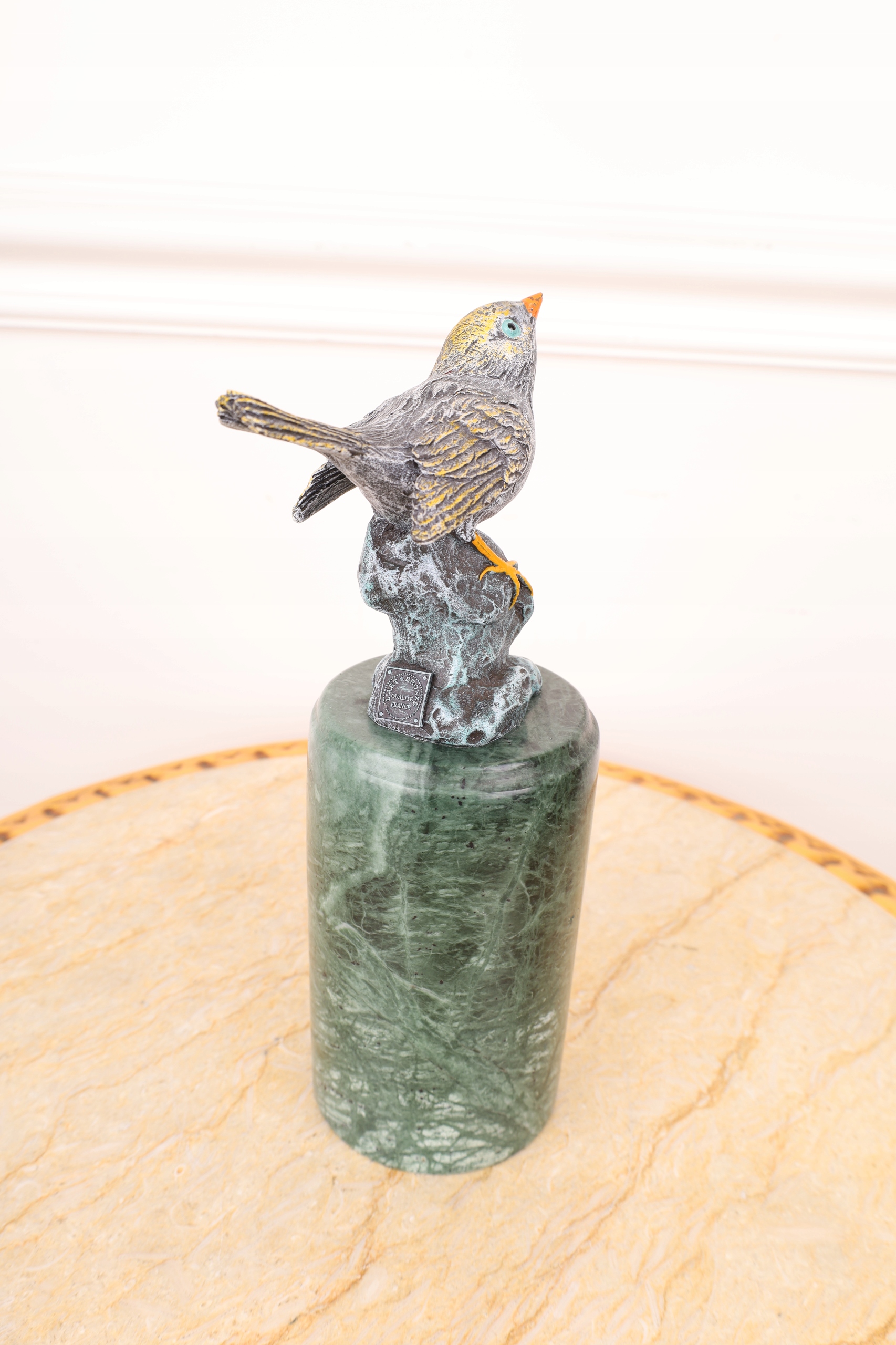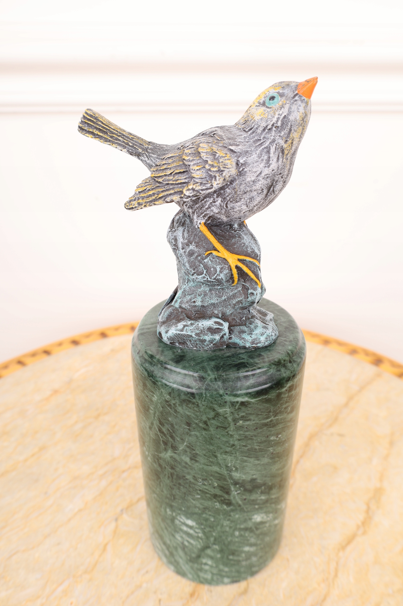 PTASZEK – Z BRĄZU SŁOWIK sygnowany KOLOROWY