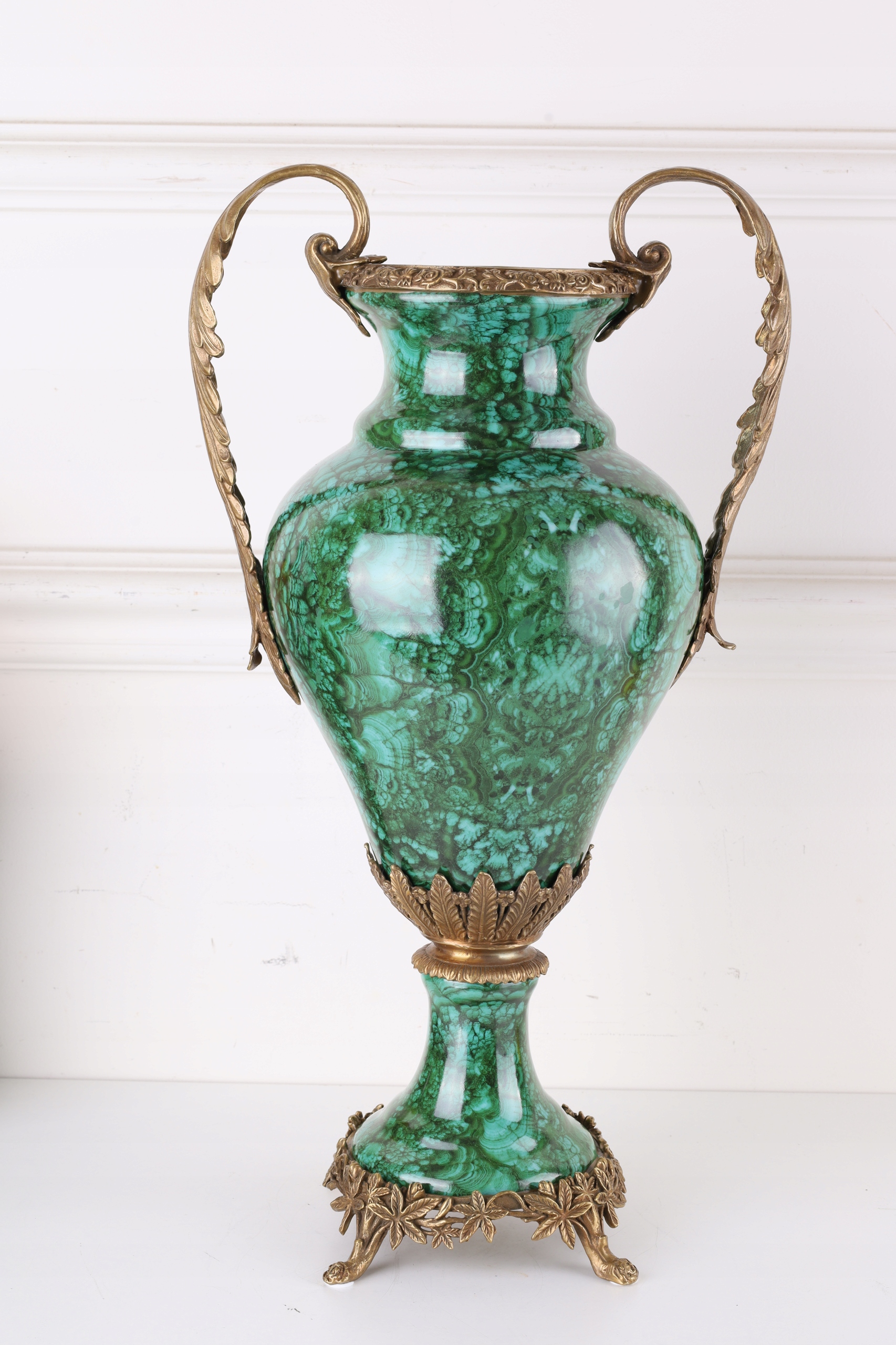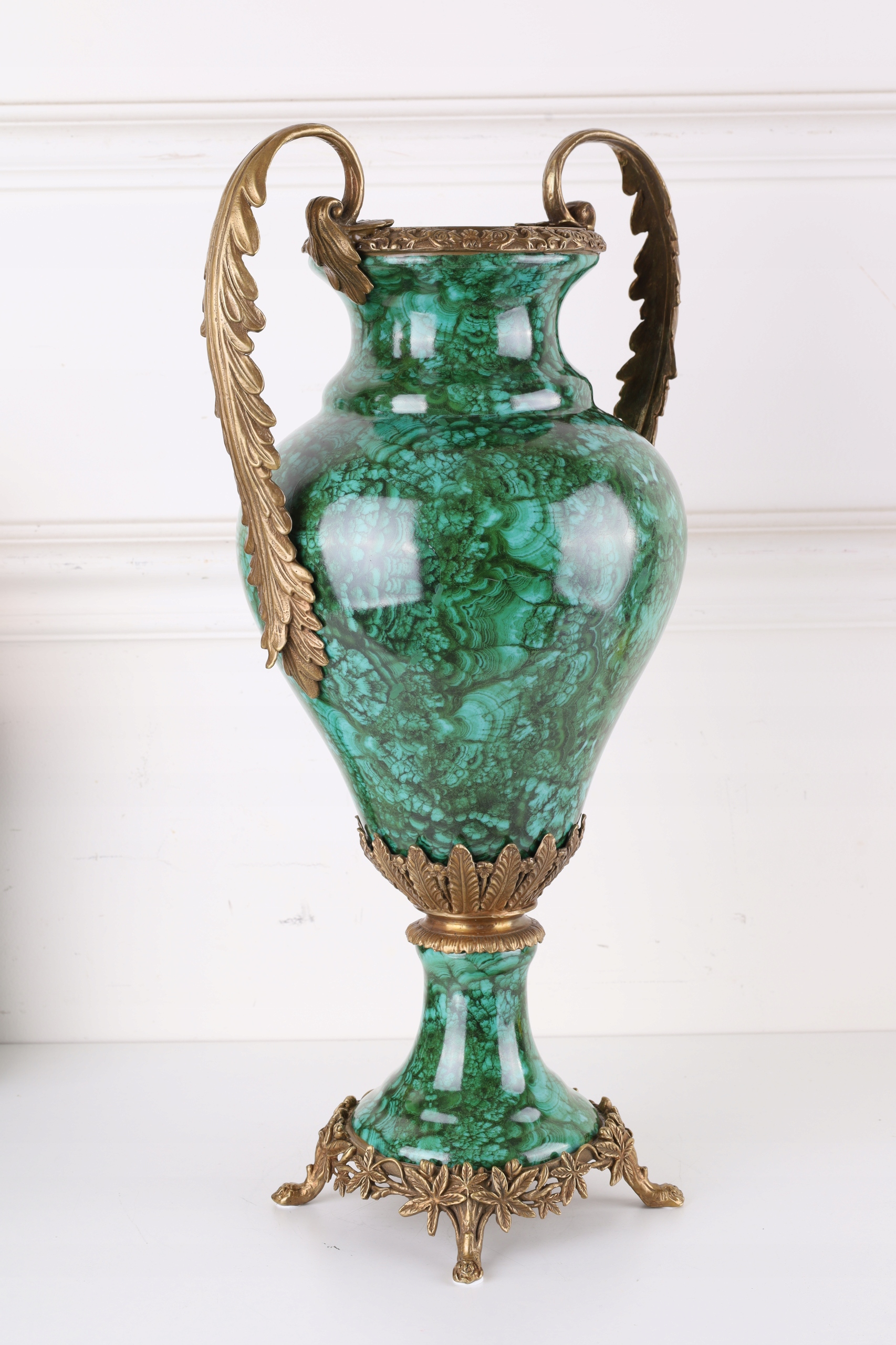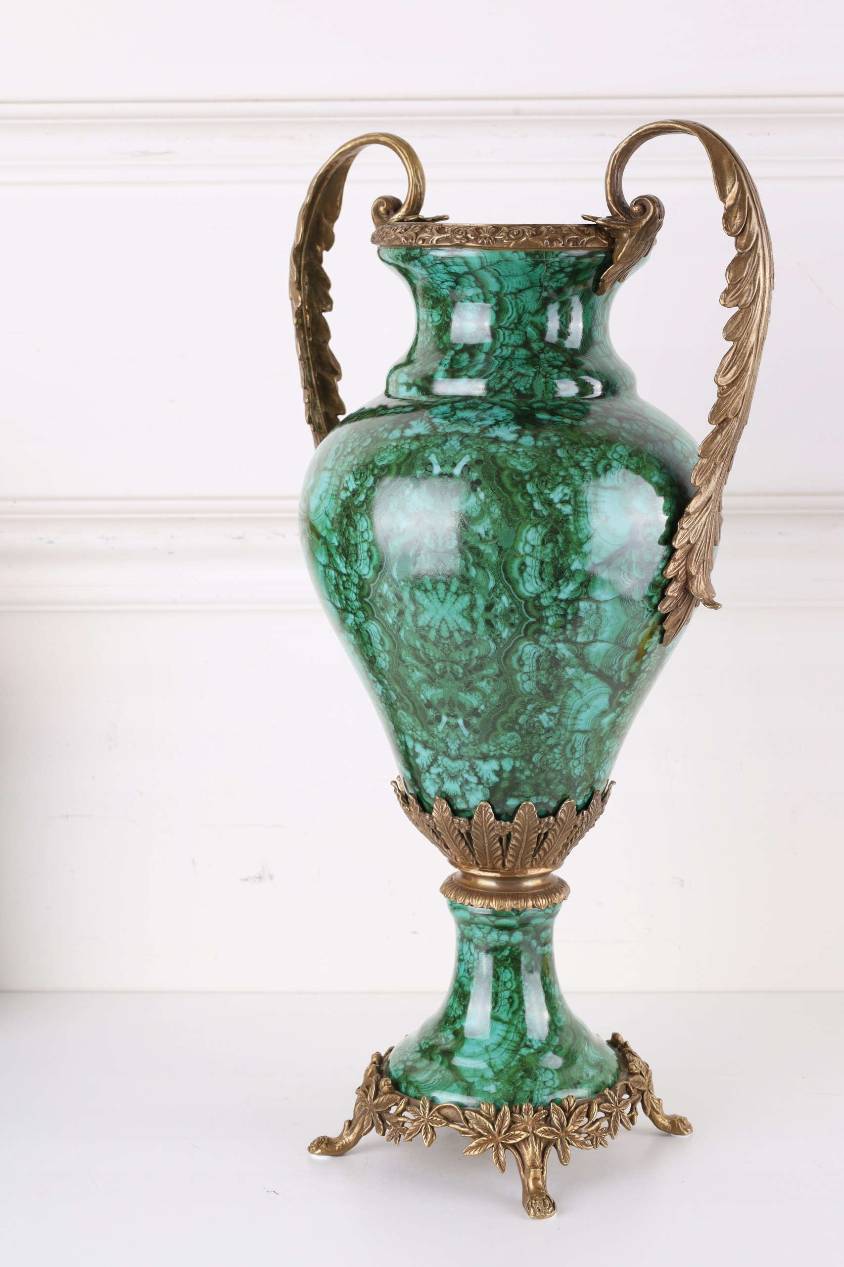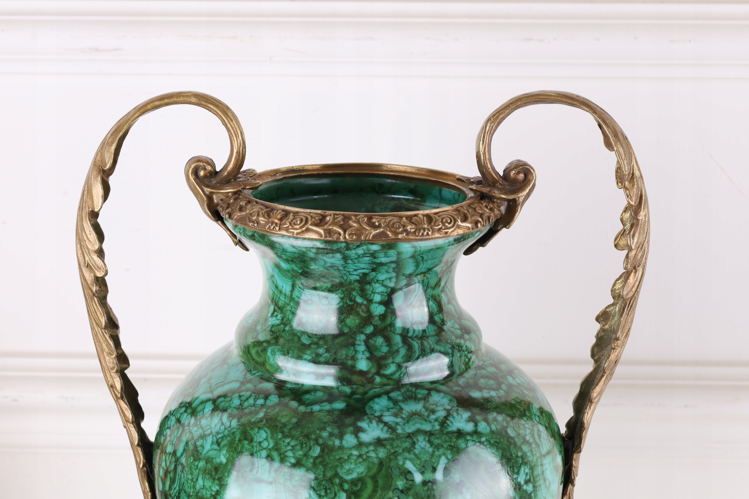 Zielony Wazon AMFORA – Porcelana Zdobiona Brązem!