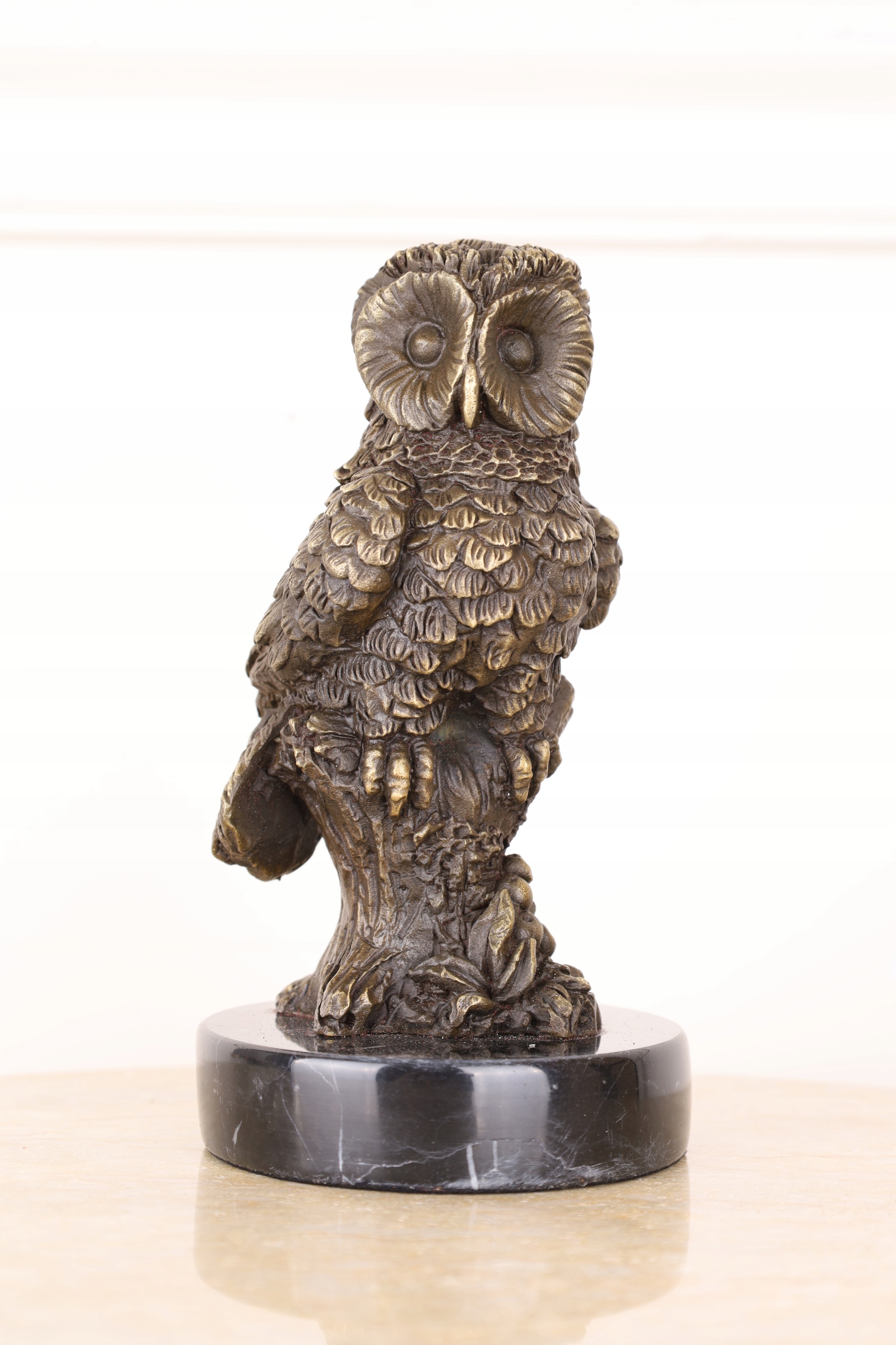 SOWA z BRĄZU – dumna podstawa marmur 14 cm