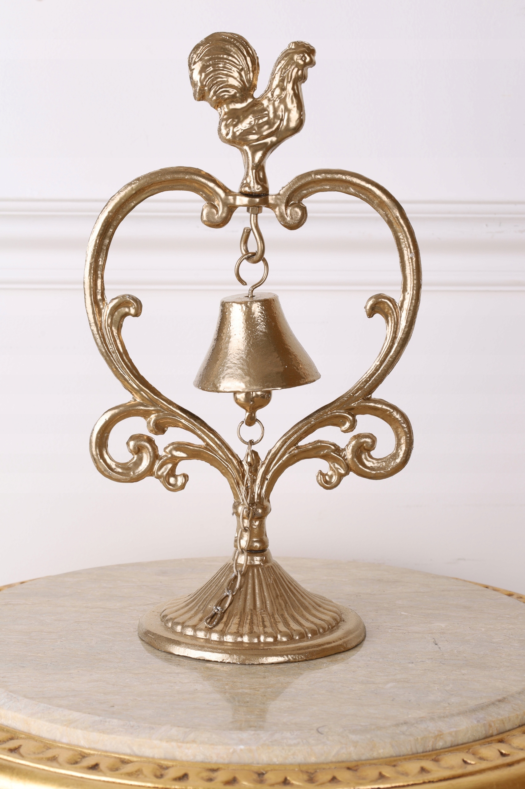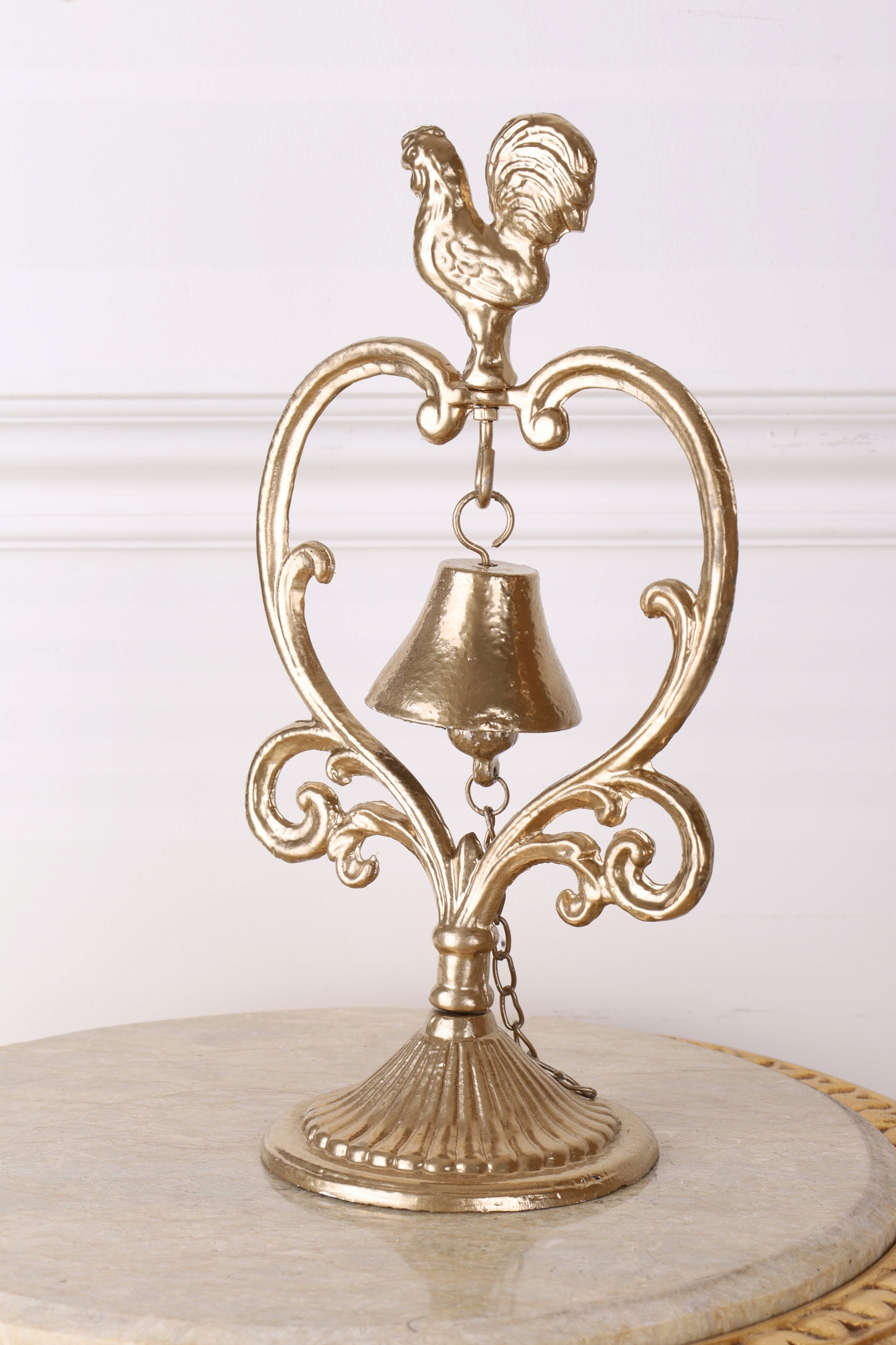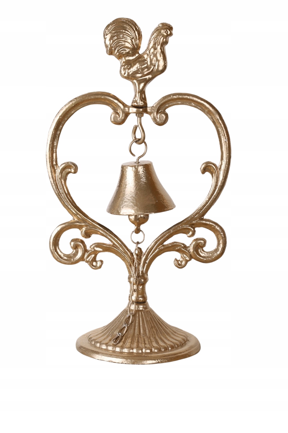STOJĄCY DZWONEK Z KOGUCIKIM żeliwo ZŁOTY 36 x 20 cm
