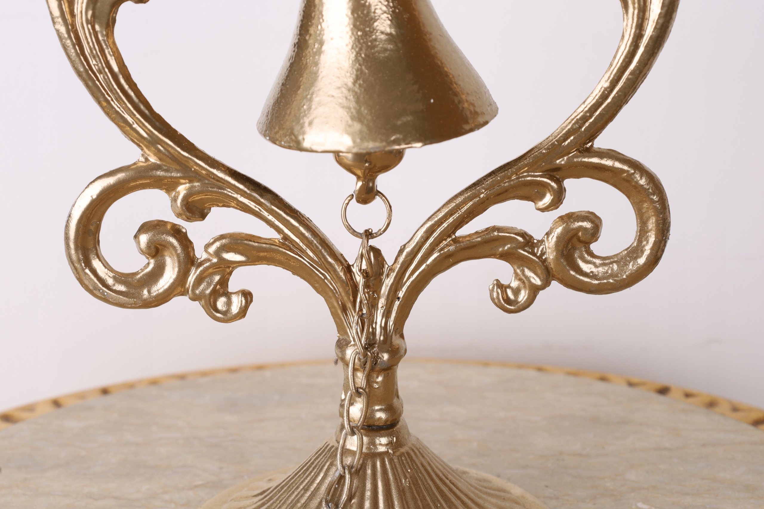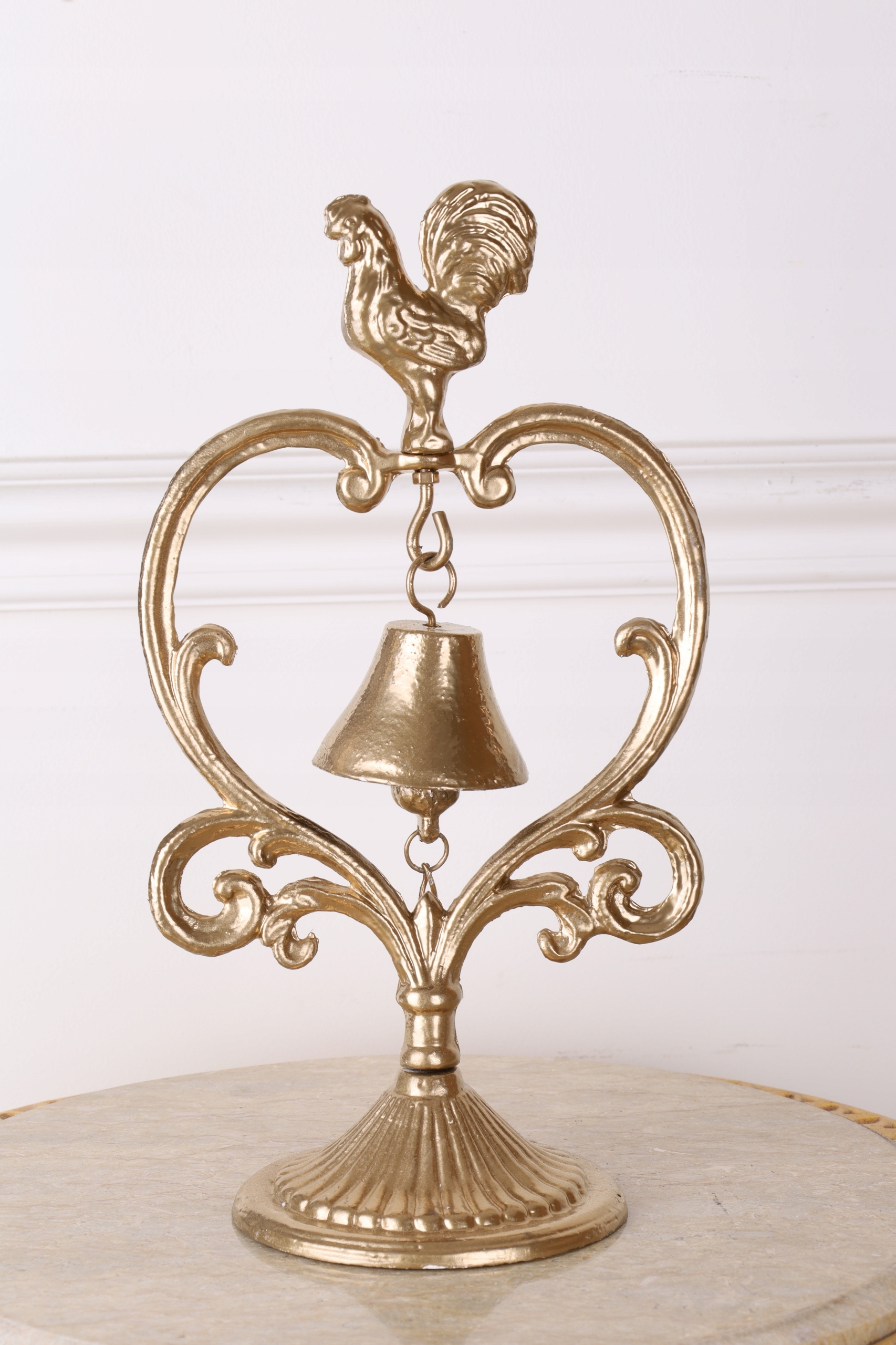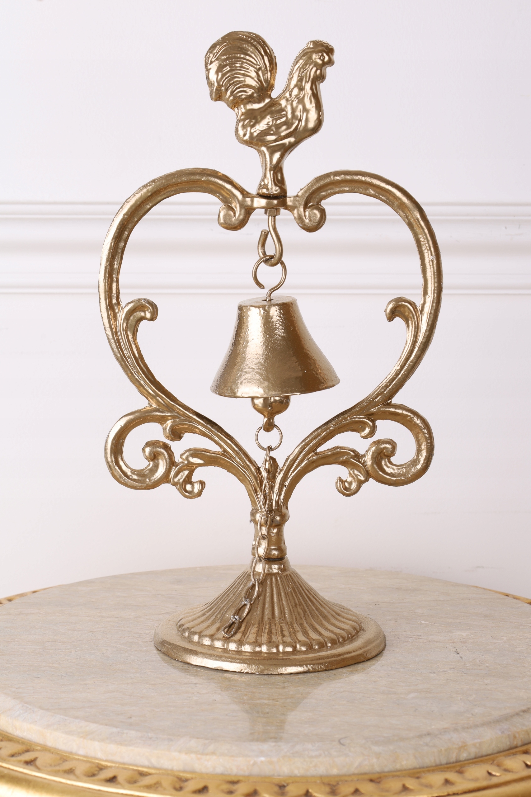 STOJĄCY DZWONEK Z KOGUCIKIM żeliwo ZŁOTY 36 x 20 cm