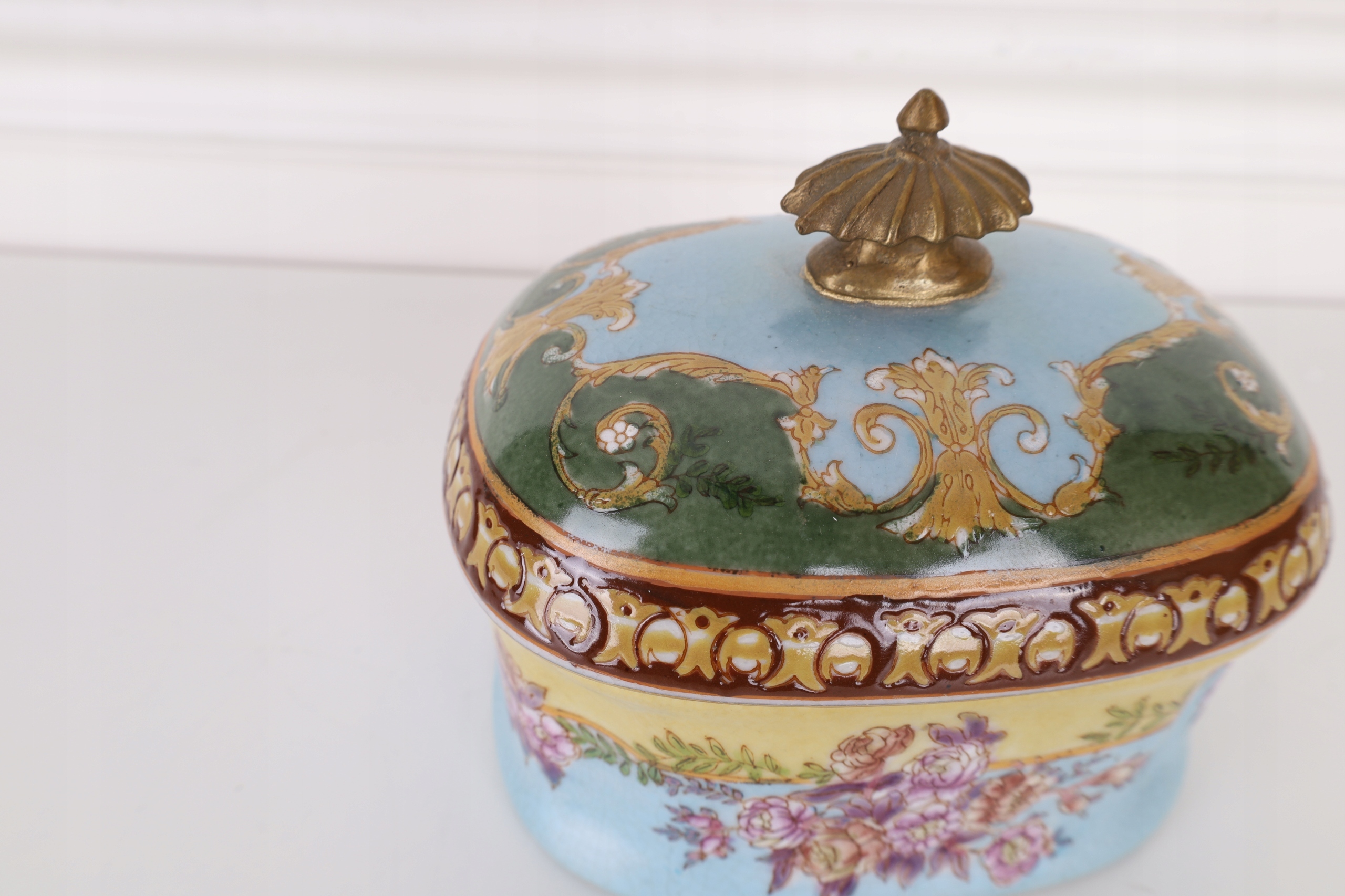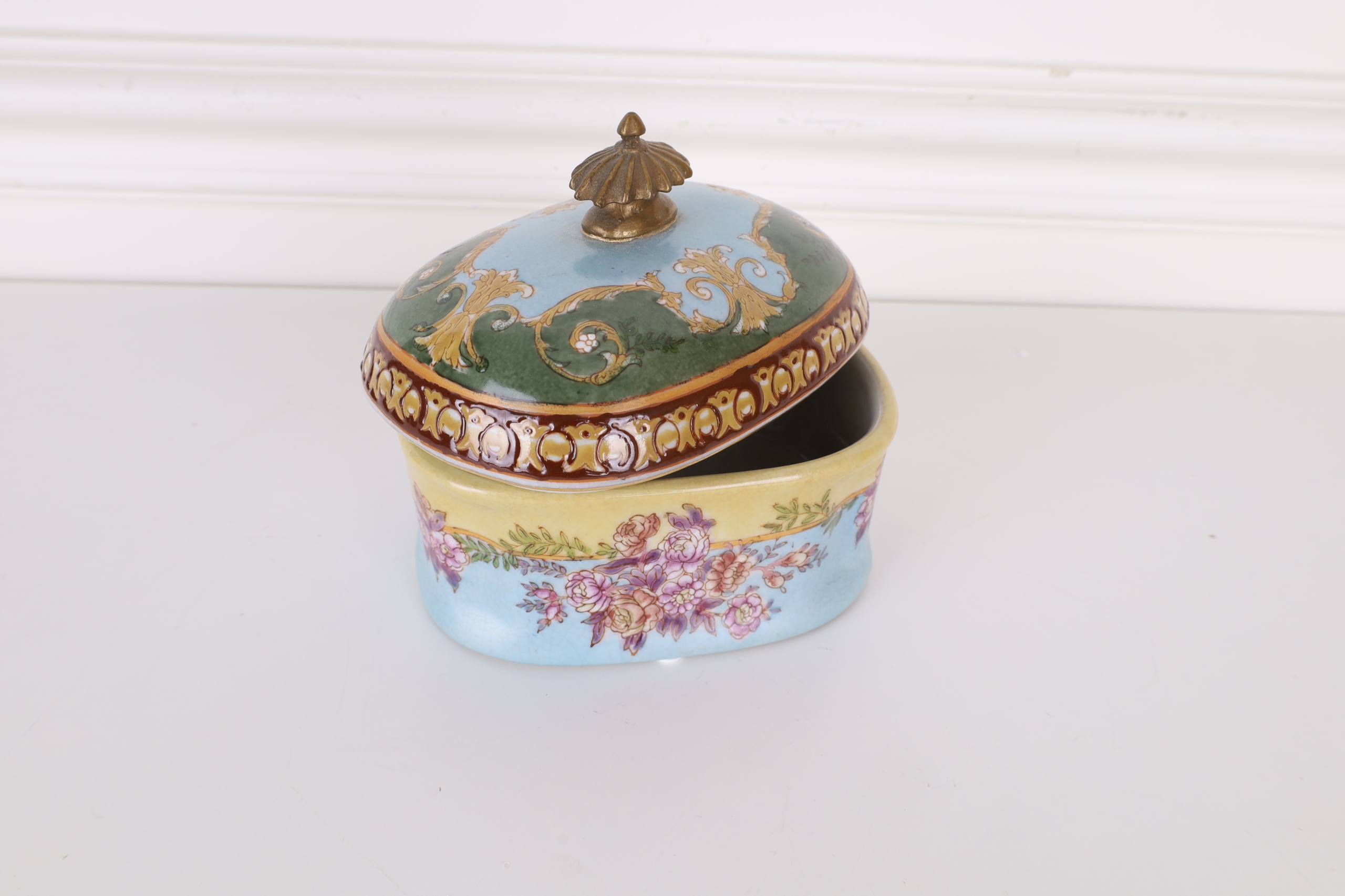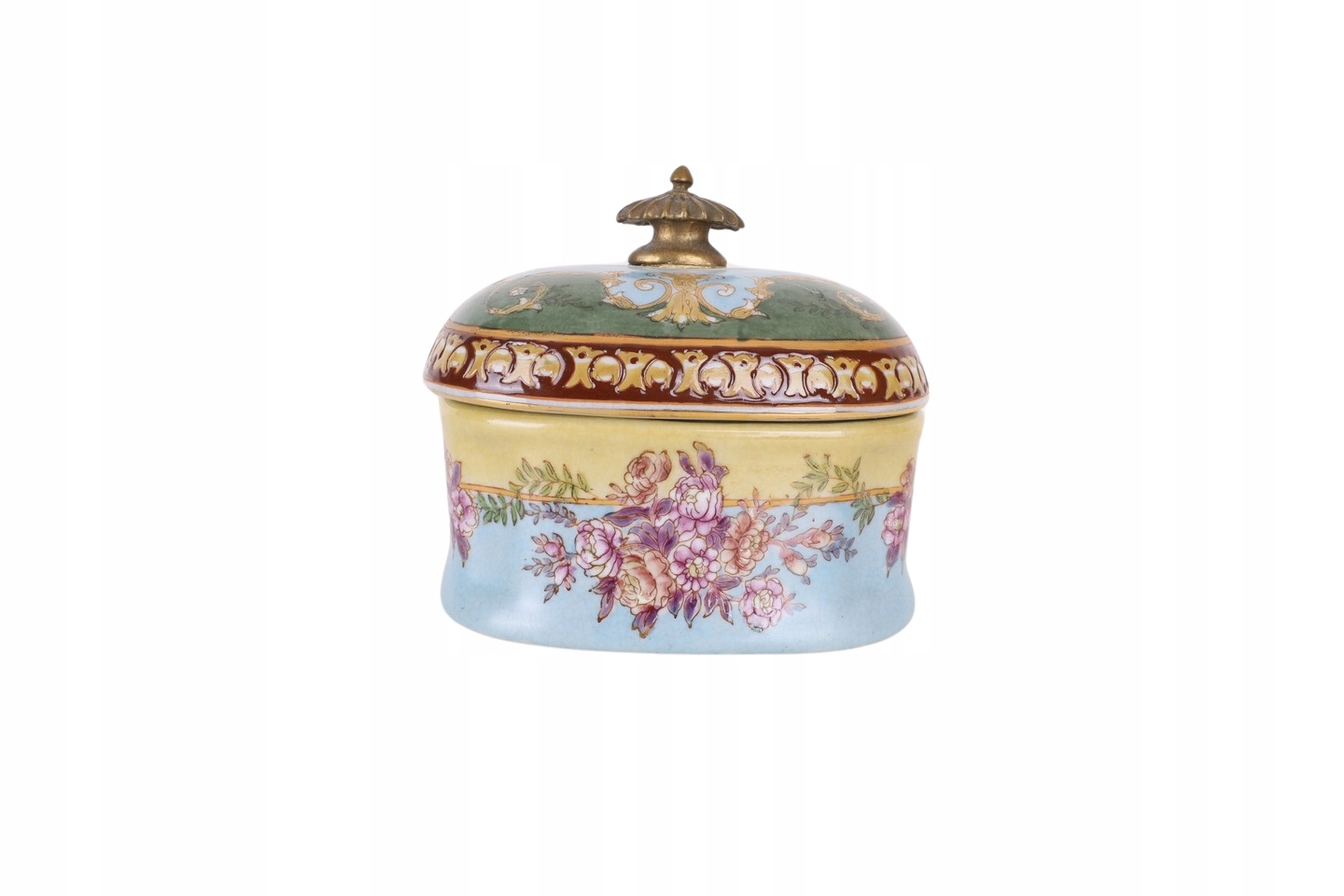 SZKATUŁKA- BOMBONIERA PORCELANA Z BRĄZEM