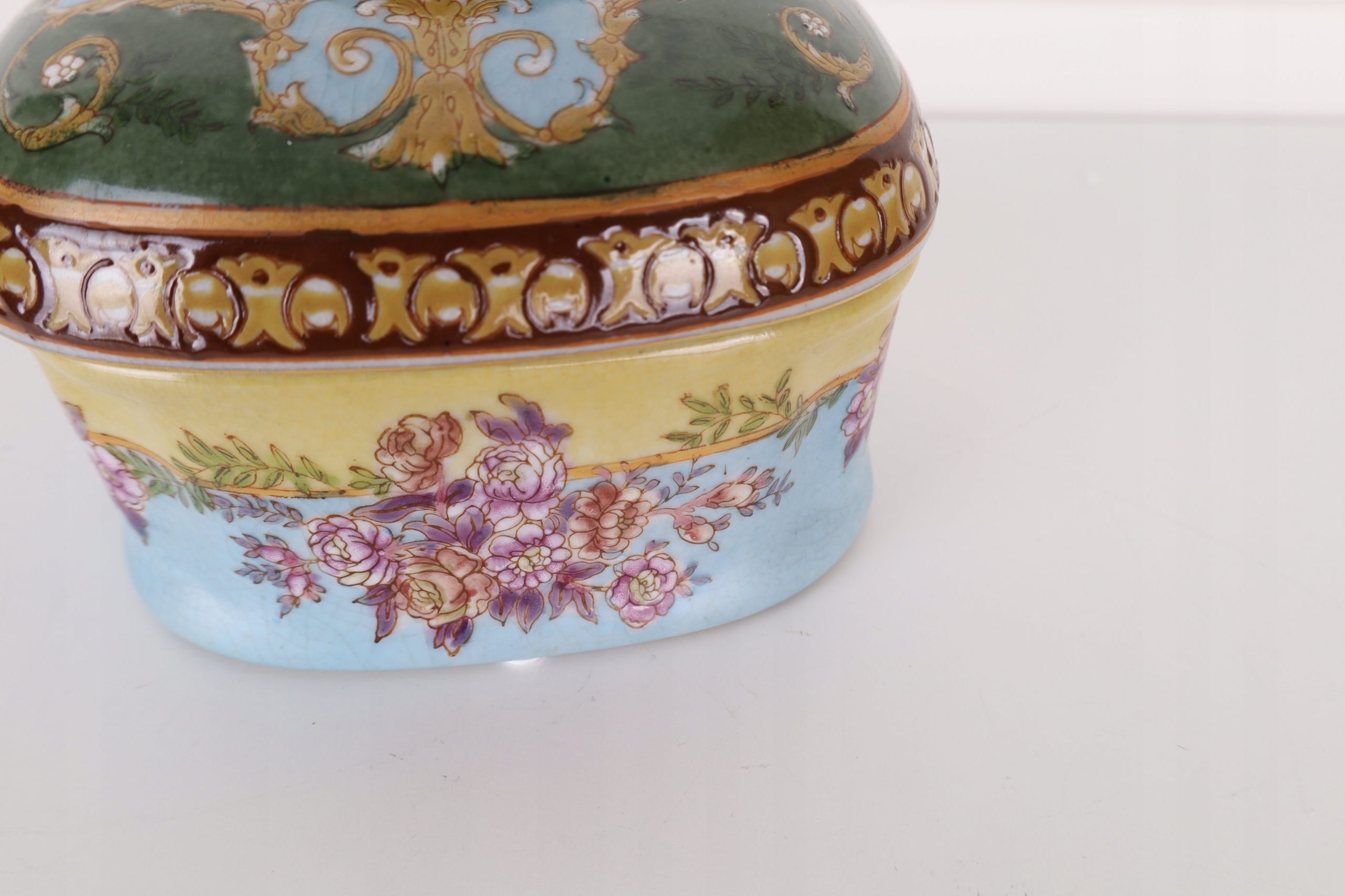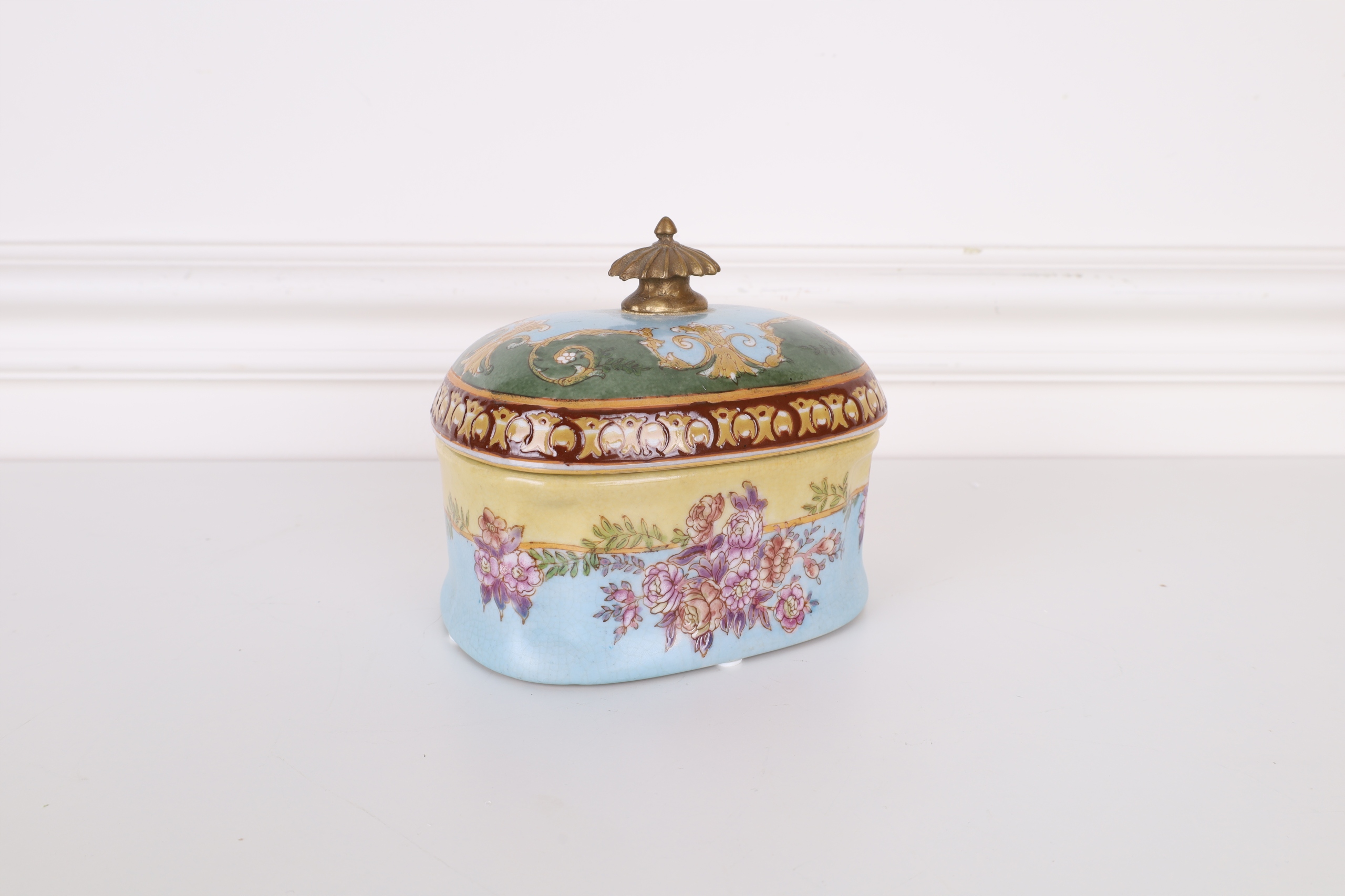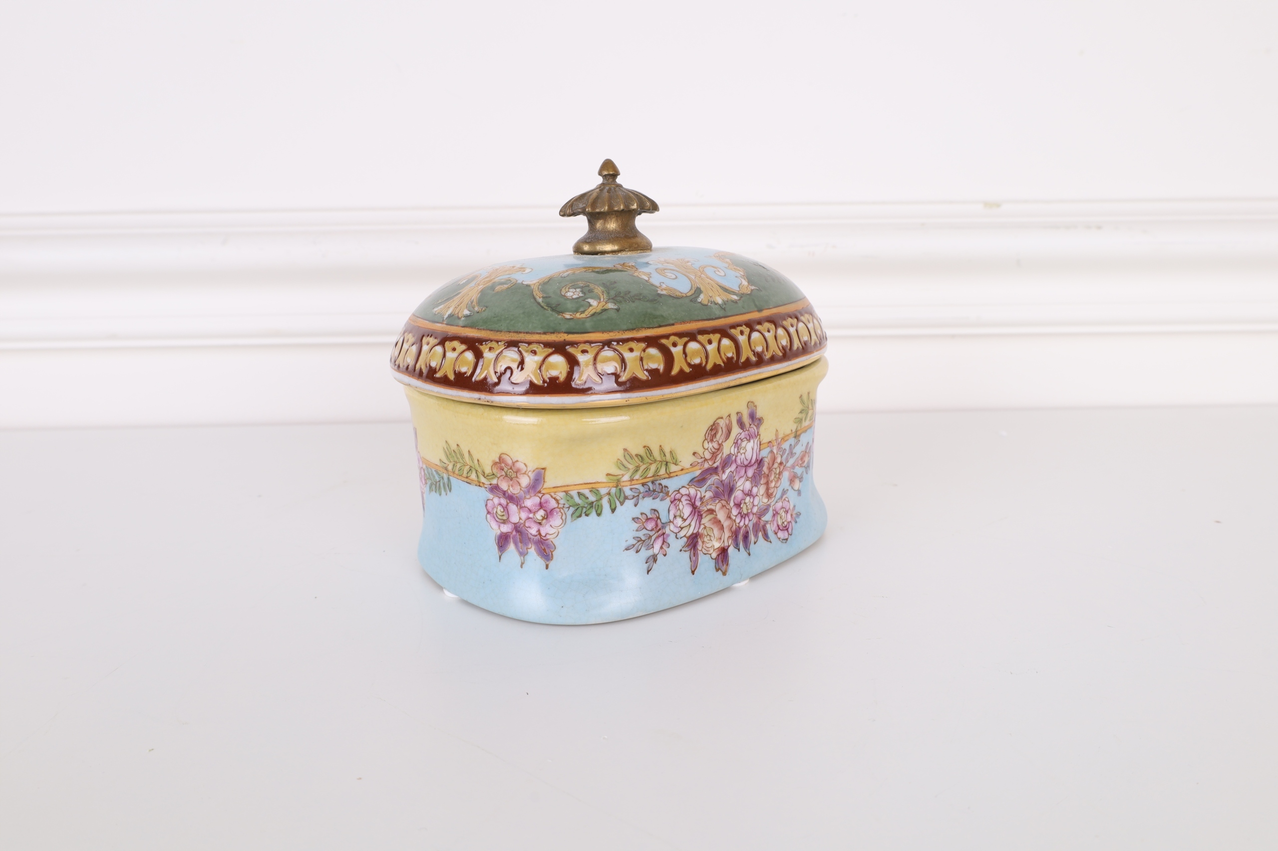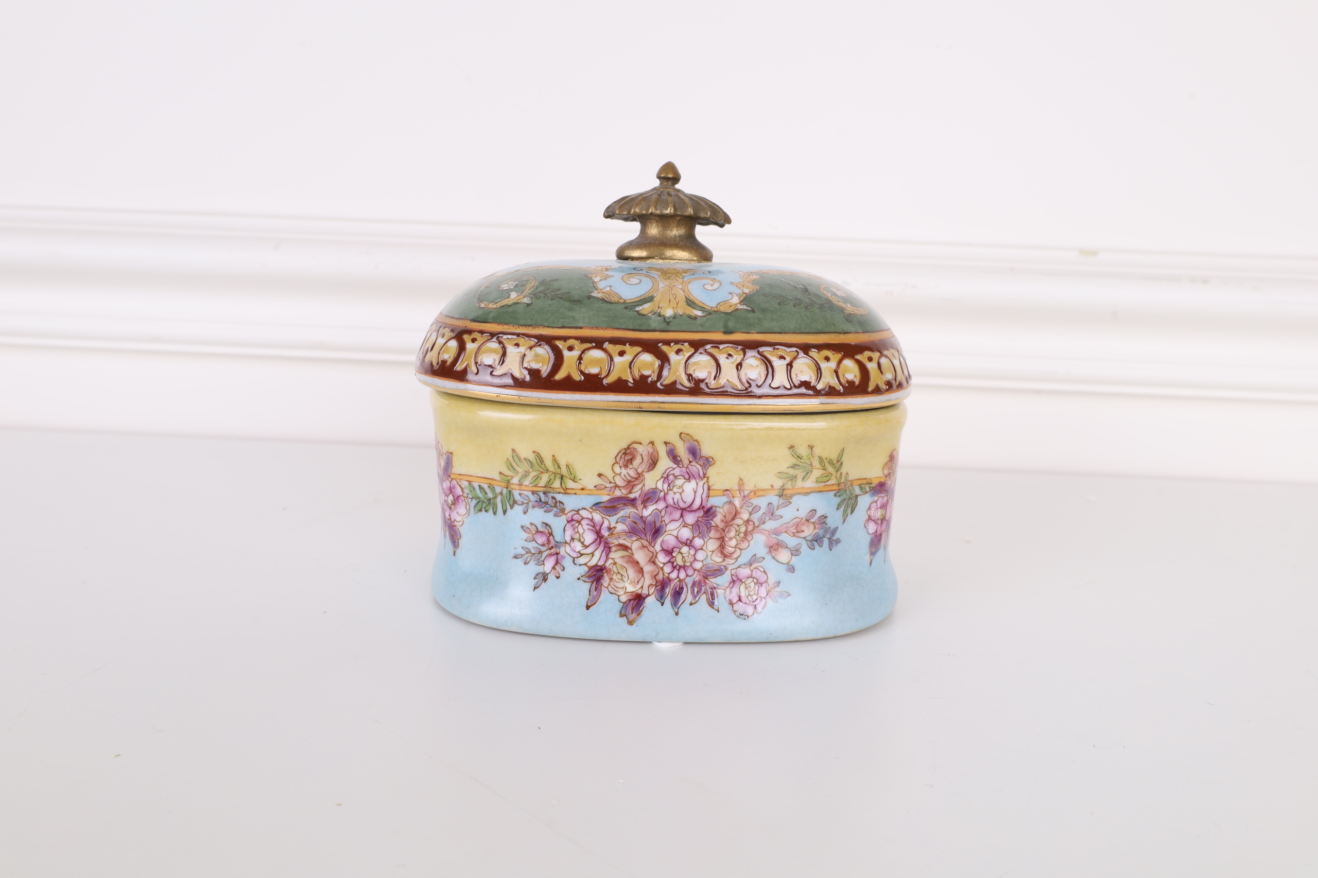 SZKATUŁKA- BOMBONIERA PORCELANA Z BRĄZEM