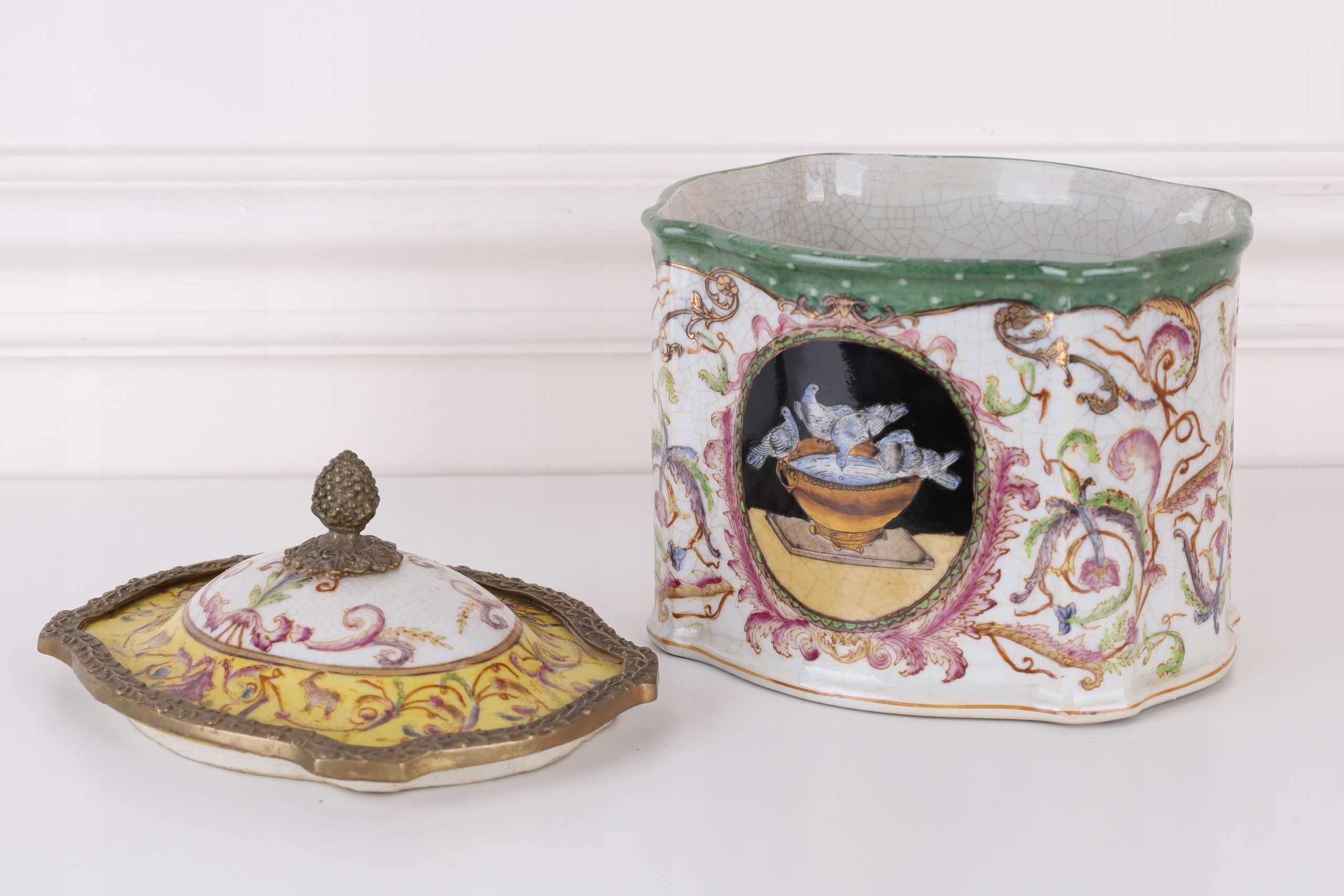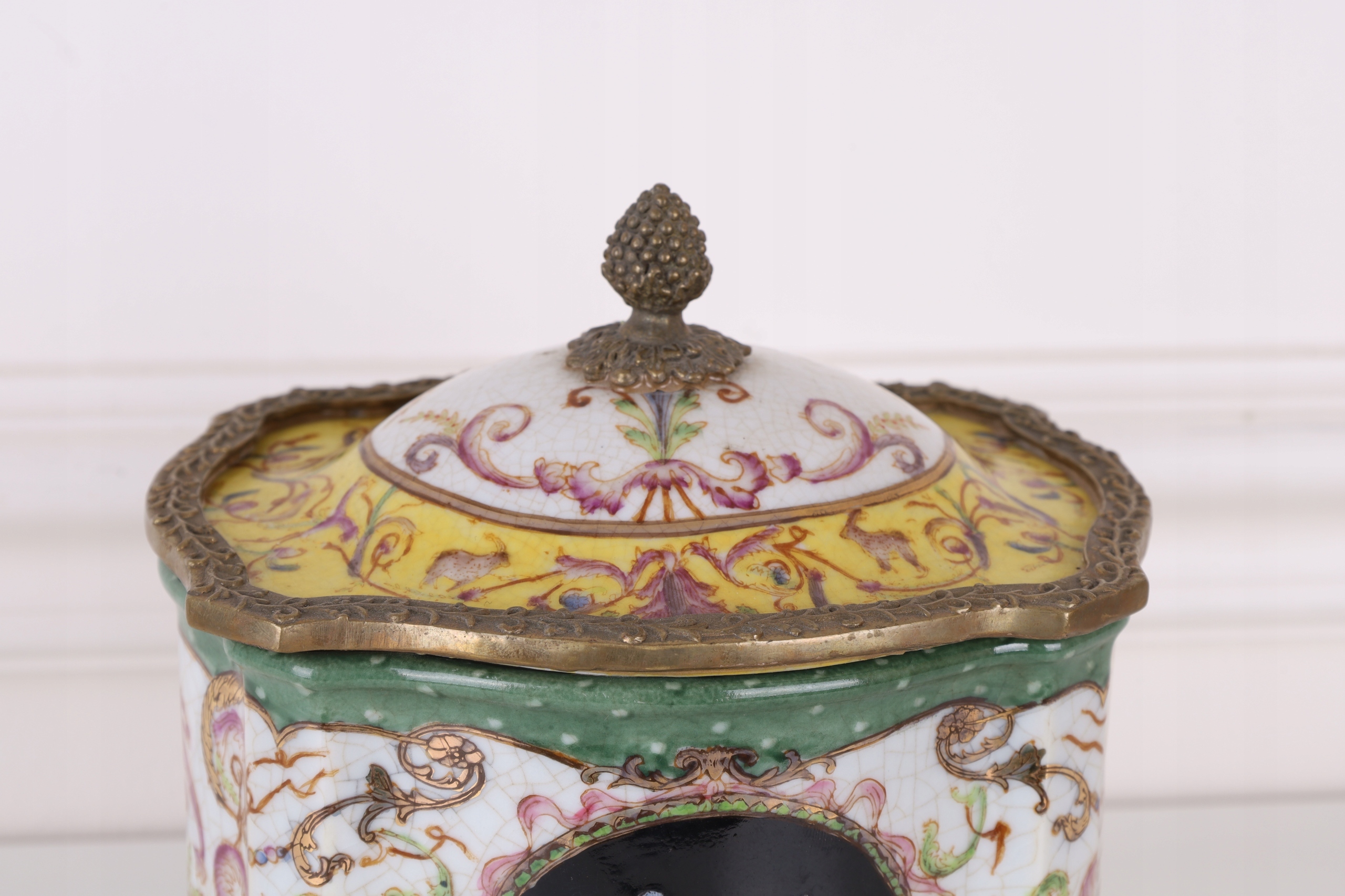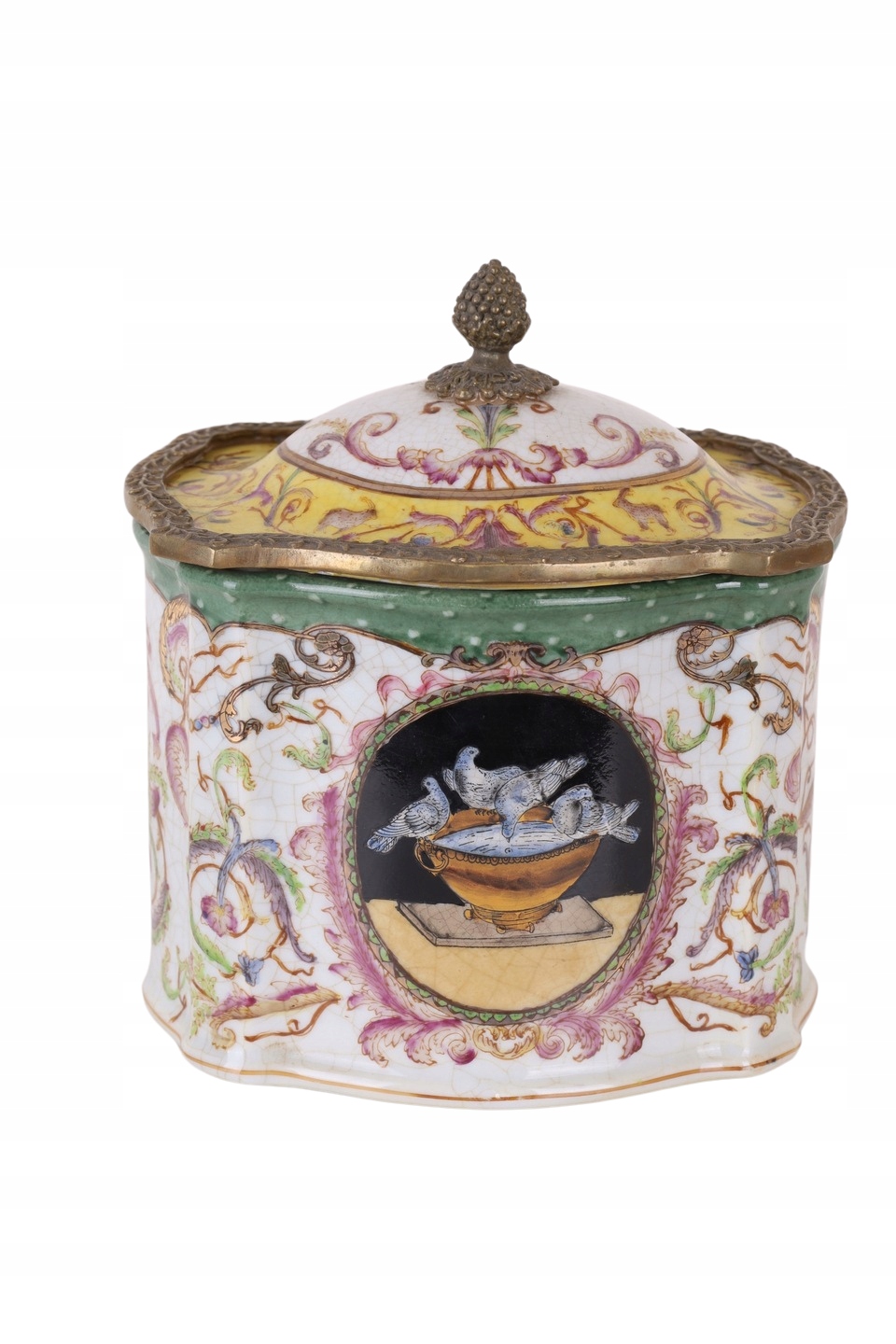 - Porcelanowa szkatułka zdobiona elementami z brązu