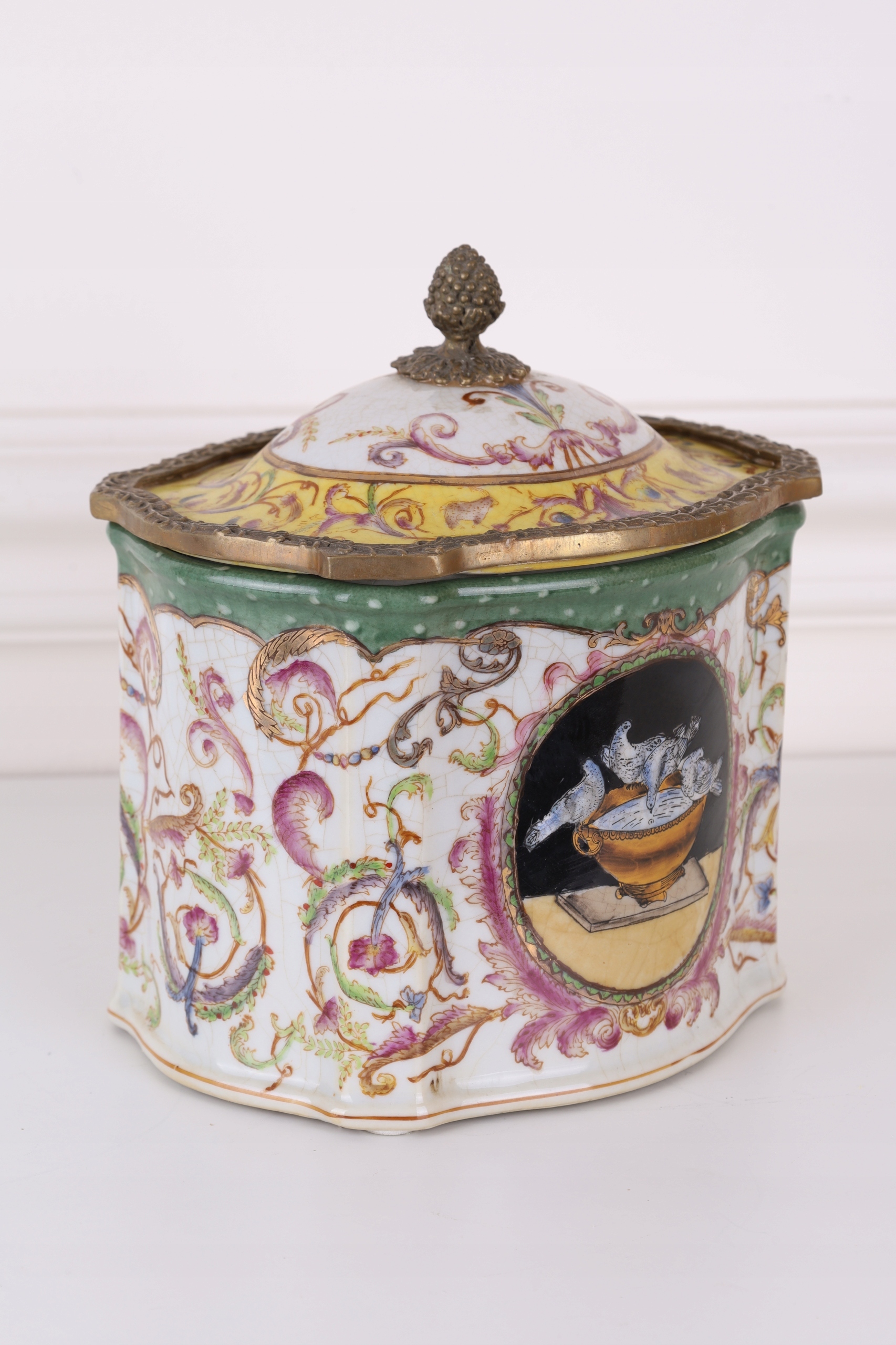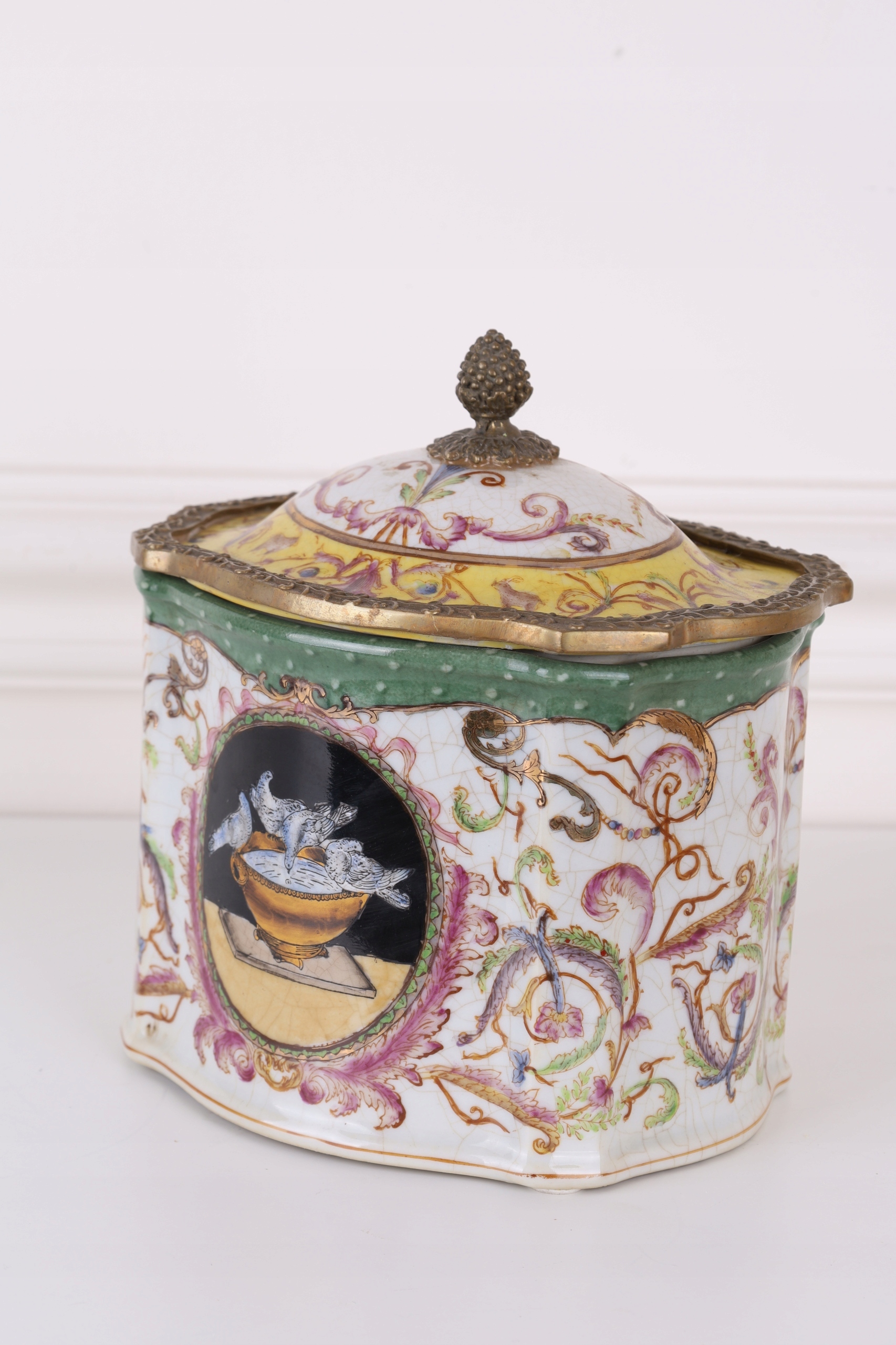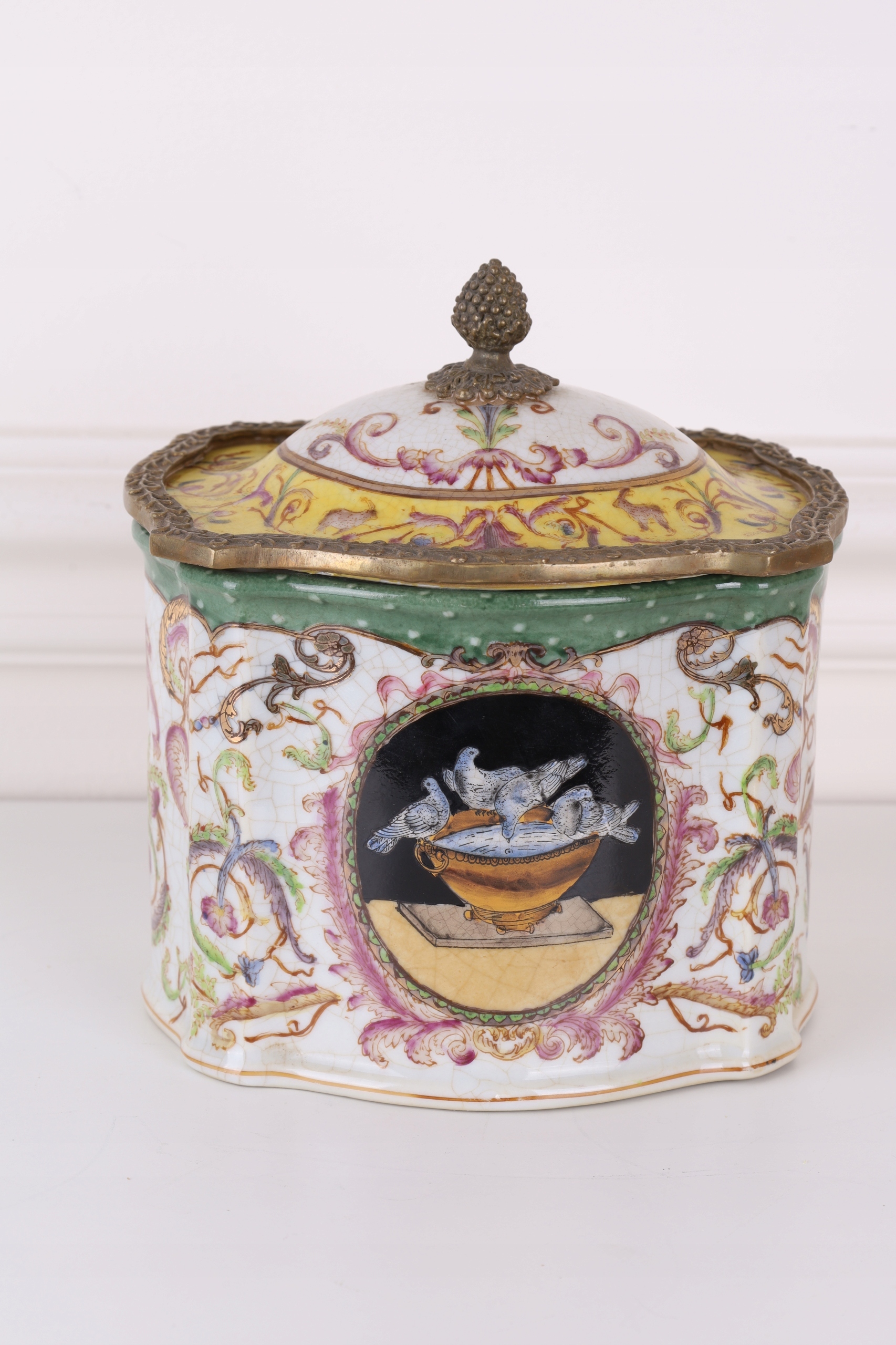 - Porcelanowa szkatułka zdobiona elementami z brązu