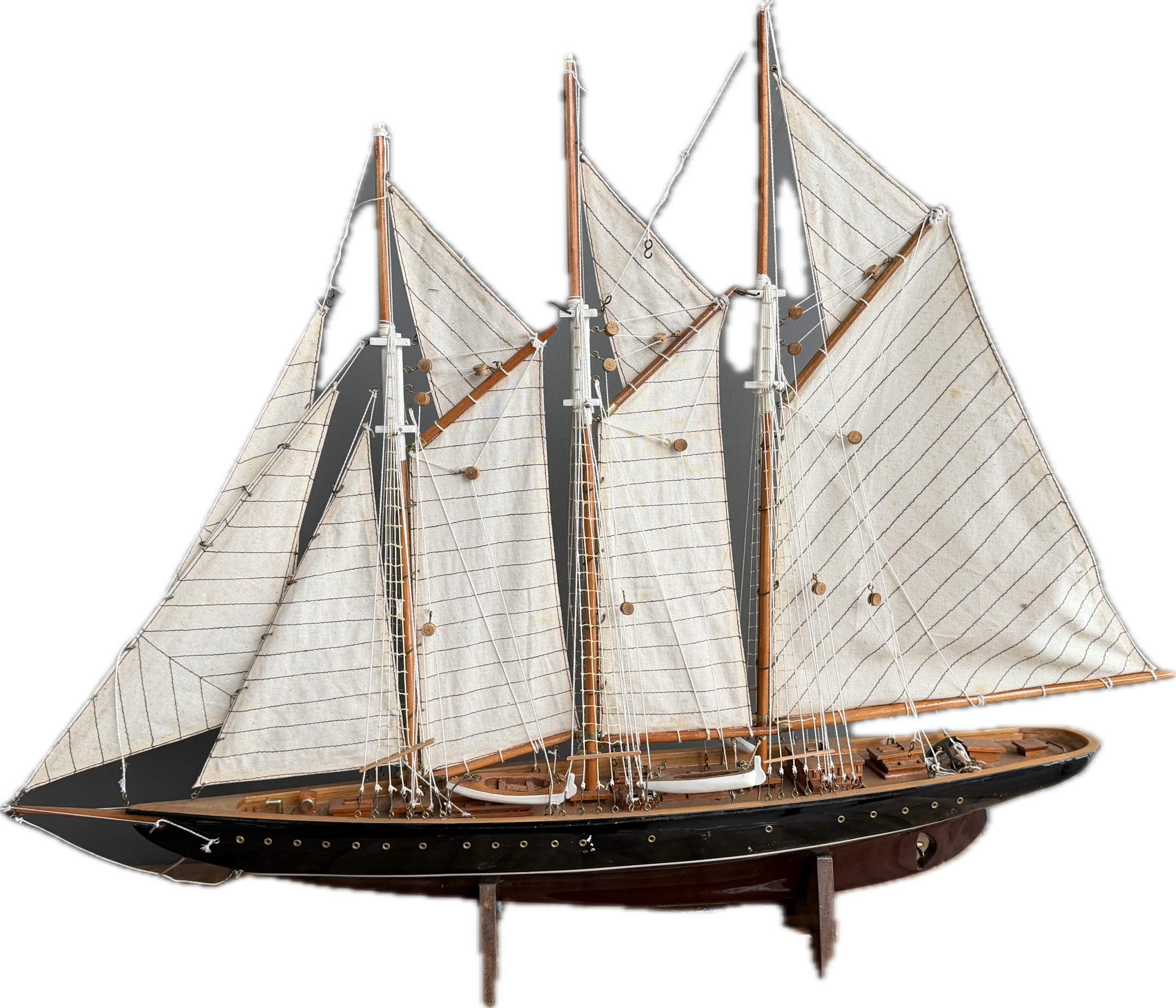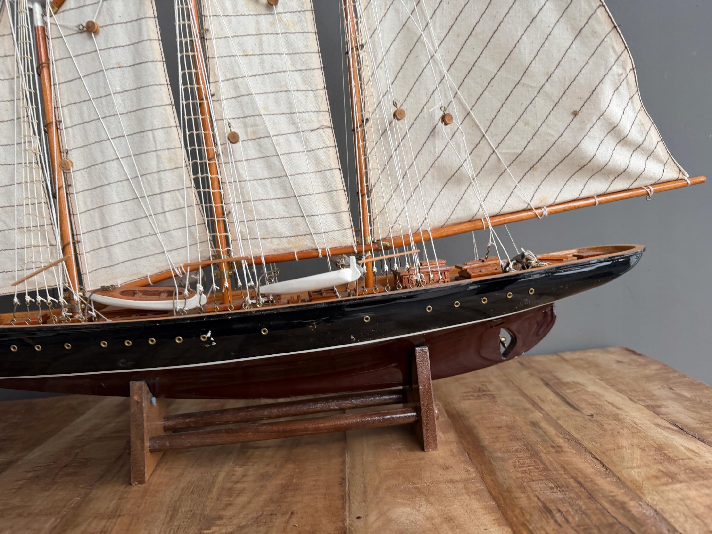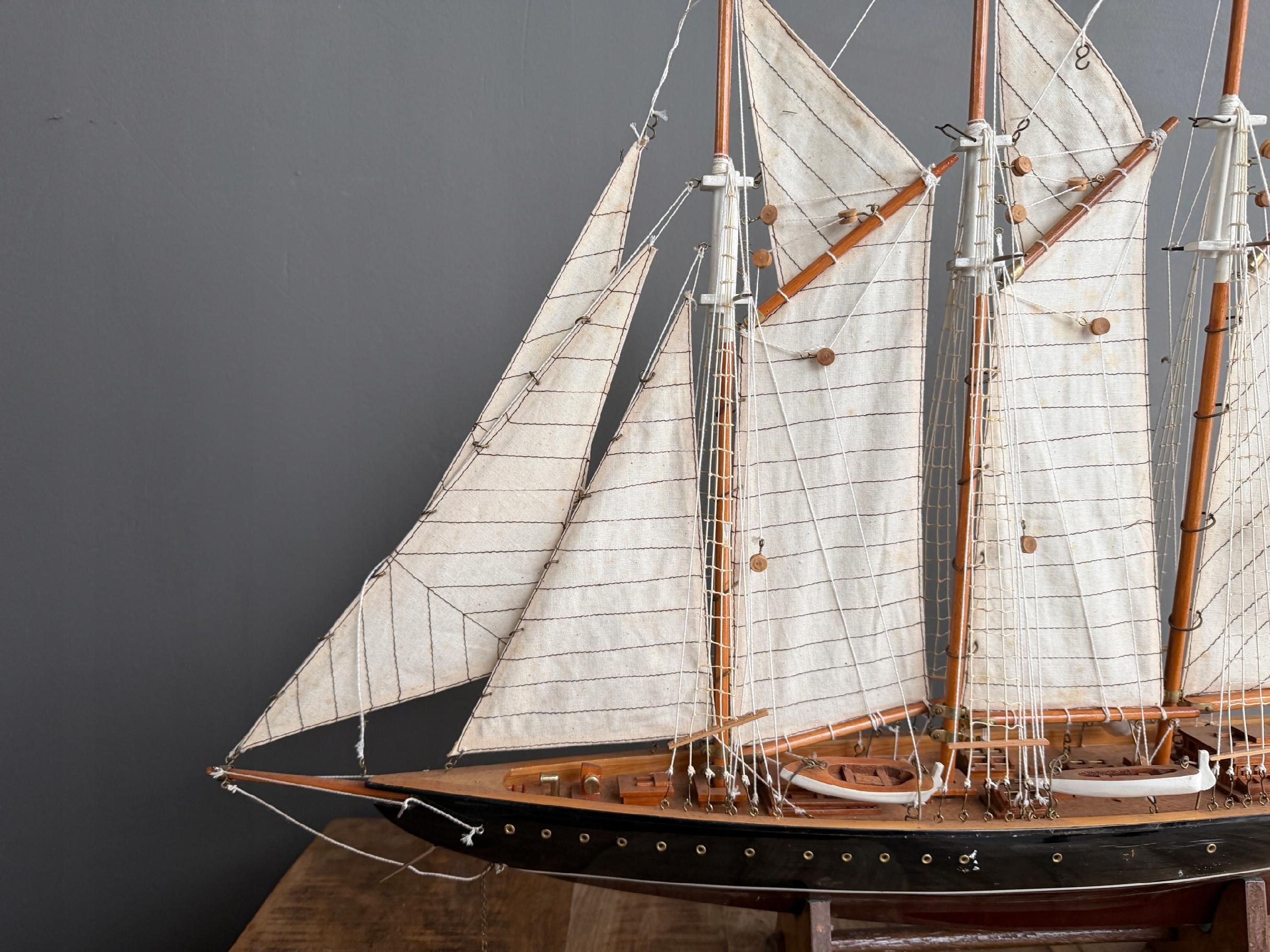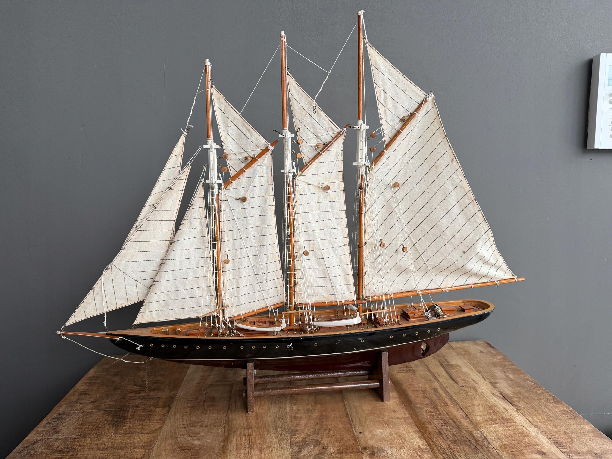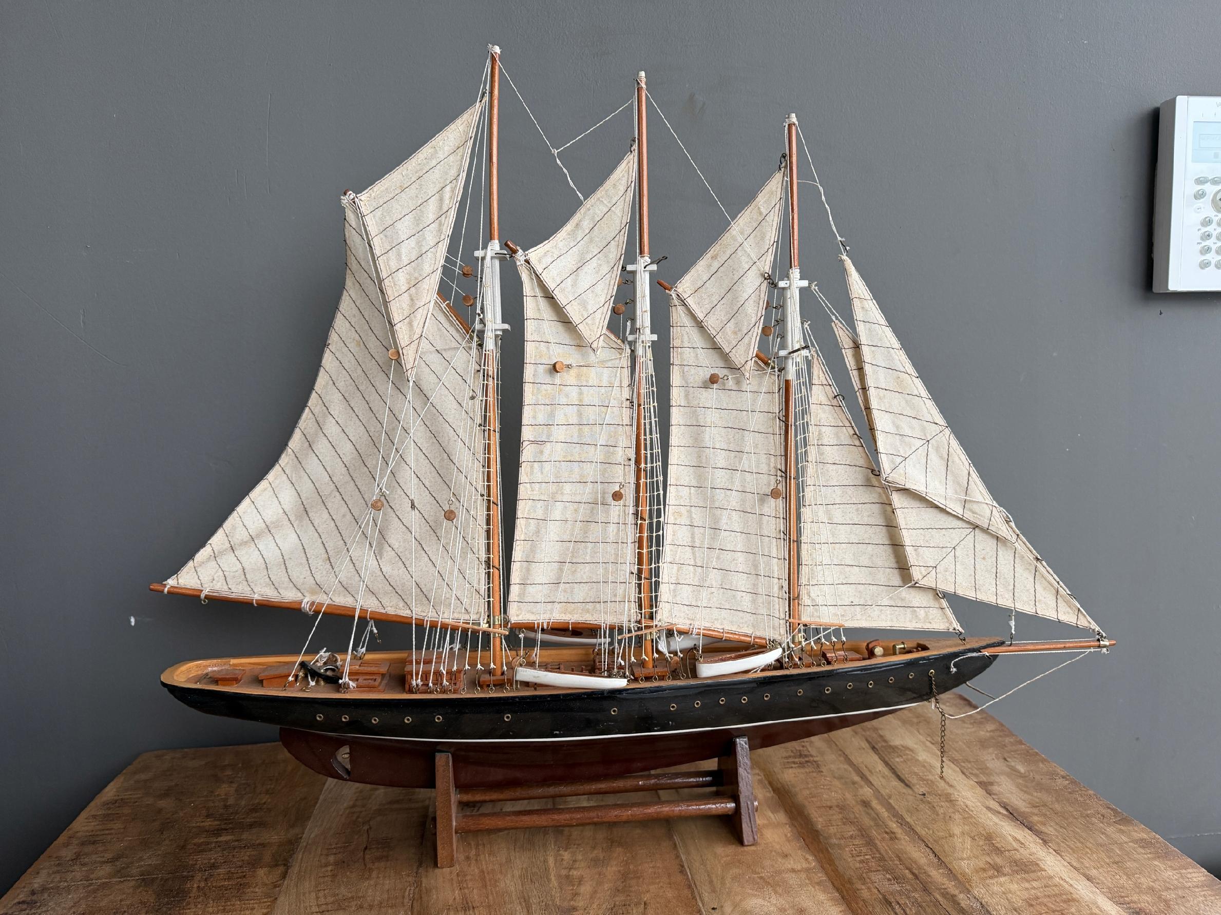 Okazały model żaglowca Atlantic. Model jest przykładem trzymasztowca z ożaglowaniem gaflowym. Kadłub tego modelu został wykonany z drewna, natomiast żagle z kremowej tkaniny. Olinowanie zostało dokładnie odwzorowane – model wyróżnia się sporą ilością lin, want i szotów.