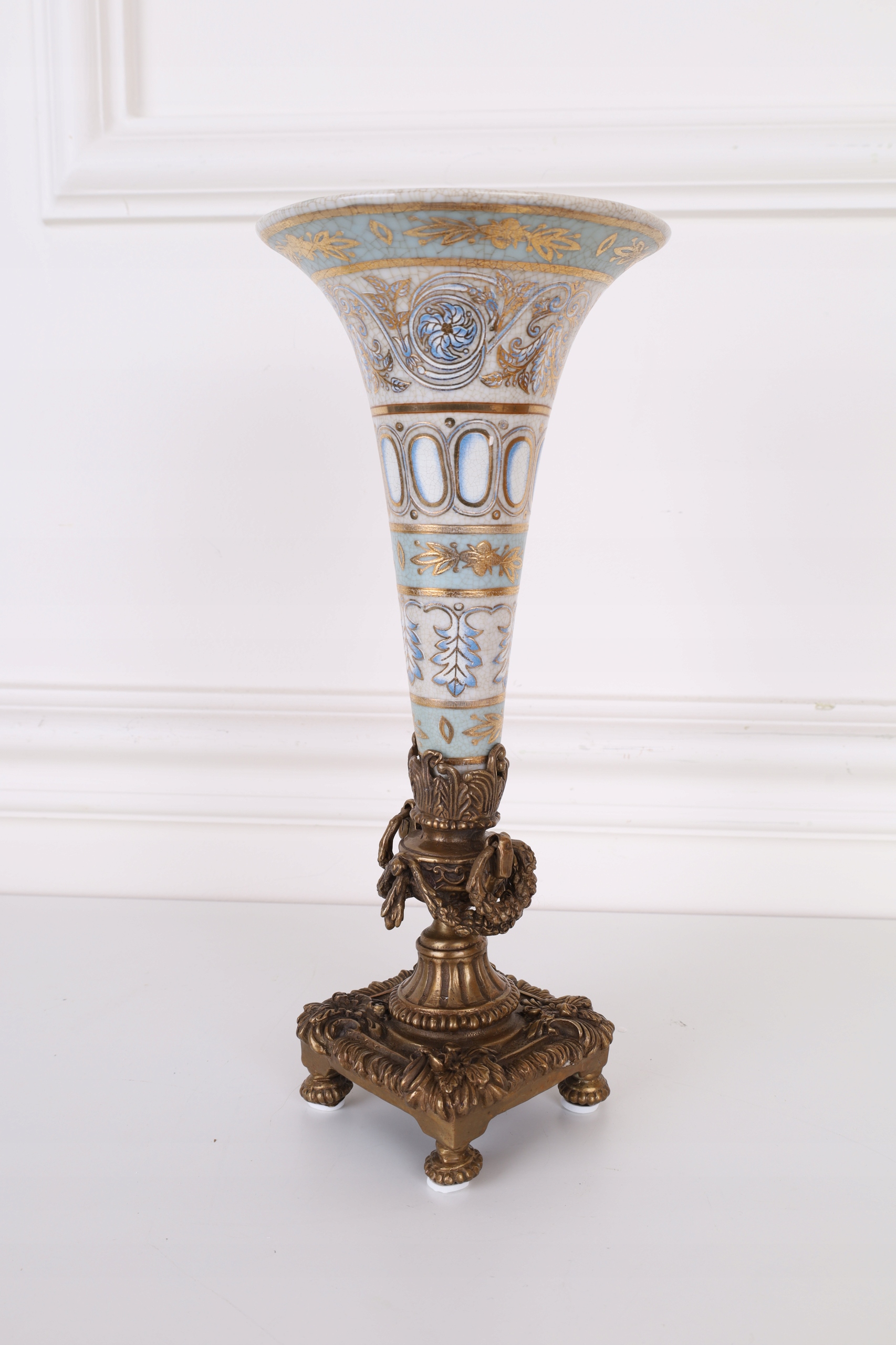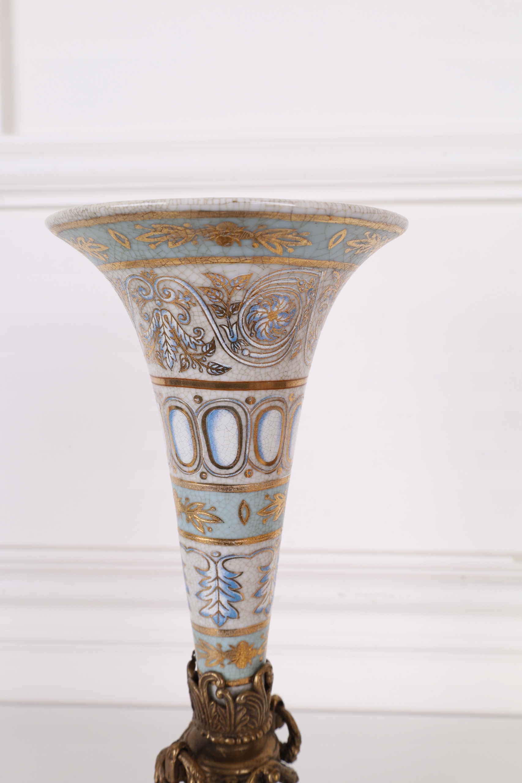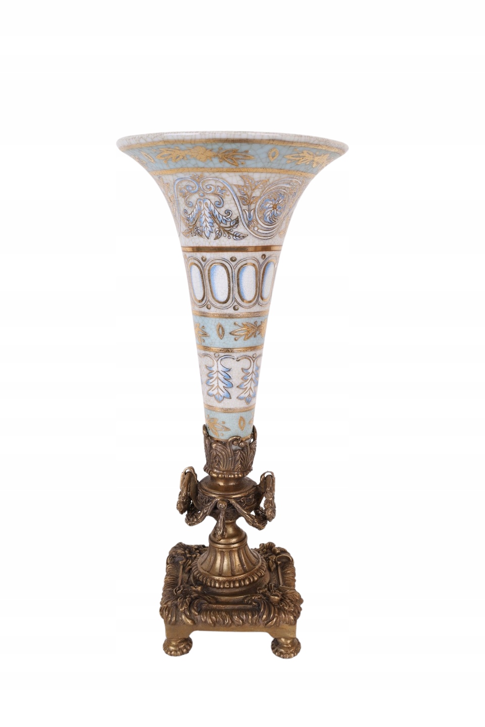 WAZON kielich flakon NIEBIESKI porcelana z brązem