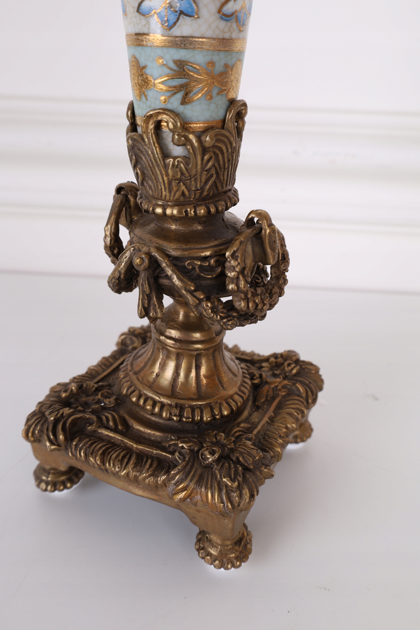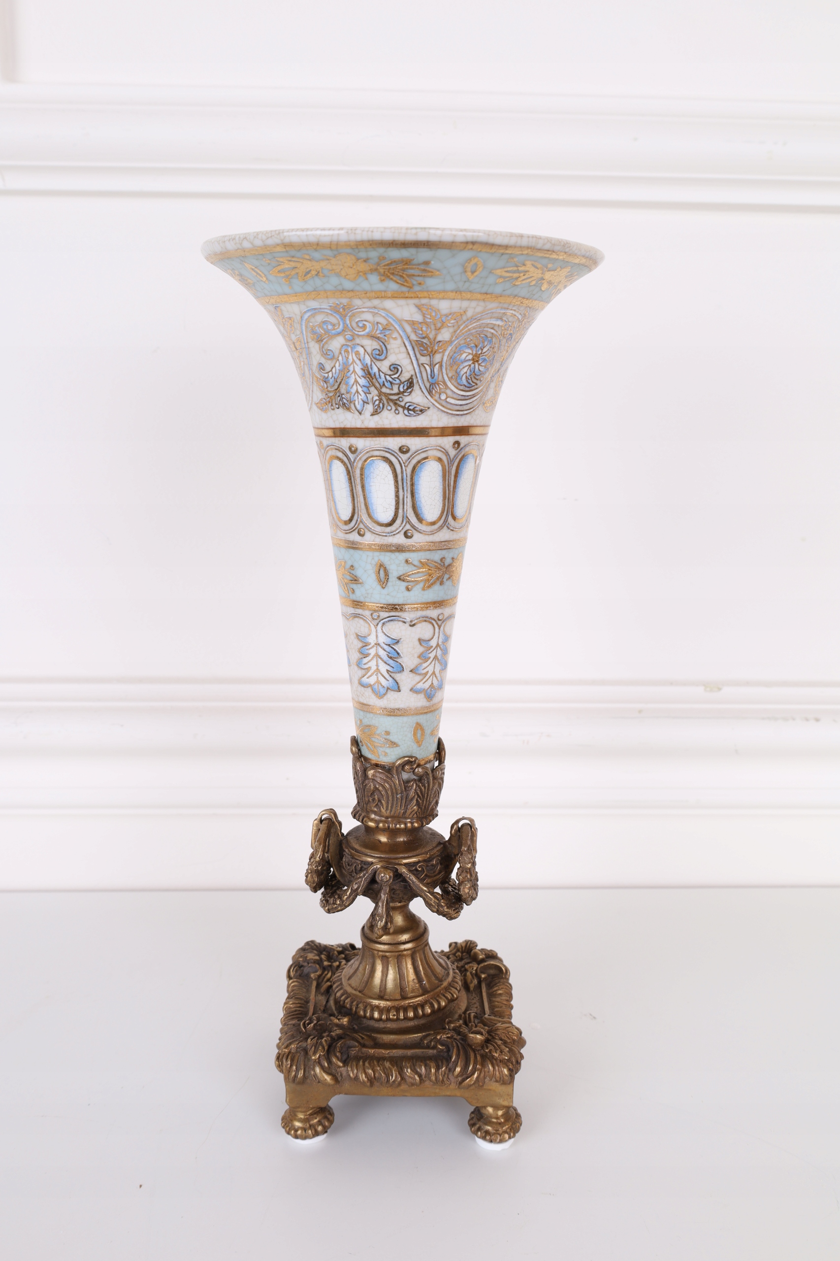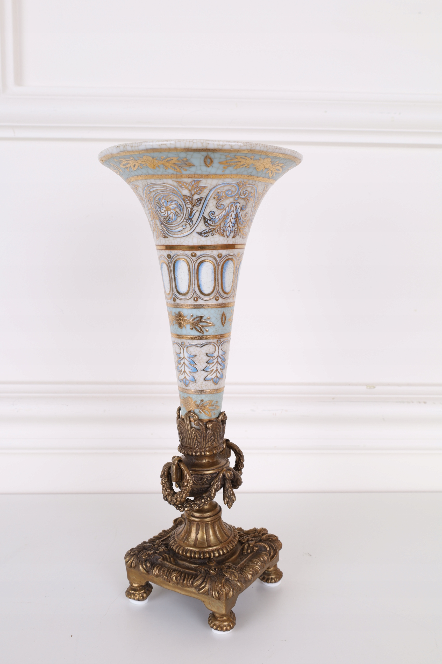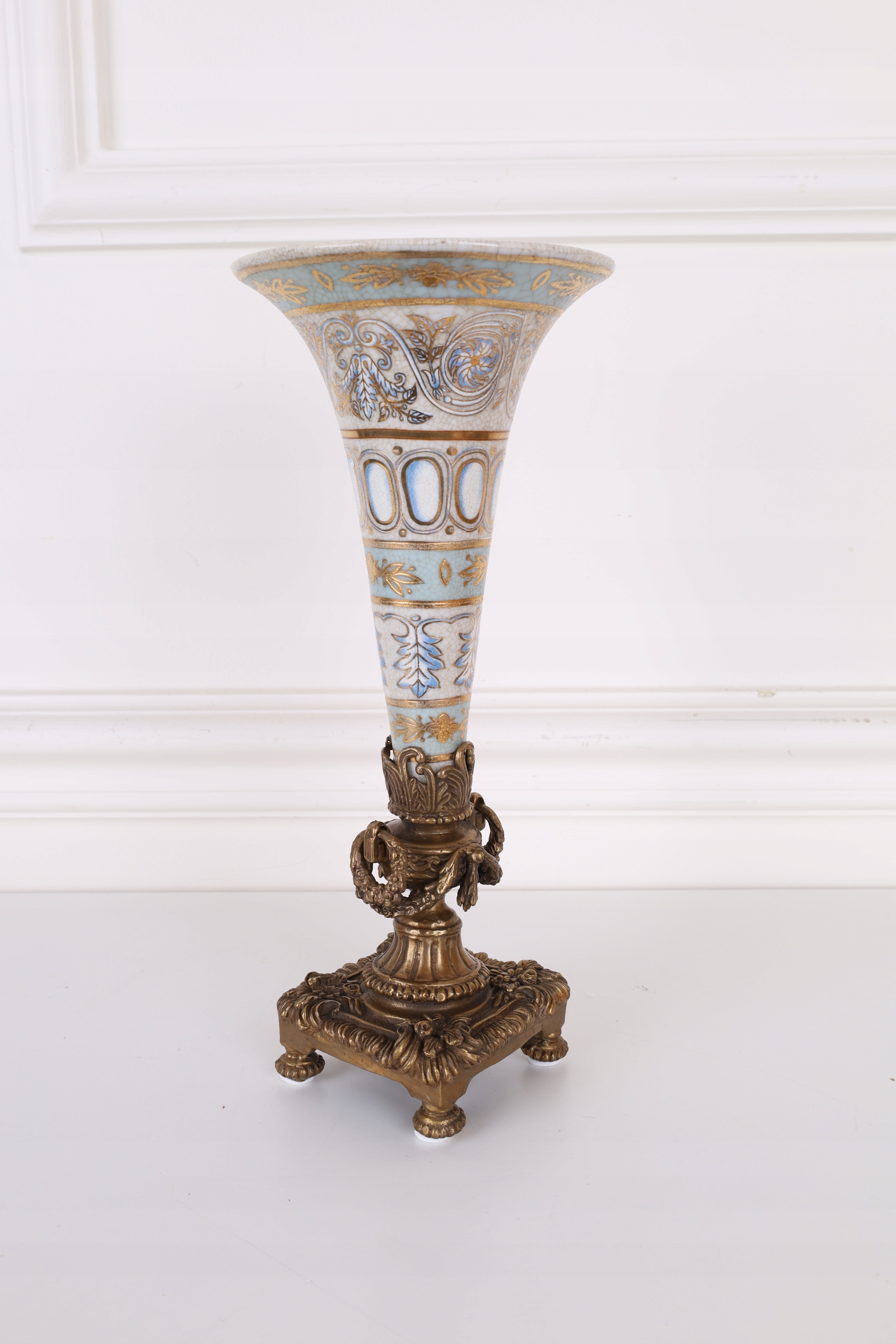WAZON kielich flakon NIEBIESKI porcelana z brązem