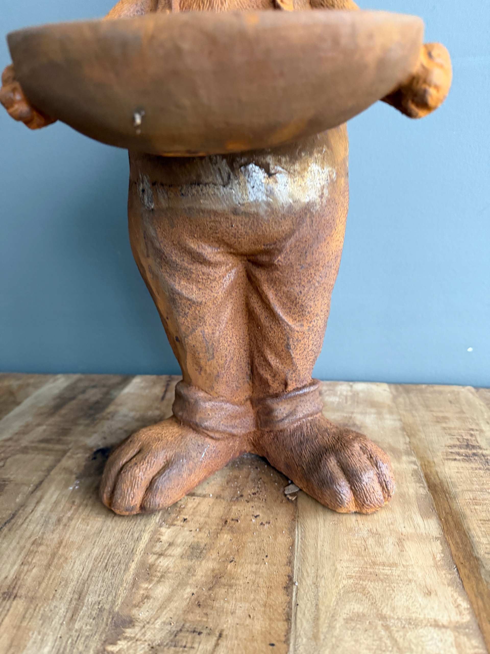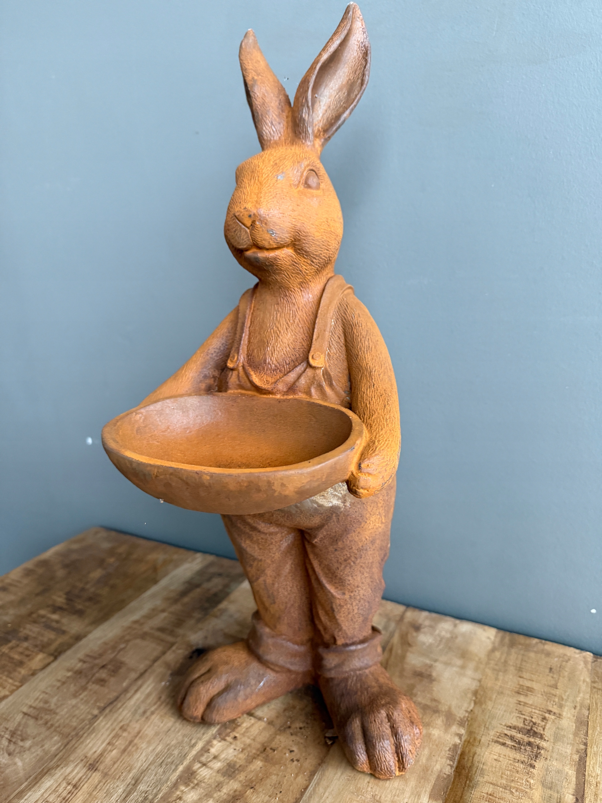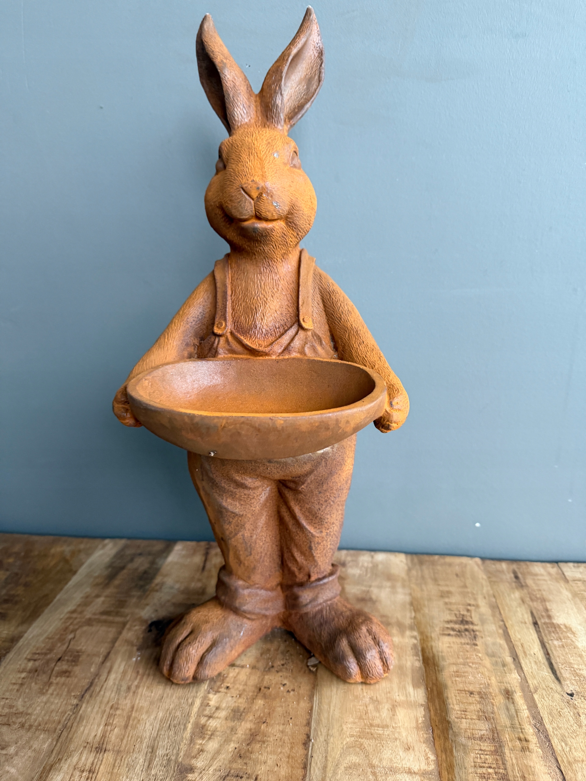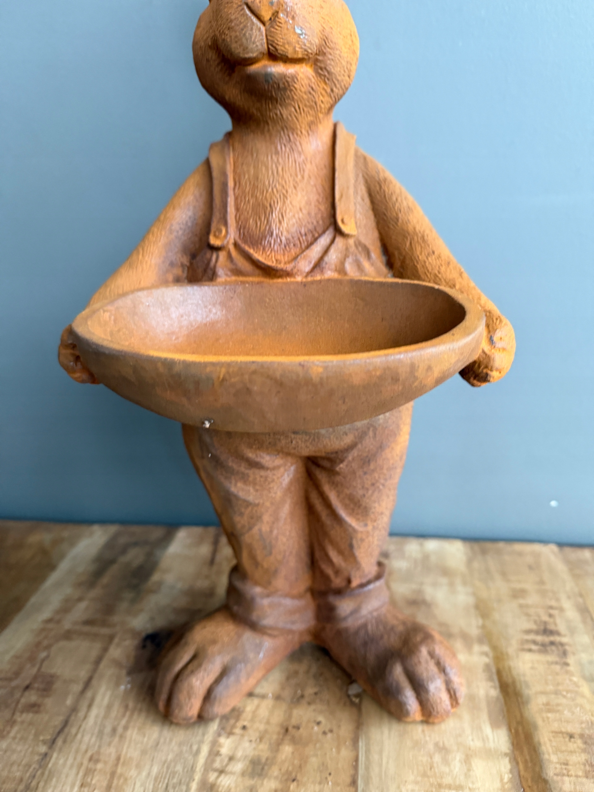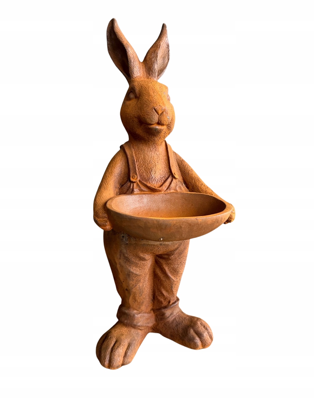 WYKOPEK zajączek z miską – zardzewiała FIGURA