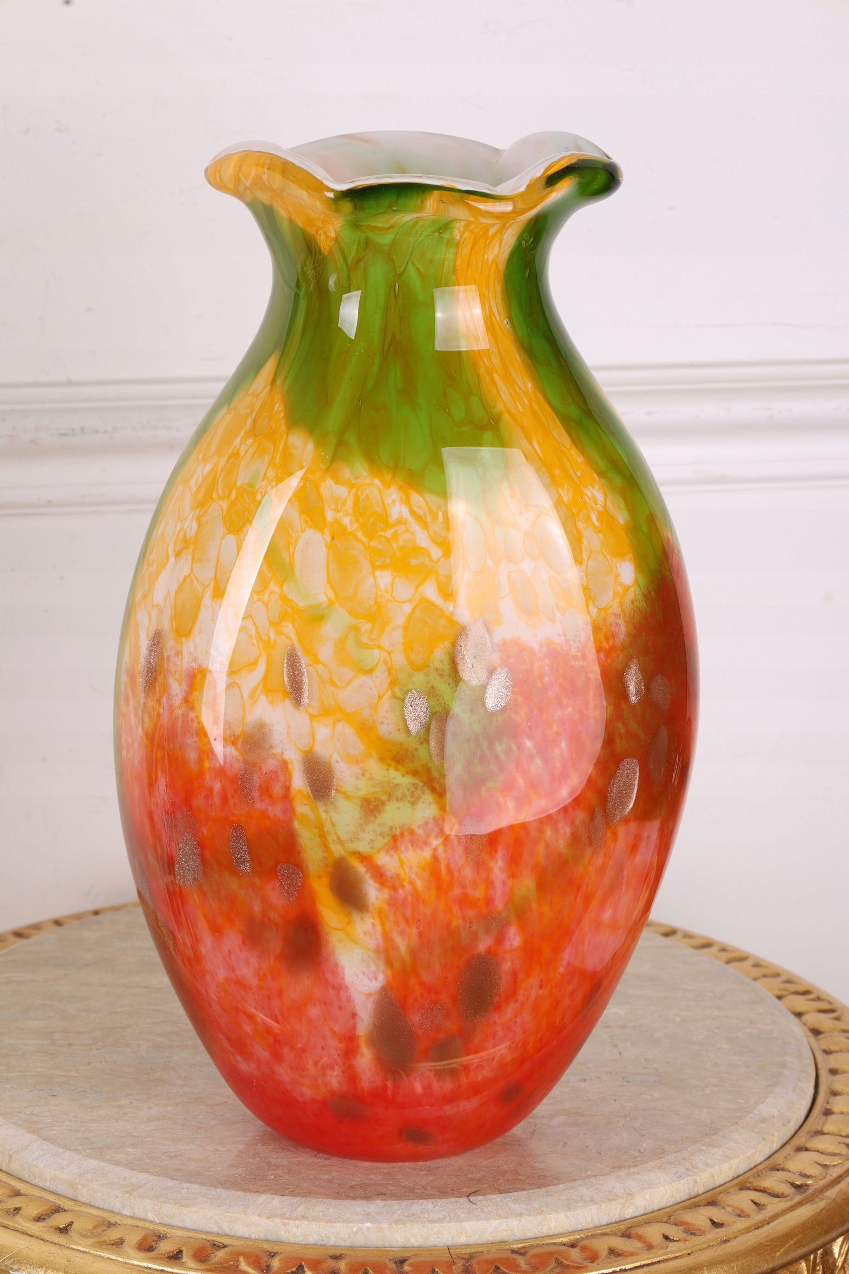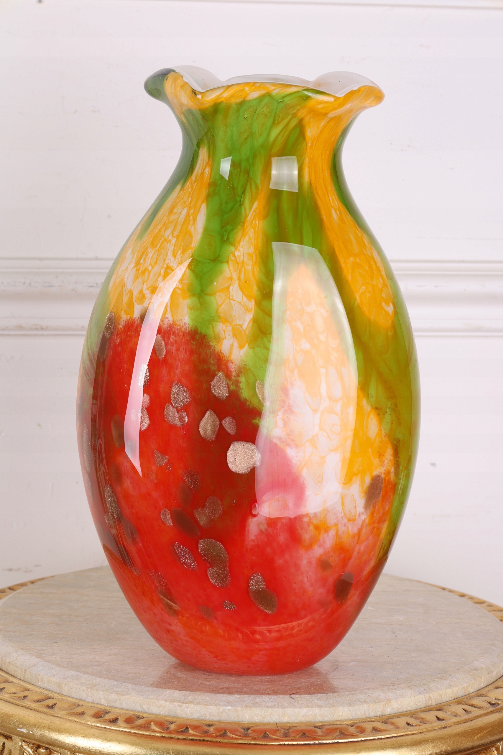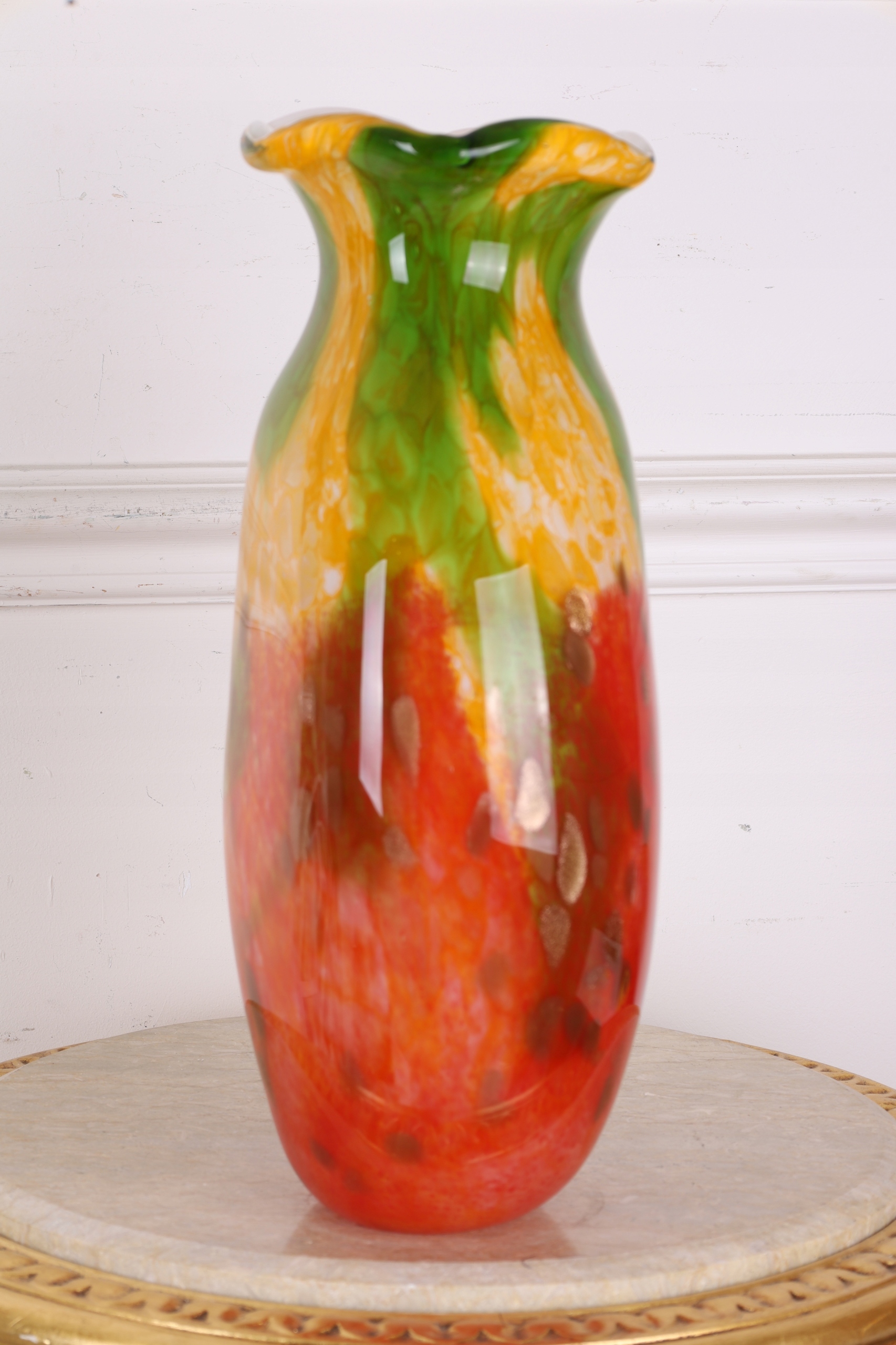 ZIELONO – ŻÓŁTY SMUKŁY – WAZON w stylu MURANO