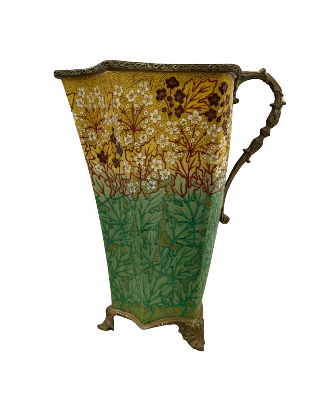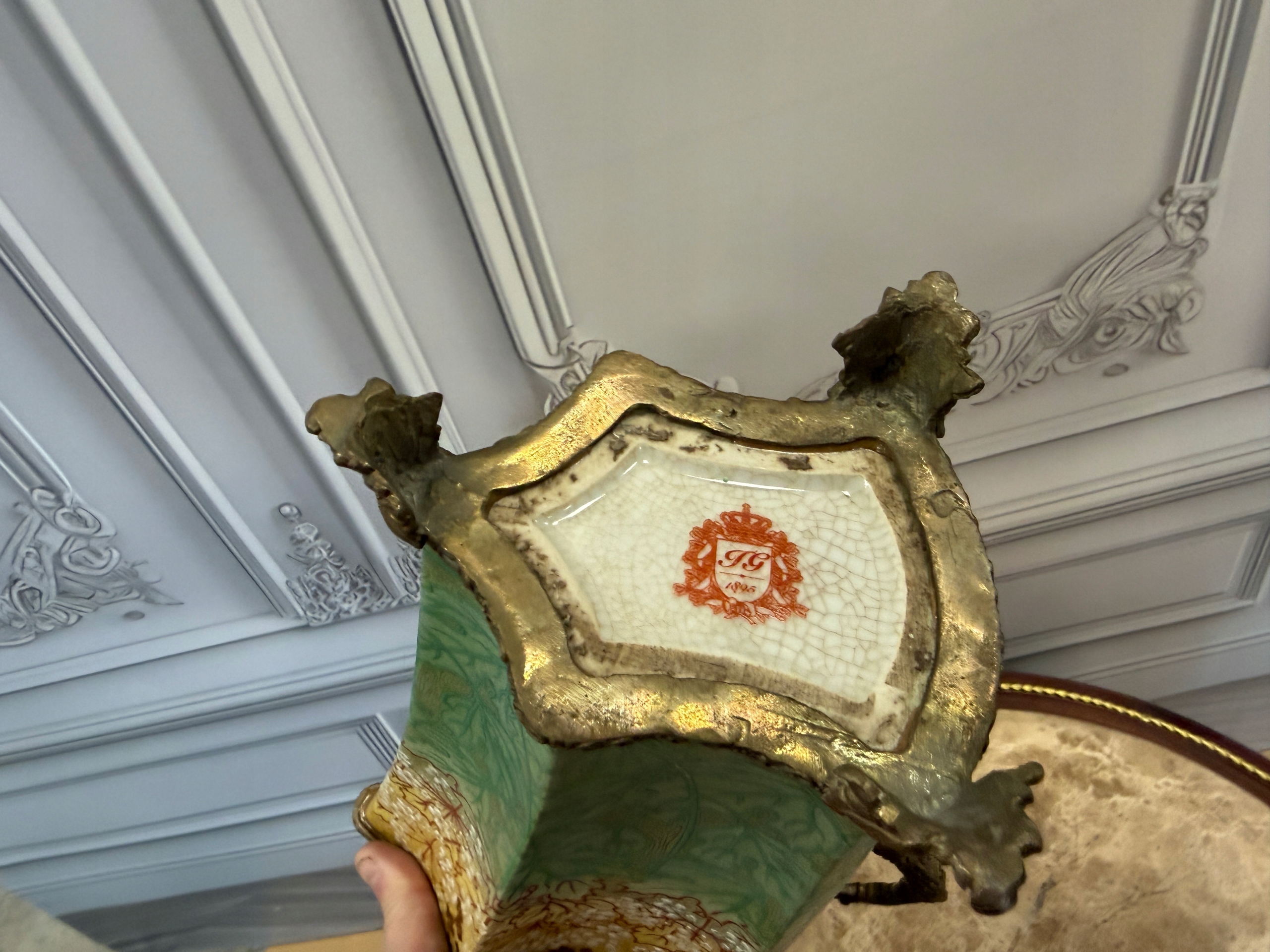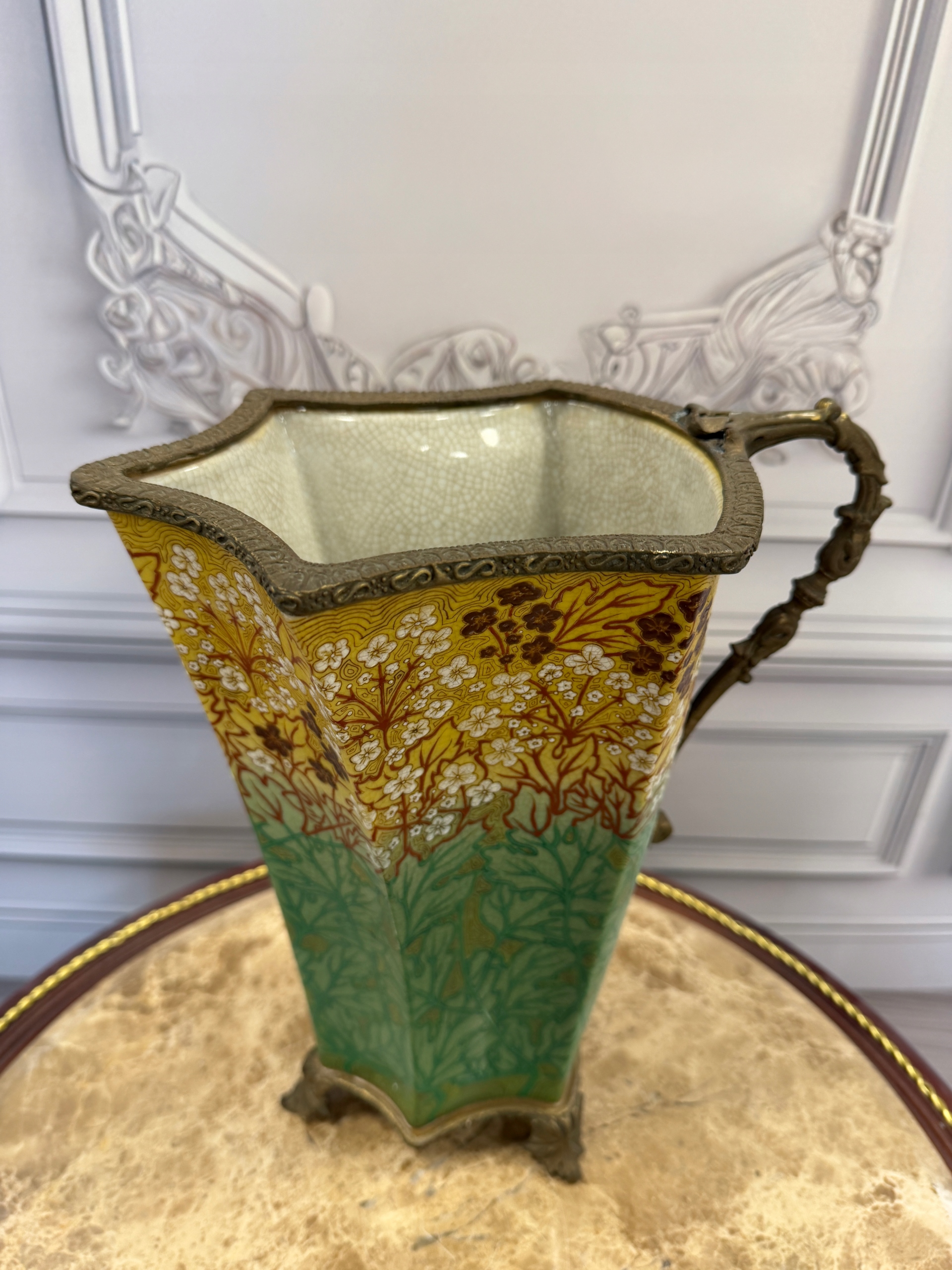 Zielono – żółty Wazon – porcelana zdobiona brązem!