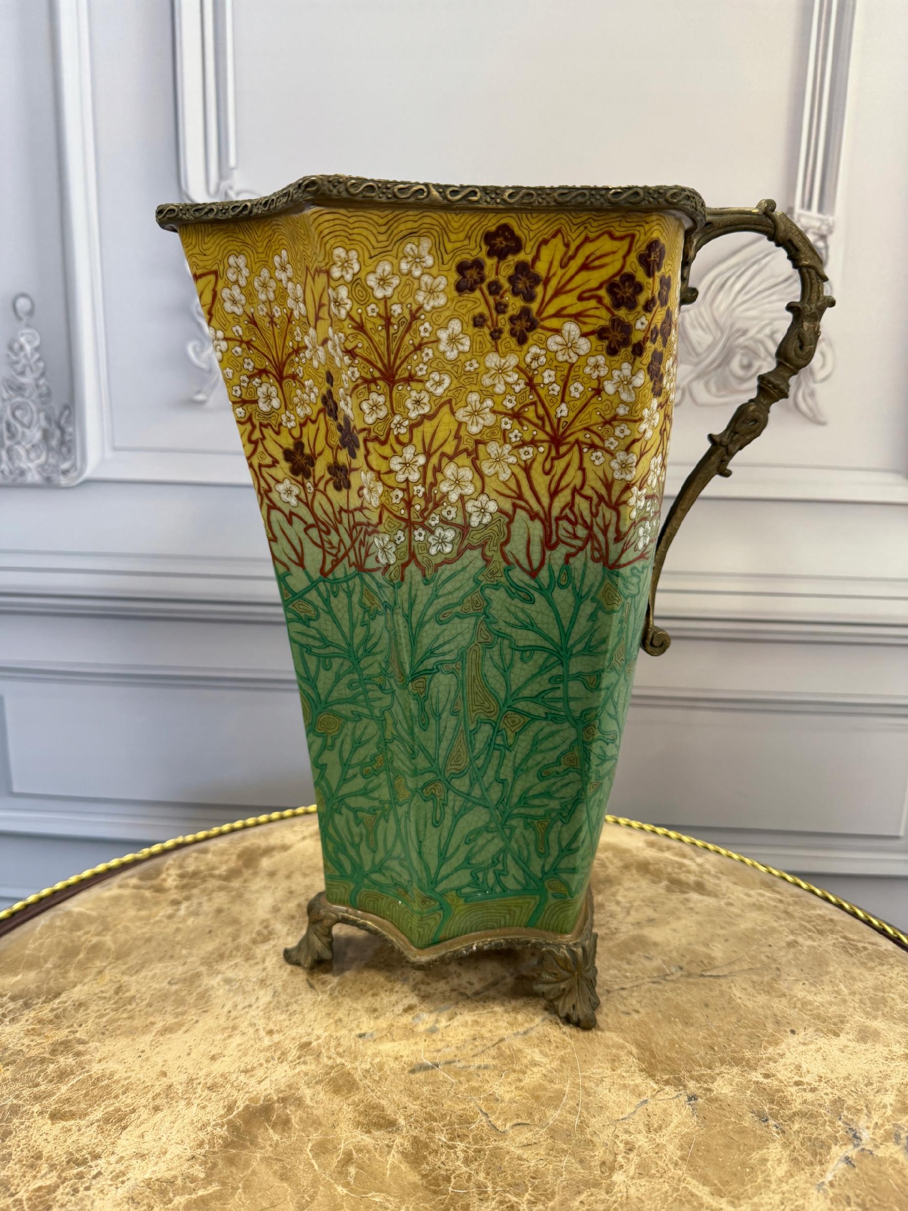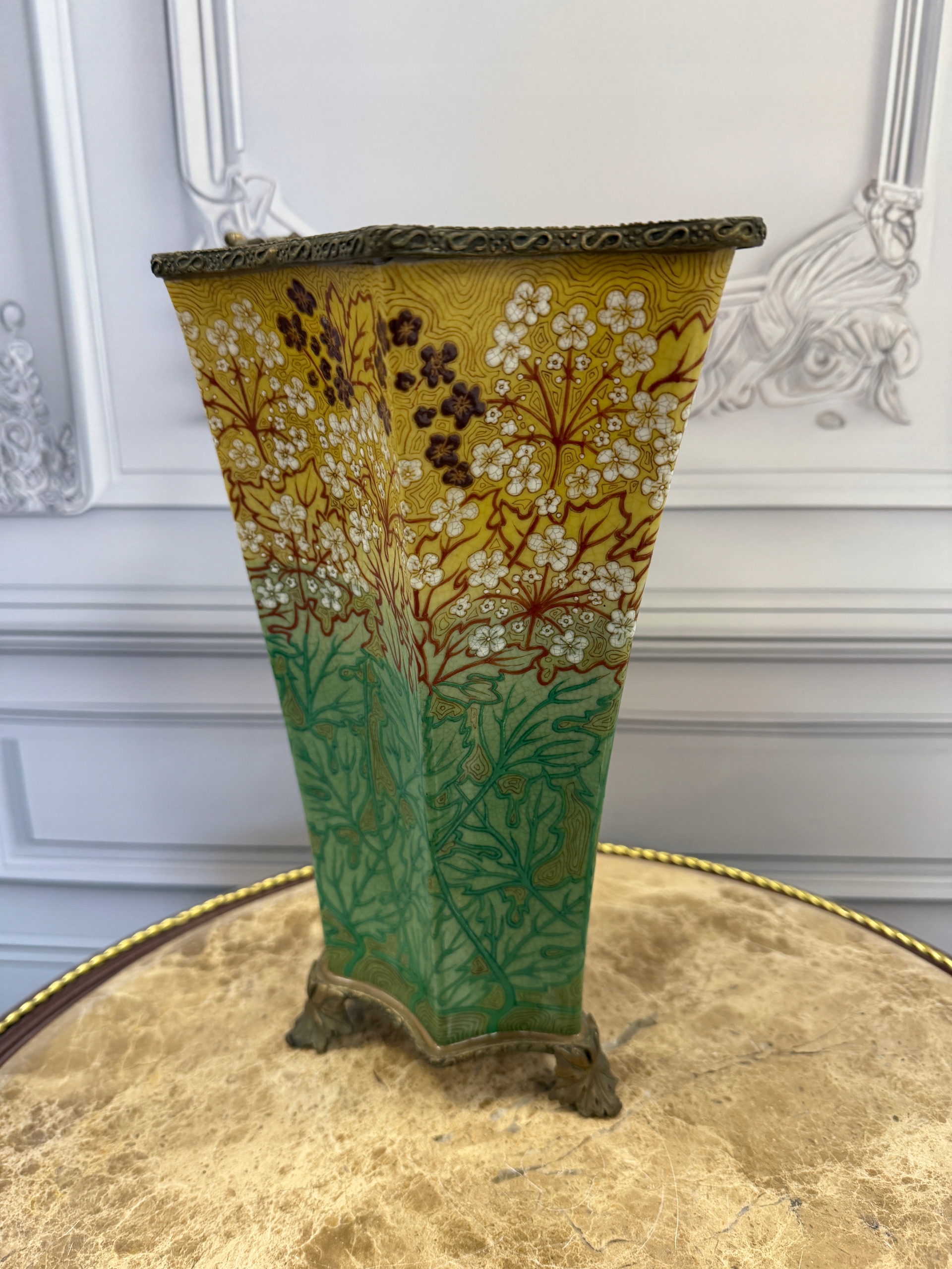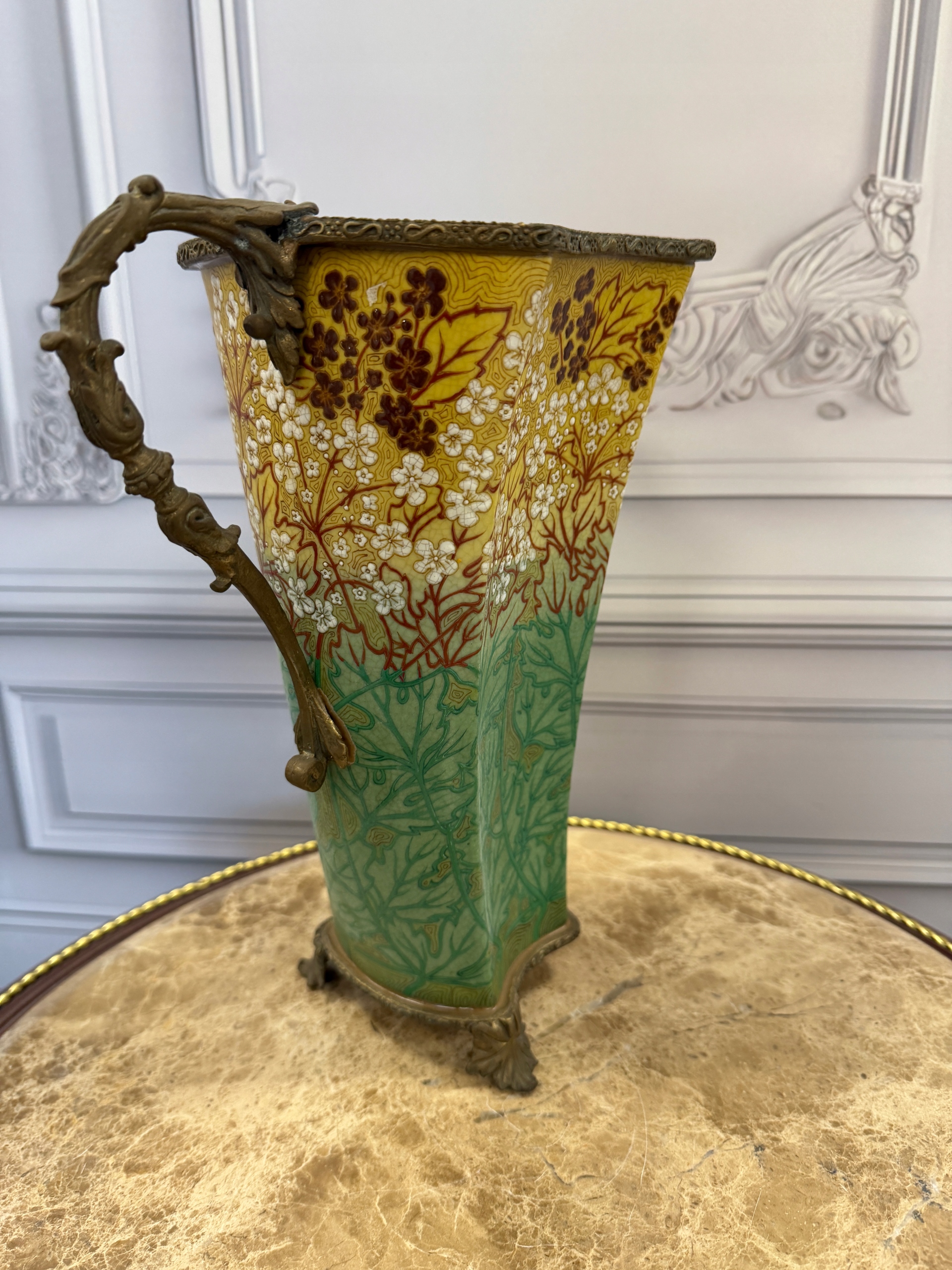 Zielono – żółty Wazon – porcelana zdobiona brązem!
