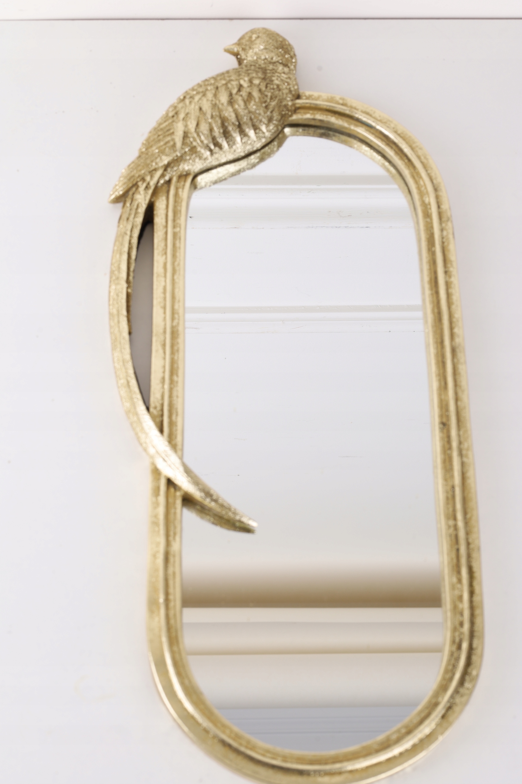 ZŁOTE -Lustro OWALNE Z PTASZKIEM 52 X 22 cm